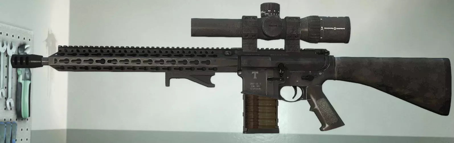 + 栓动步枪伤害(300) + 半自动 + 隐蔽性16(可通过改装进一步提升) - 射速低(60,基本等同于栓动狙击步枪的手动上膛速度) - 换弹时间长 - 精准度低 - 稳定性极差 塔通卡