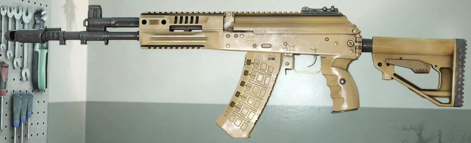 AK步枪的改进版本 AK步枪的射速与弹药 更高的伤害(80,与战斗步枪:鹰式重型步枪、AK.762等相同) - 较长的换弹时间 - 较低的精准度和稳定性 - 无法装配DMR枪管/套件 - AK步枪的改装性较差 格罗姆