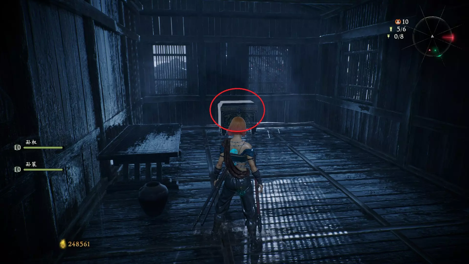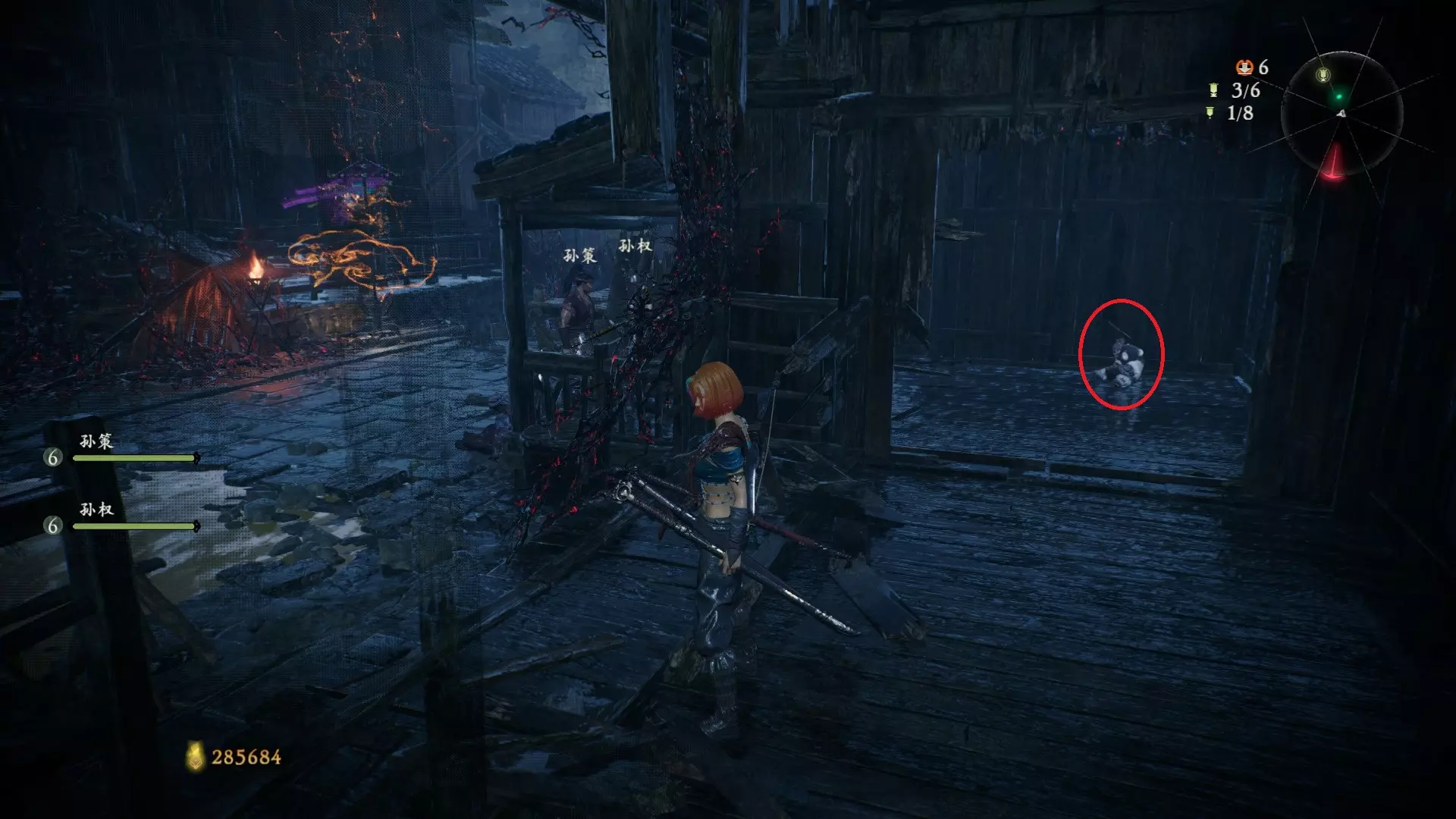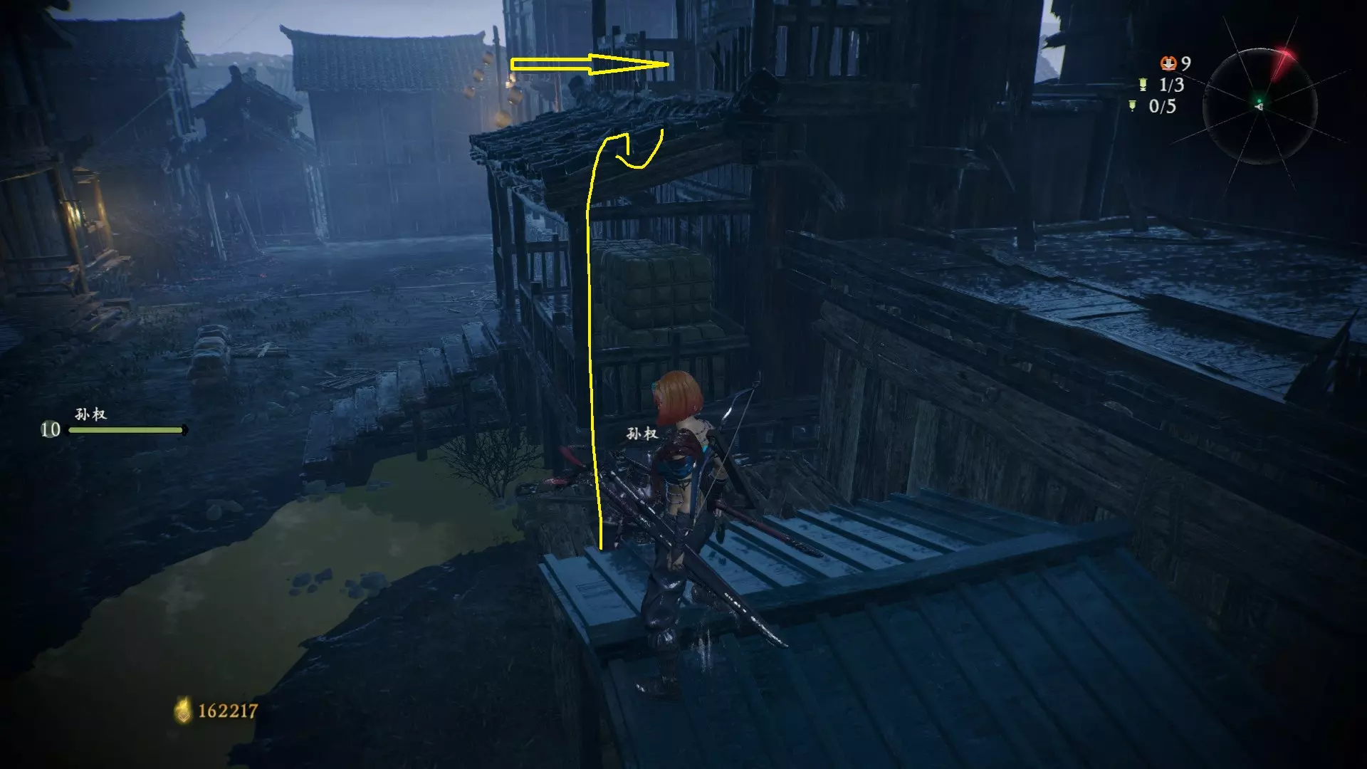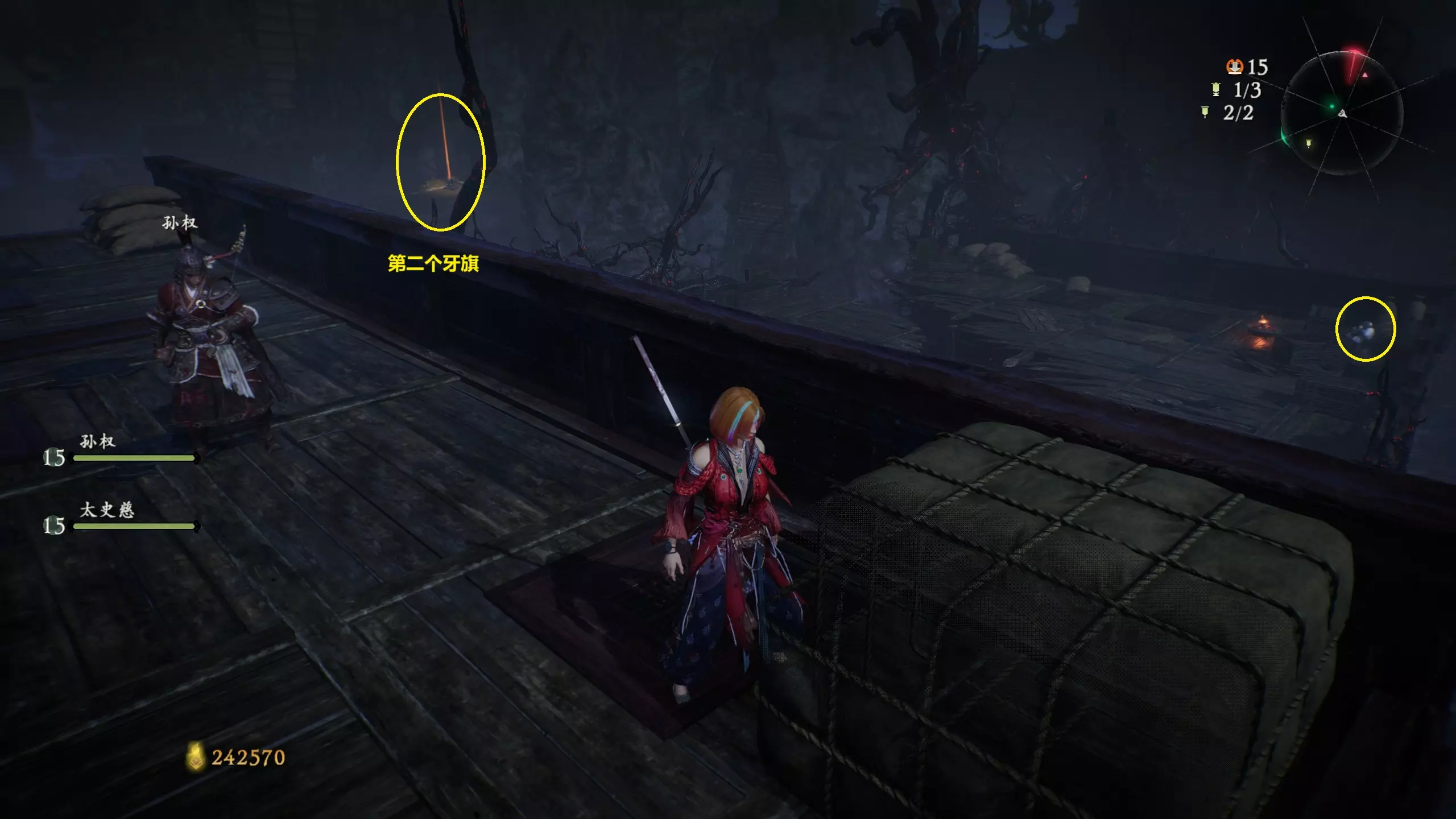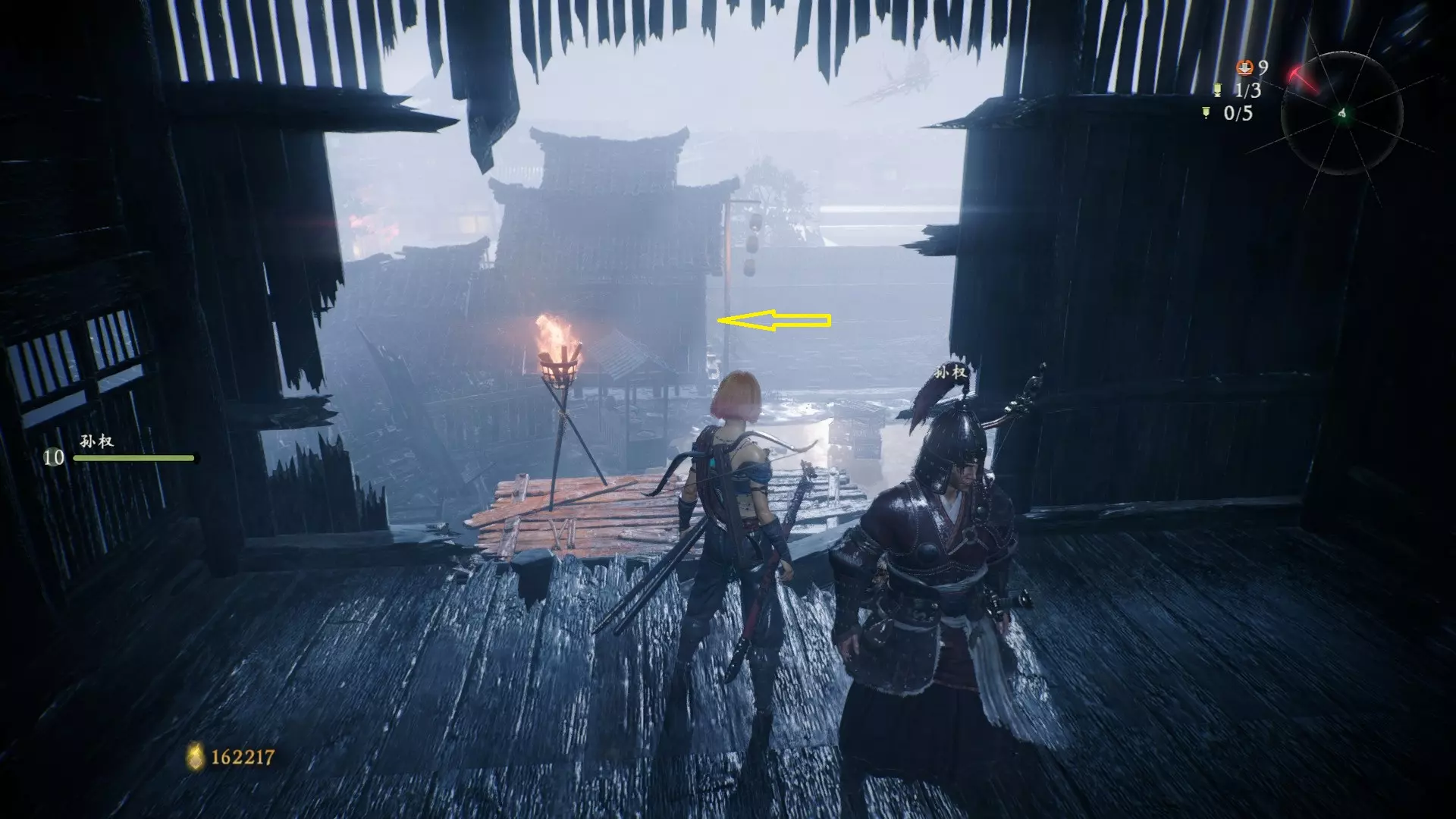 3 外章二东莱有义士 沿着主线流程一直往前走,直到过桥到达开局牙旗的近路梯子,继续往前走进入一片庭院,正前直走再左转,房屋内部有个大号啮铁