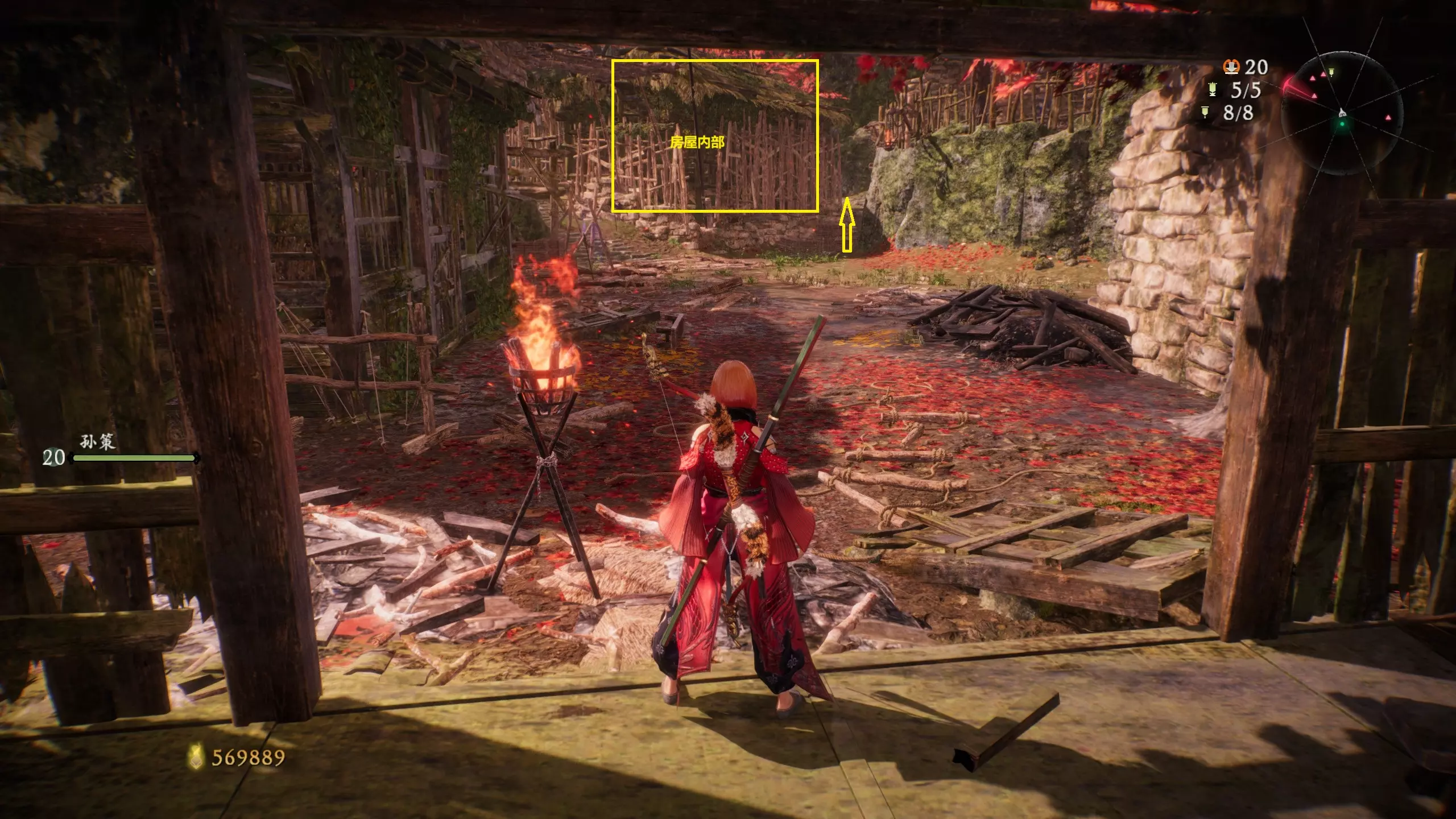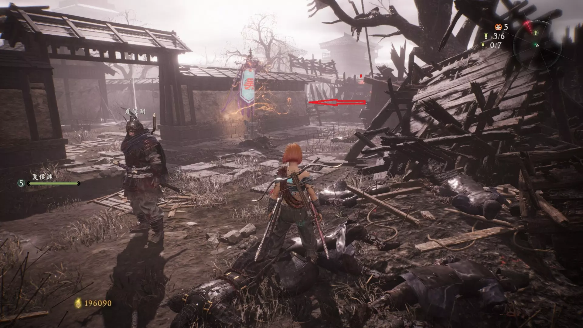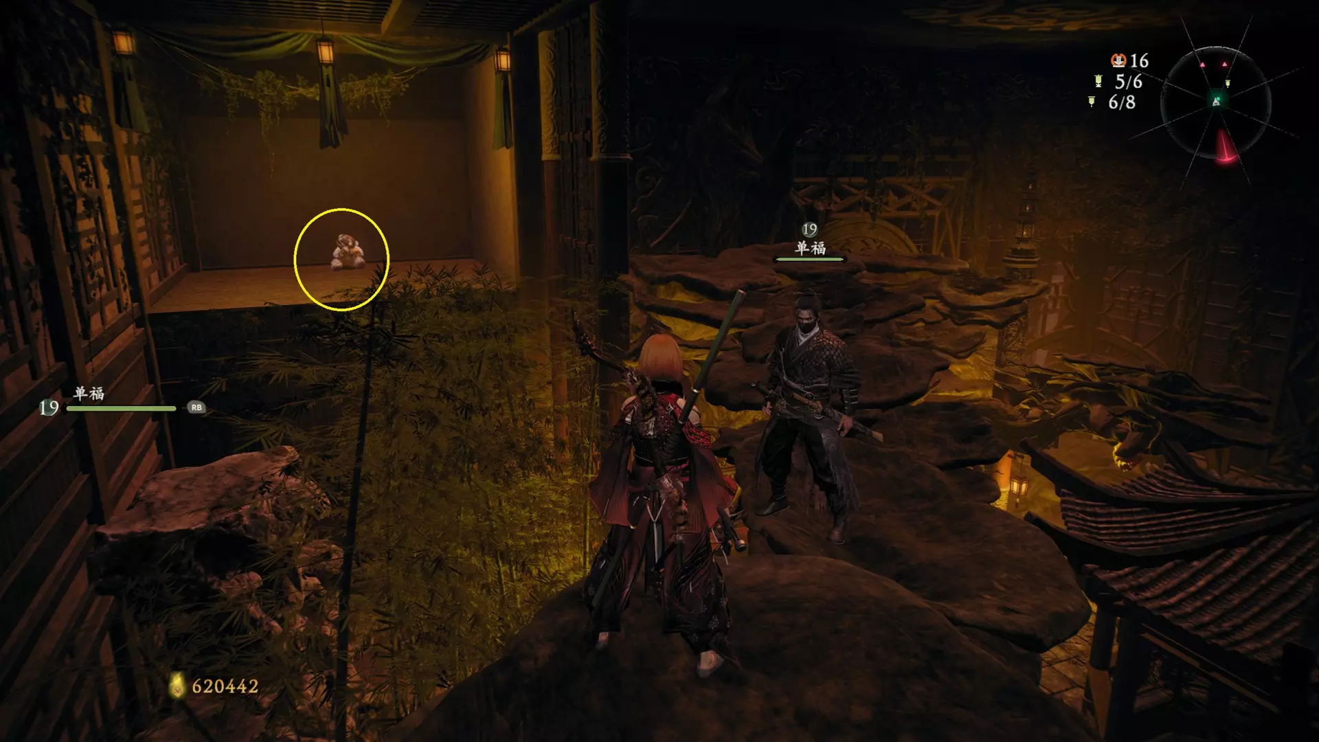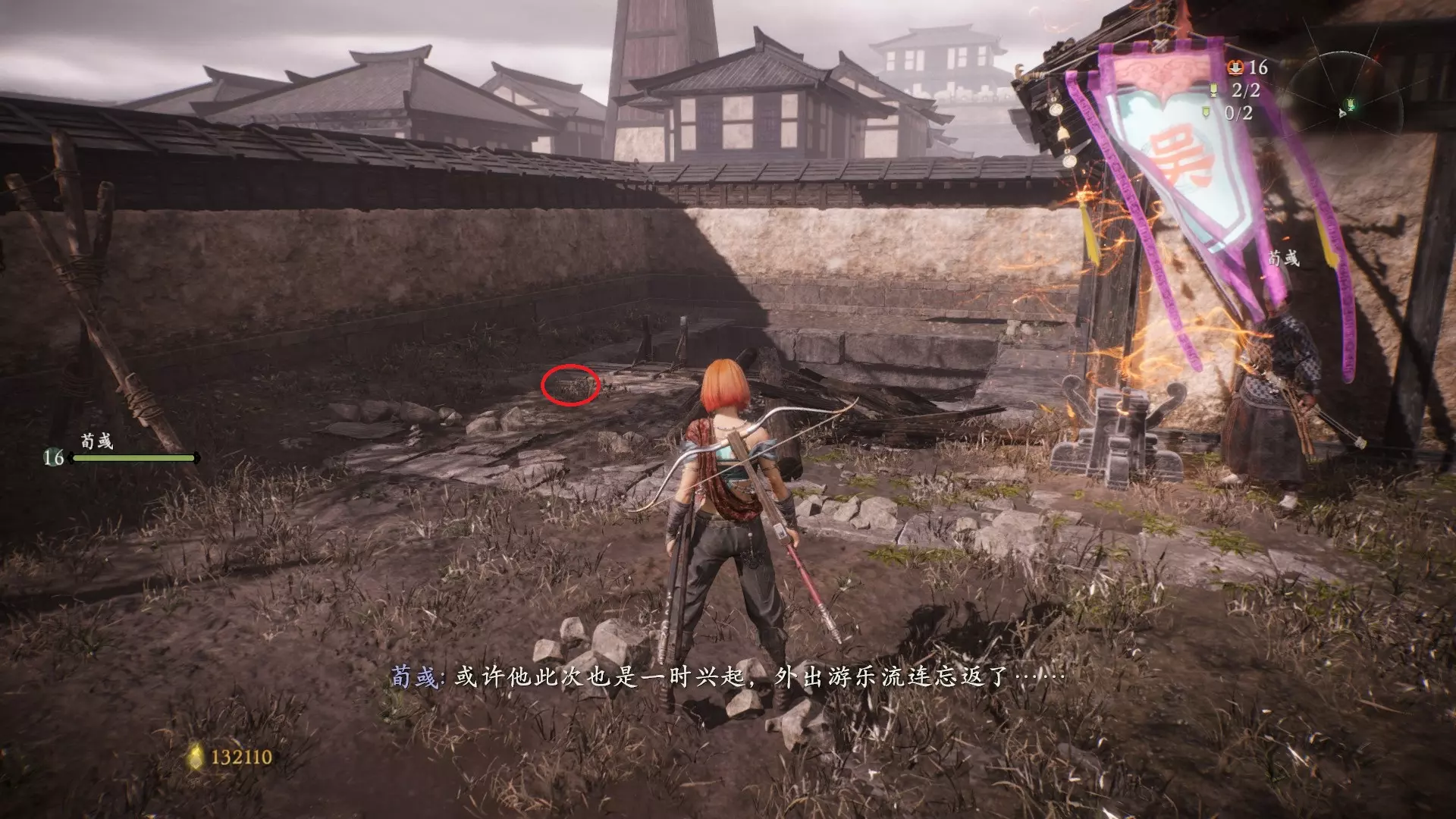3 外章二东莱有义士 沿着主线流程一直往前走,直到过桥到达开局牙旗的近路梯子,继续往前走进入一片庭院,正前直走再左转,房屋内部有个大号啮铁