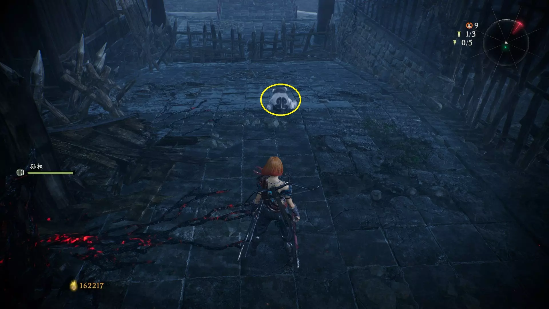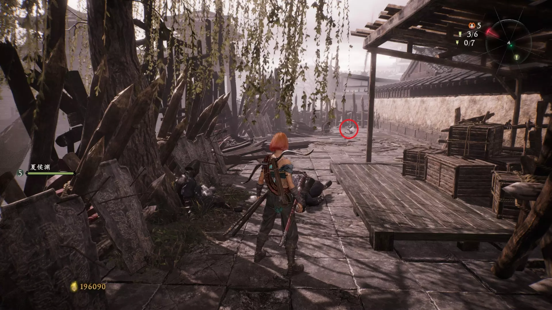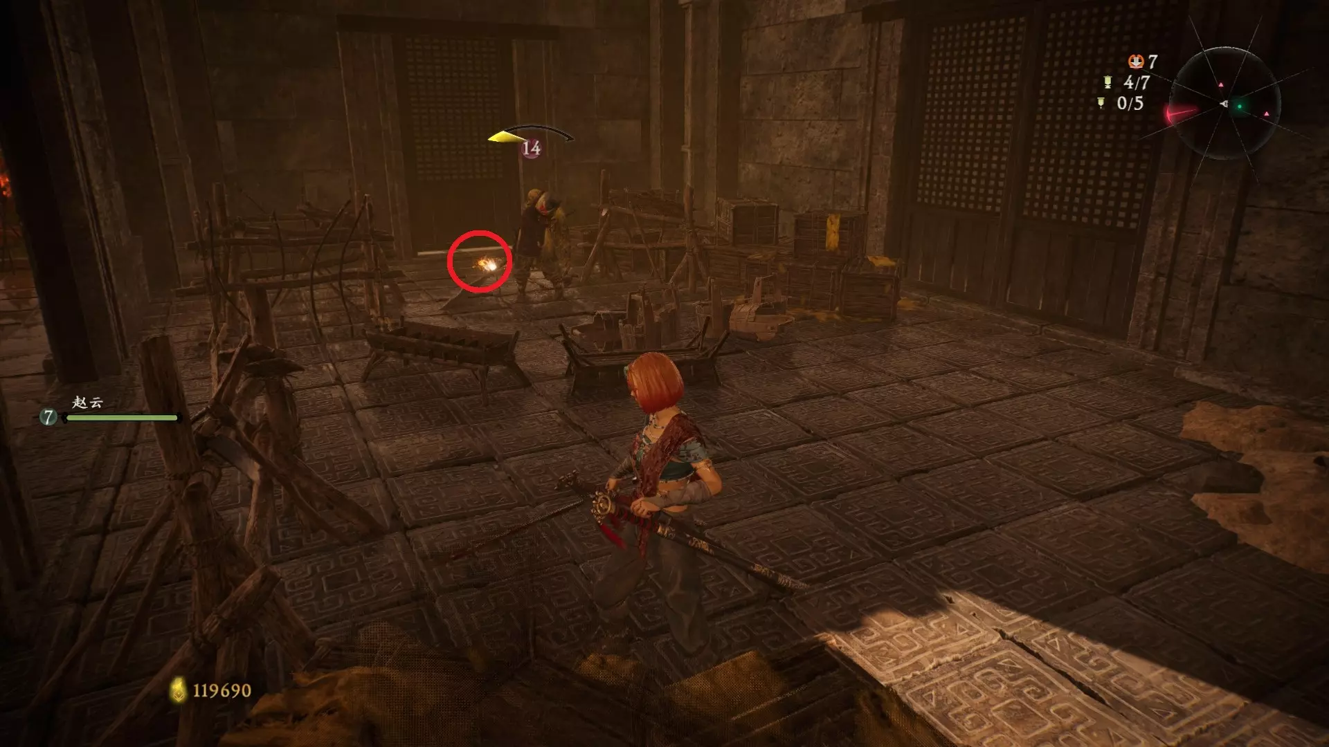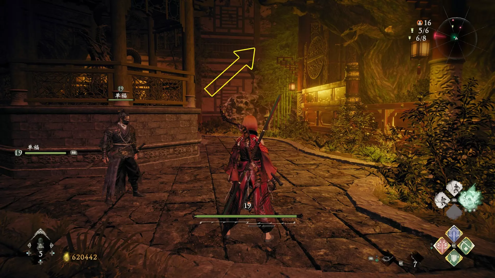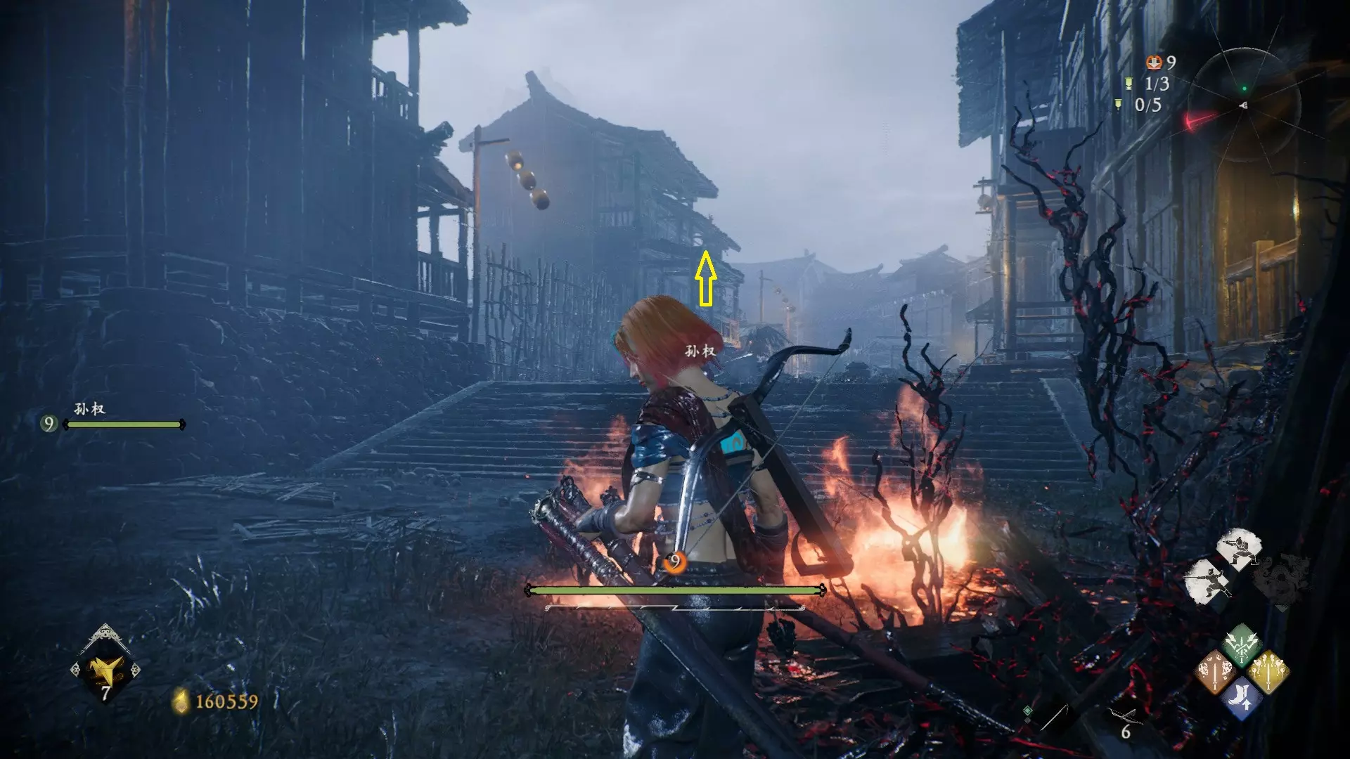 3 外章二东莱有义士 沿着主线流程一直往前走,直到过桥到达开局牙旗的近路梯子,继续往前走进入一片庭院,正前直走再左转,房屋内部有个大号啮铁