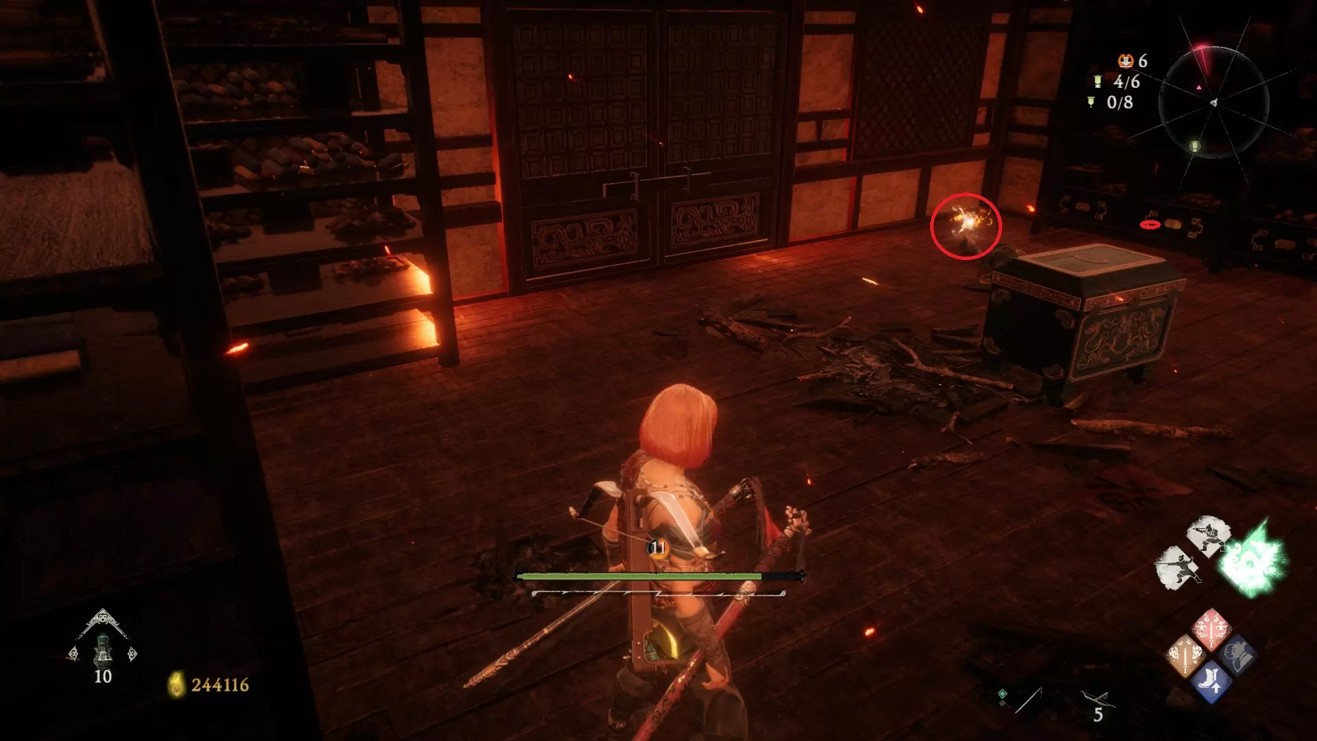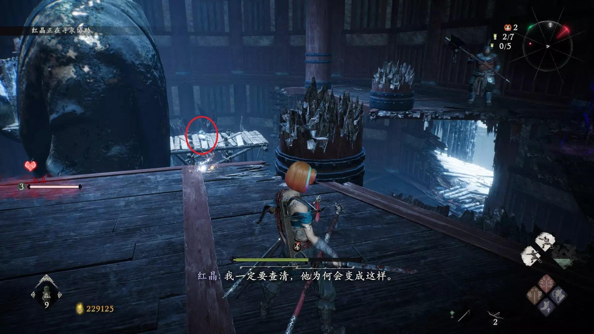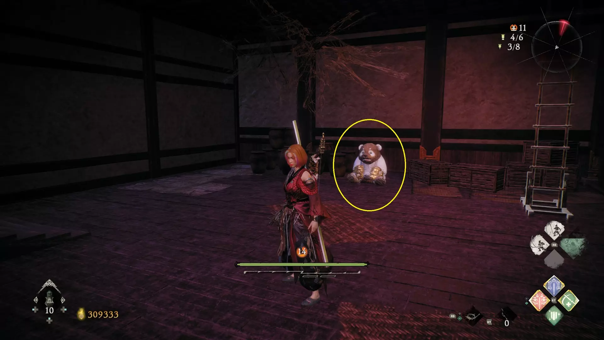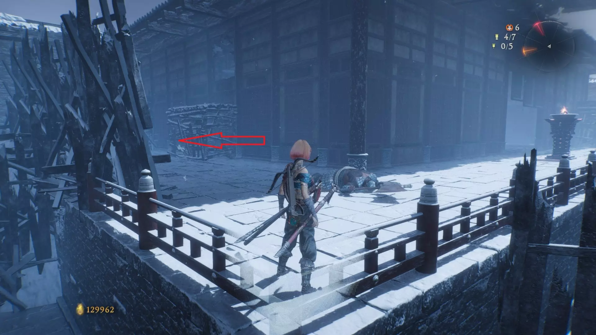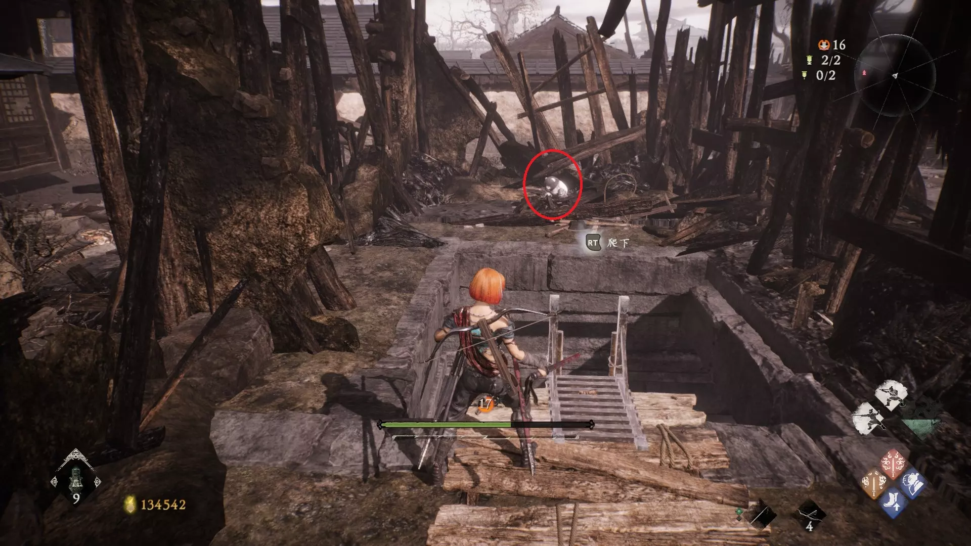 3 外章二东莱有义士 沿着主线流程一直往前走,直到过桥到达开局牙旗的近路梯子,继续往前走进入一片庭院,正前直走再左转,房屋内部有个大号啮铁