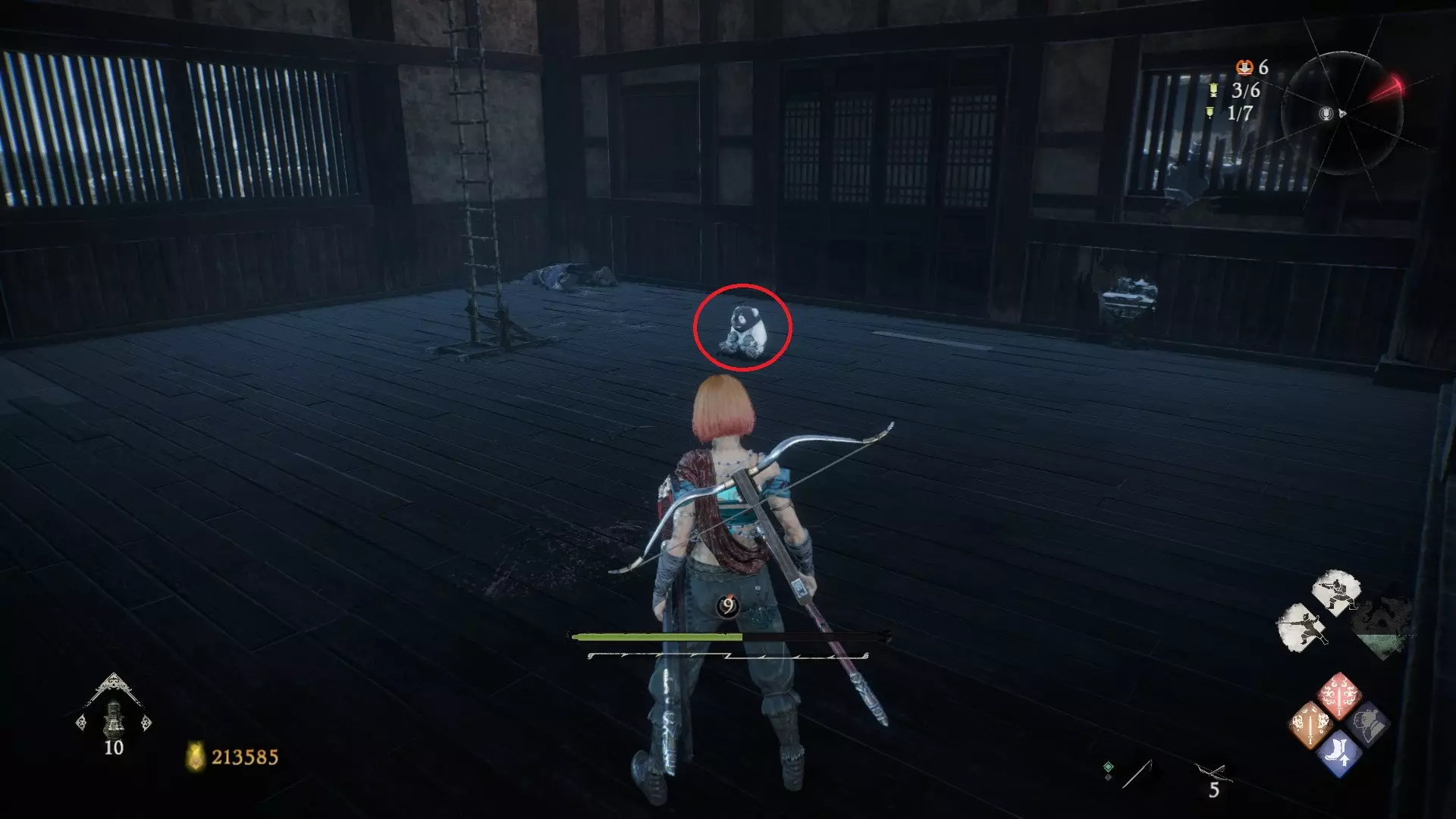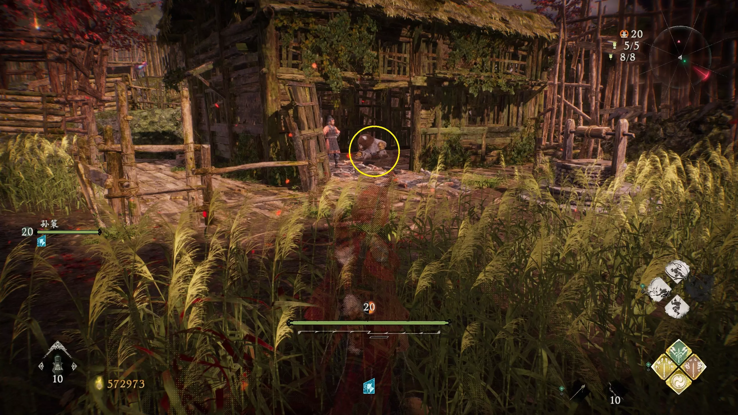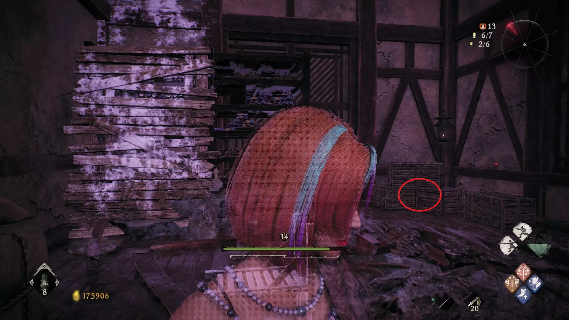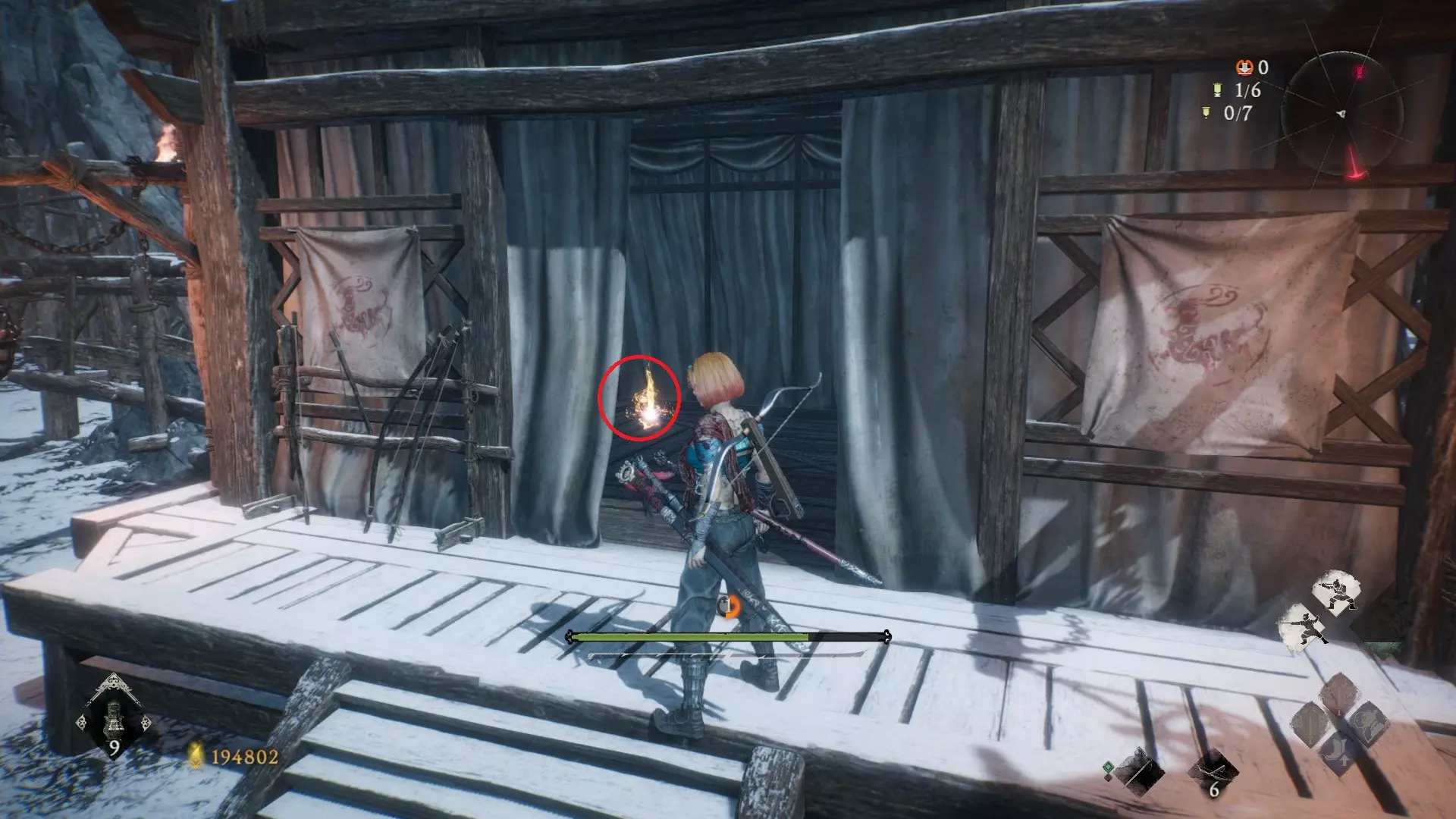 3 外章二东莱有义士 沿着主线流程一直往前走,直到过桥到达开局牙旗的近路梯子,继续往前走进入一片庭院,正前直走再左转,房屋内部有个大号啮铁