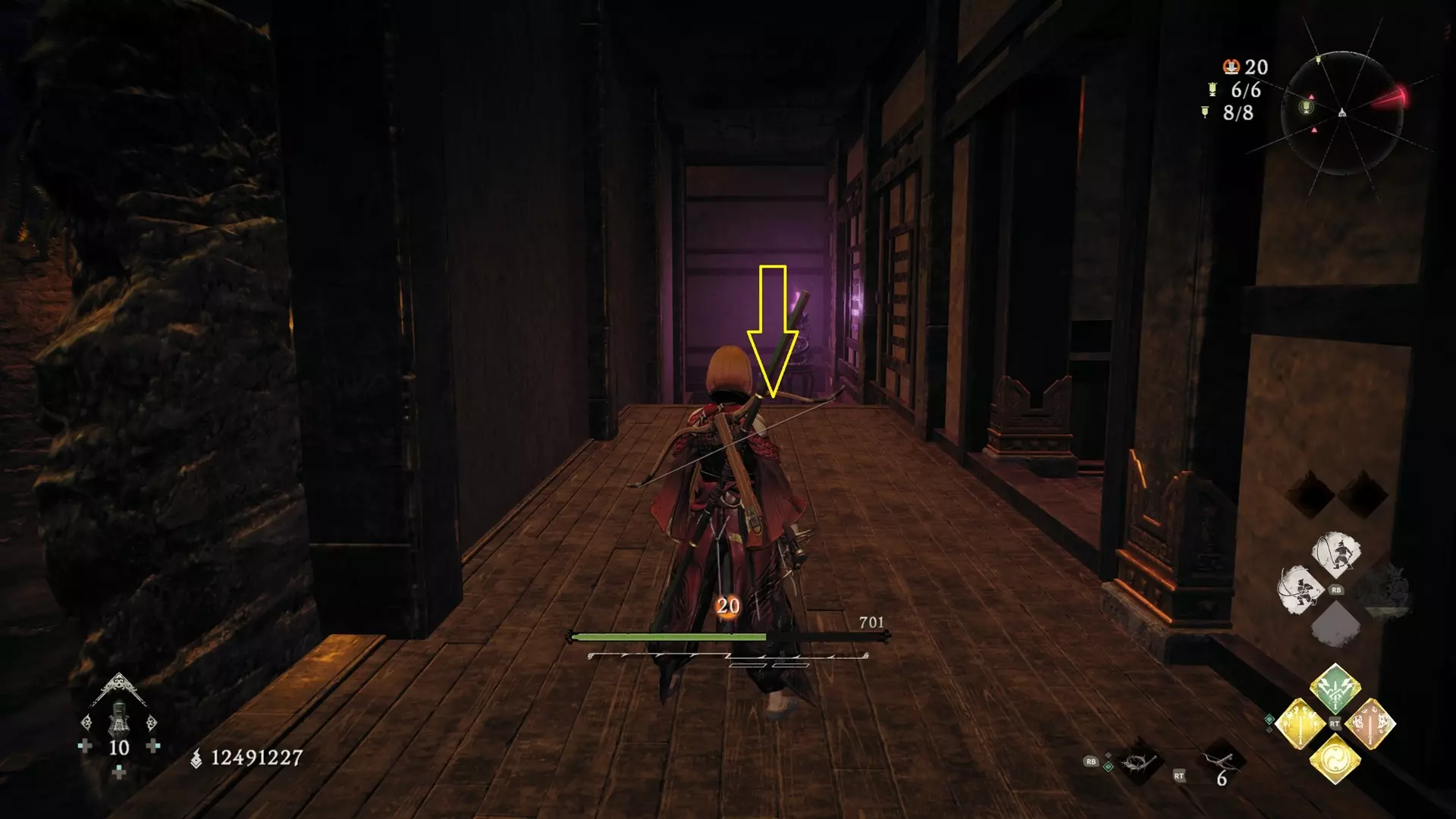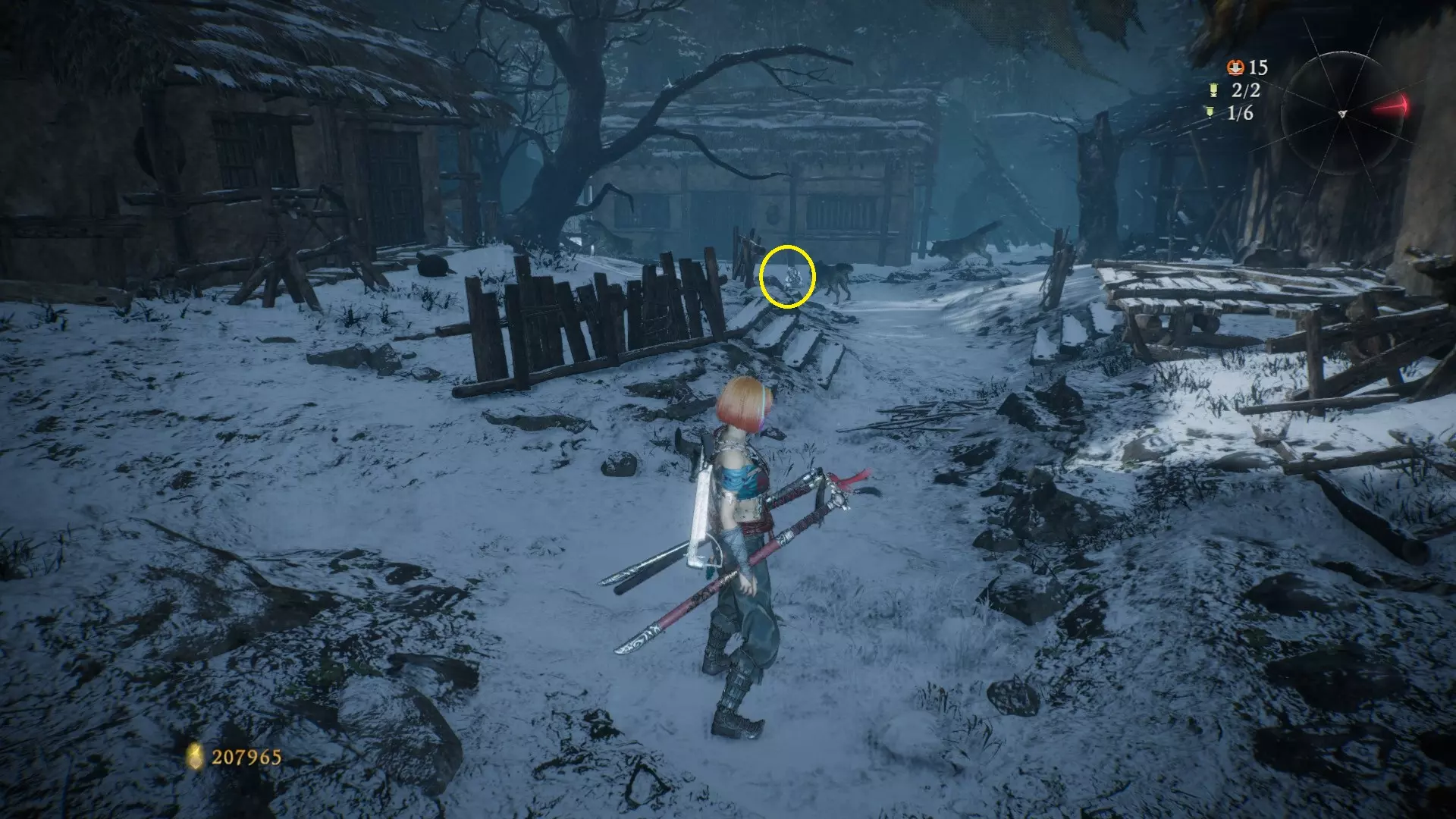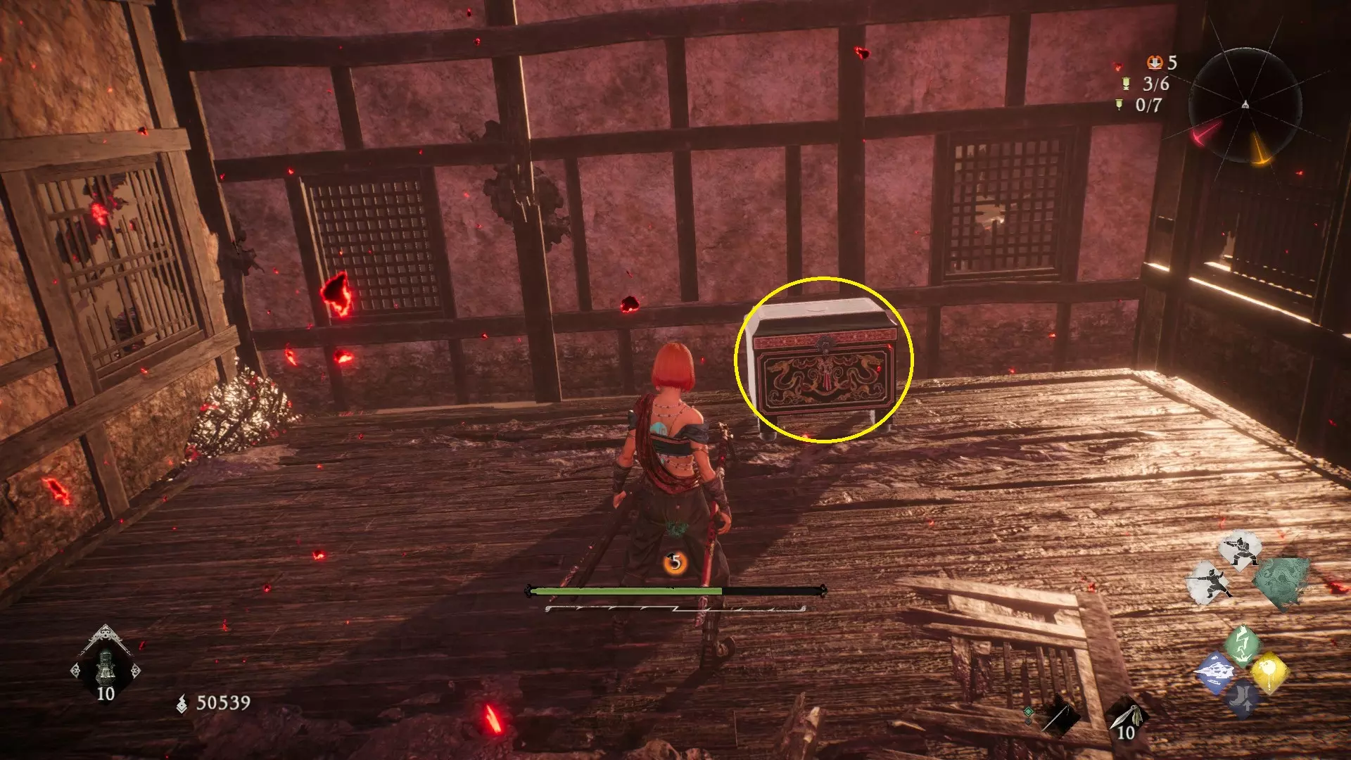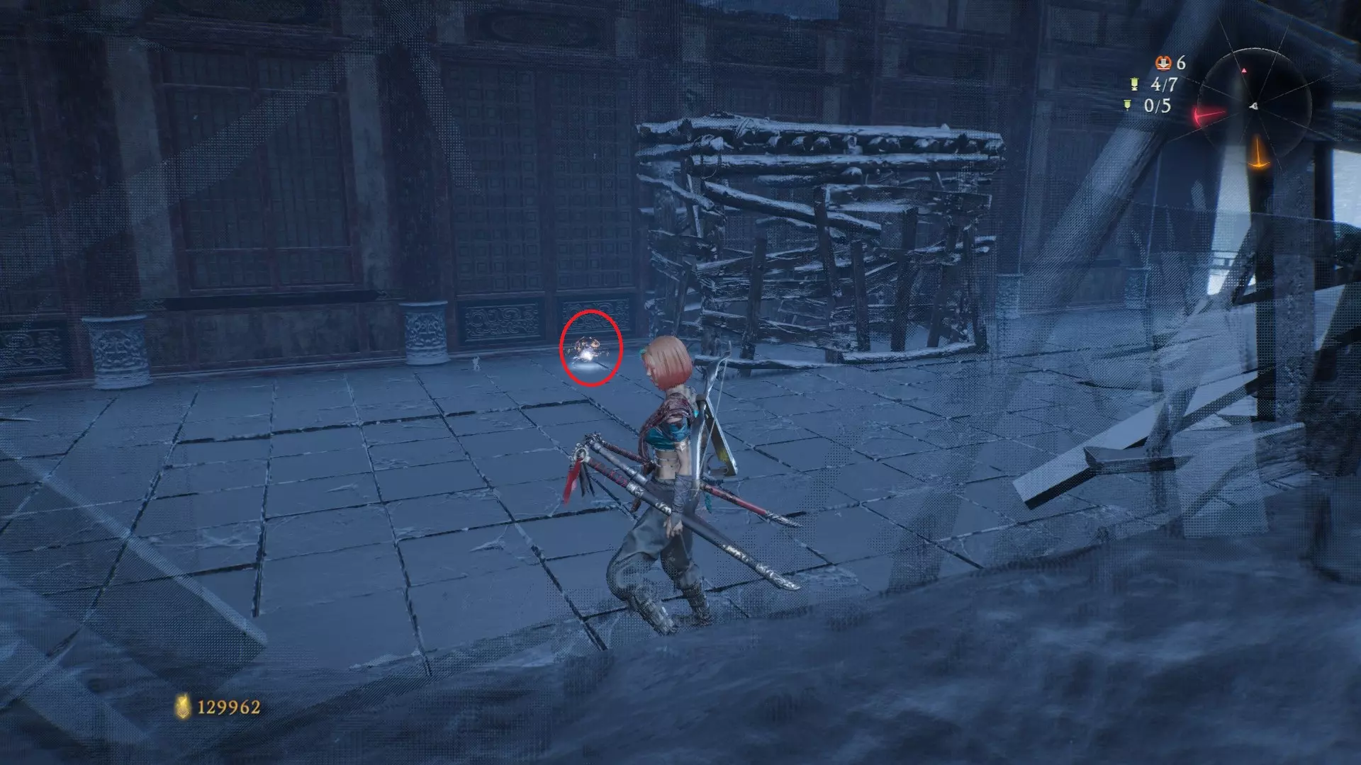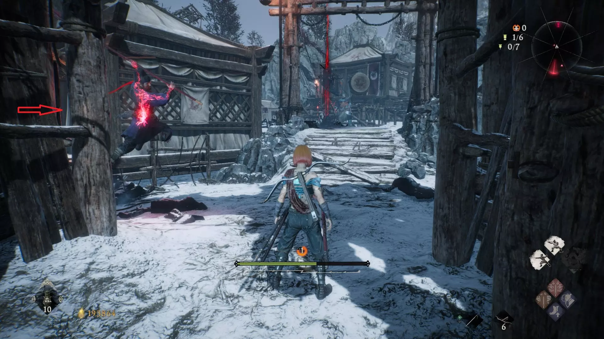 3 外章二东莱有义士 沿着主线流程一直往前走,直到过桥到达开局牙旗的近路梯子,继续往前走进入一片庭院,正前直走再左转,房屋内部有个大号啮铁