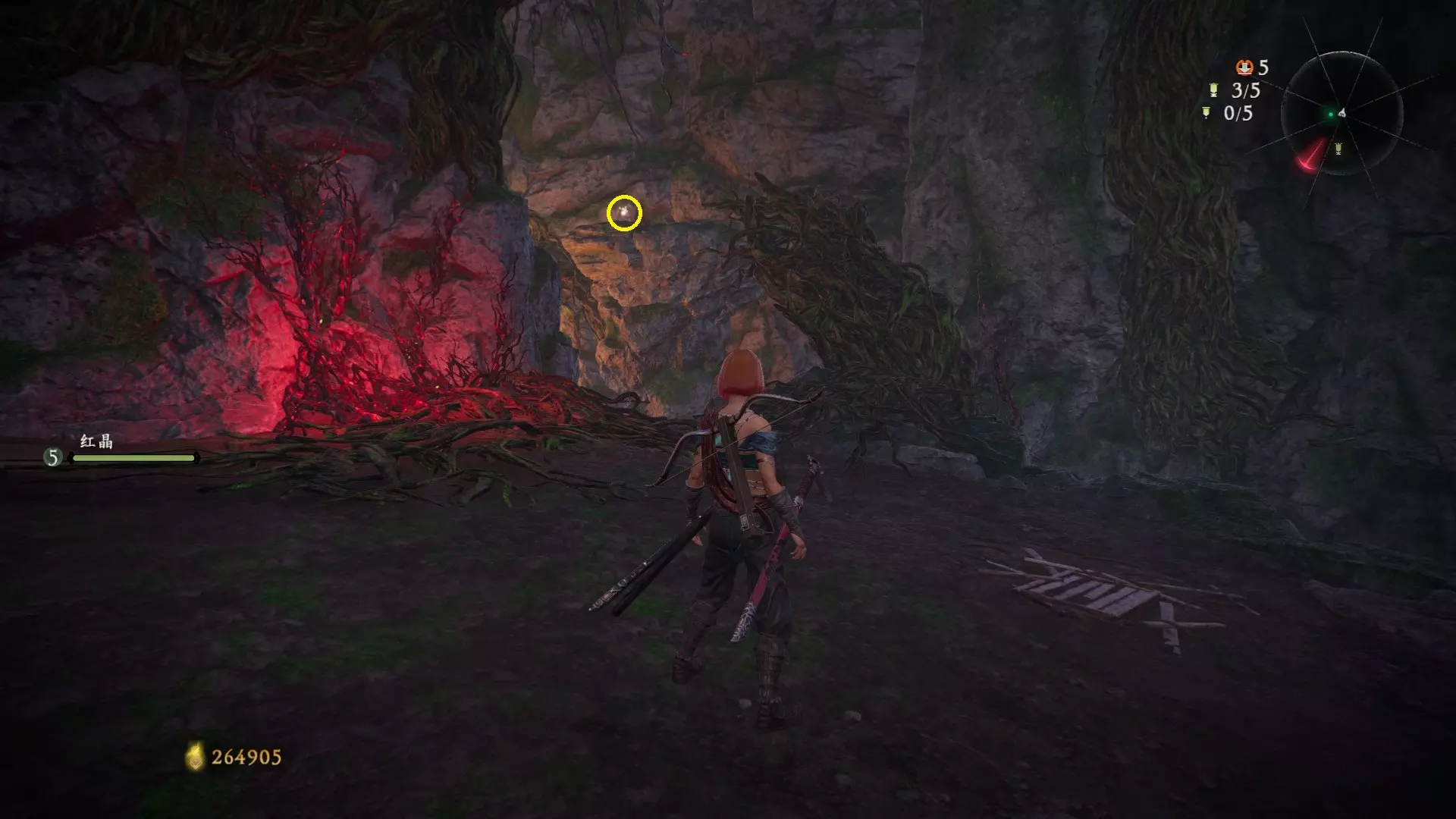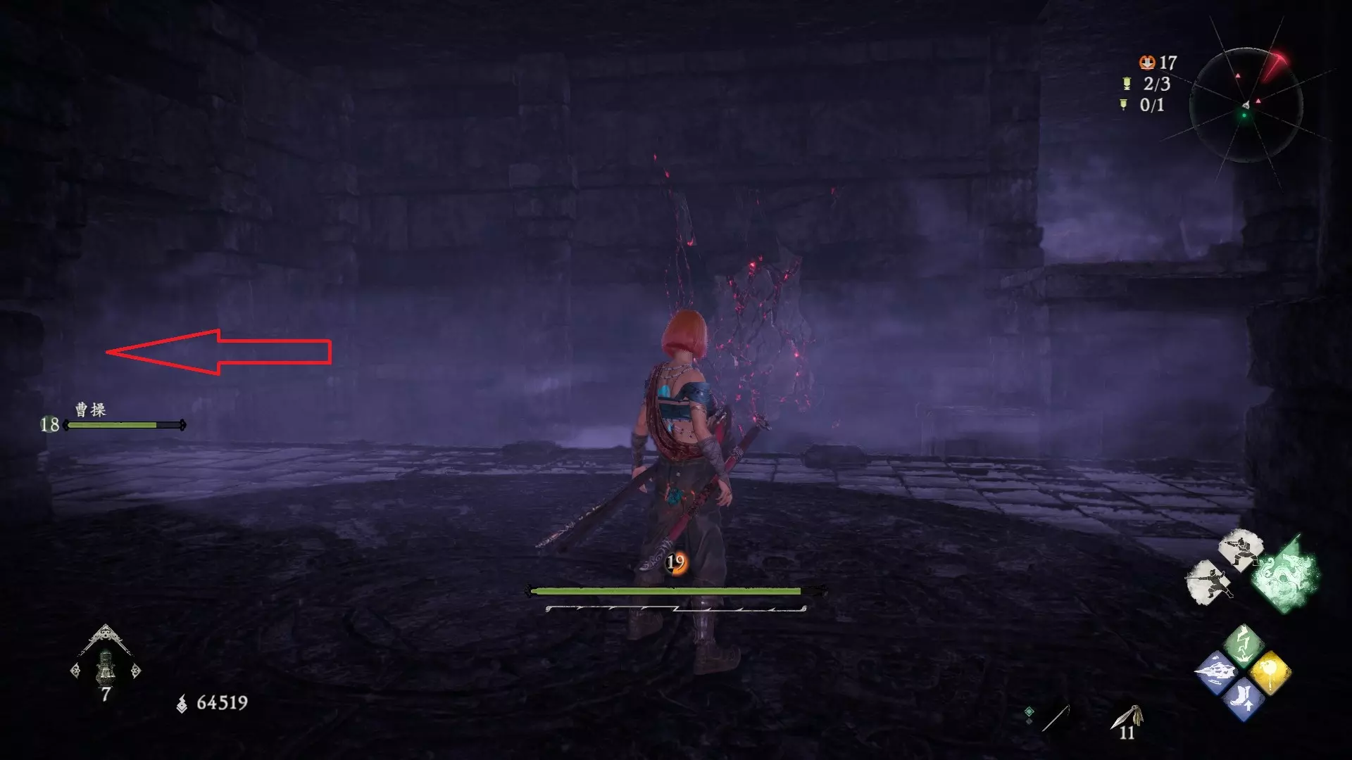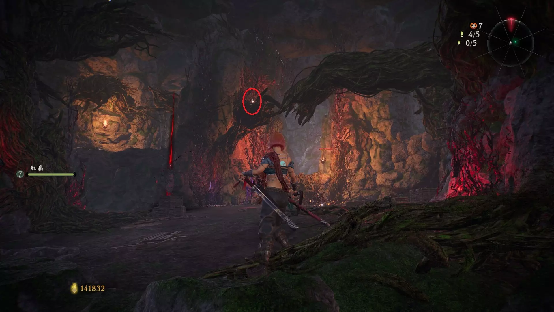 拨云见日 已在【魔殿悍鬼狂】摧毁所有共鸣的结晶。 共五处 鉴定方法:结晶会强化周围的怪物,怪物泛着紫色的气就说明周围有结晶。 解锁第二个牙旗,刚进入大殿一层后,从左侧门进去(当时用弓箭打掉了,黄圈位置)