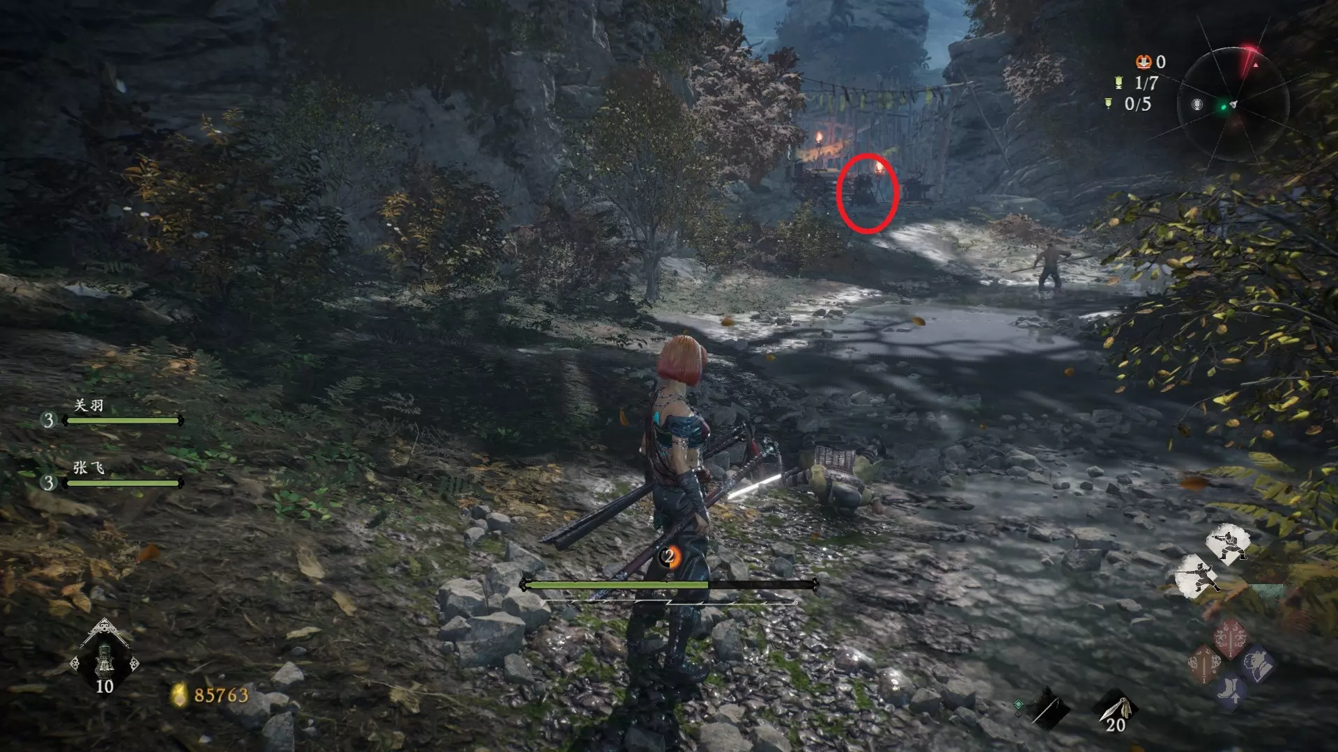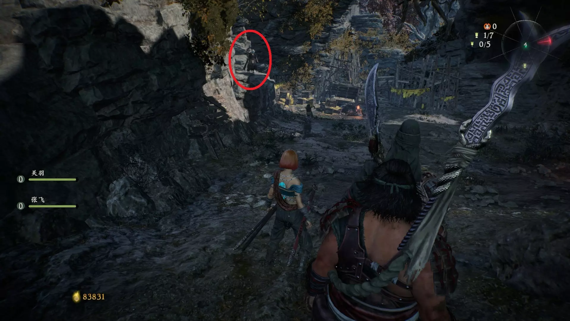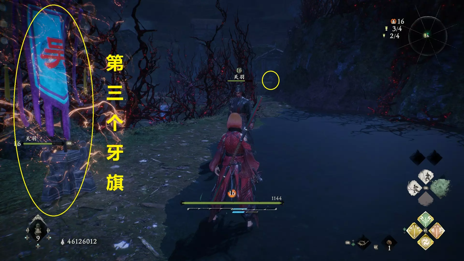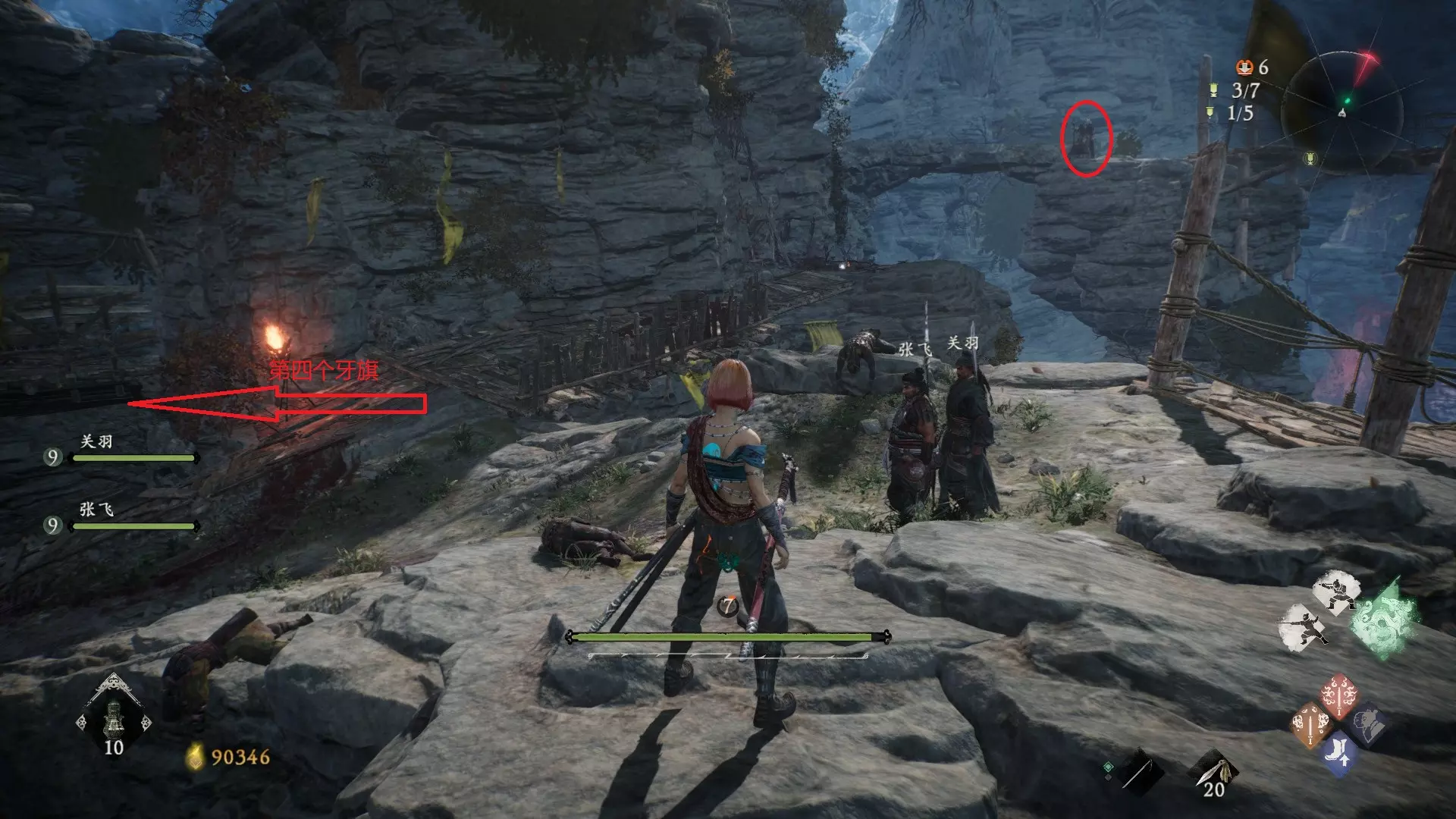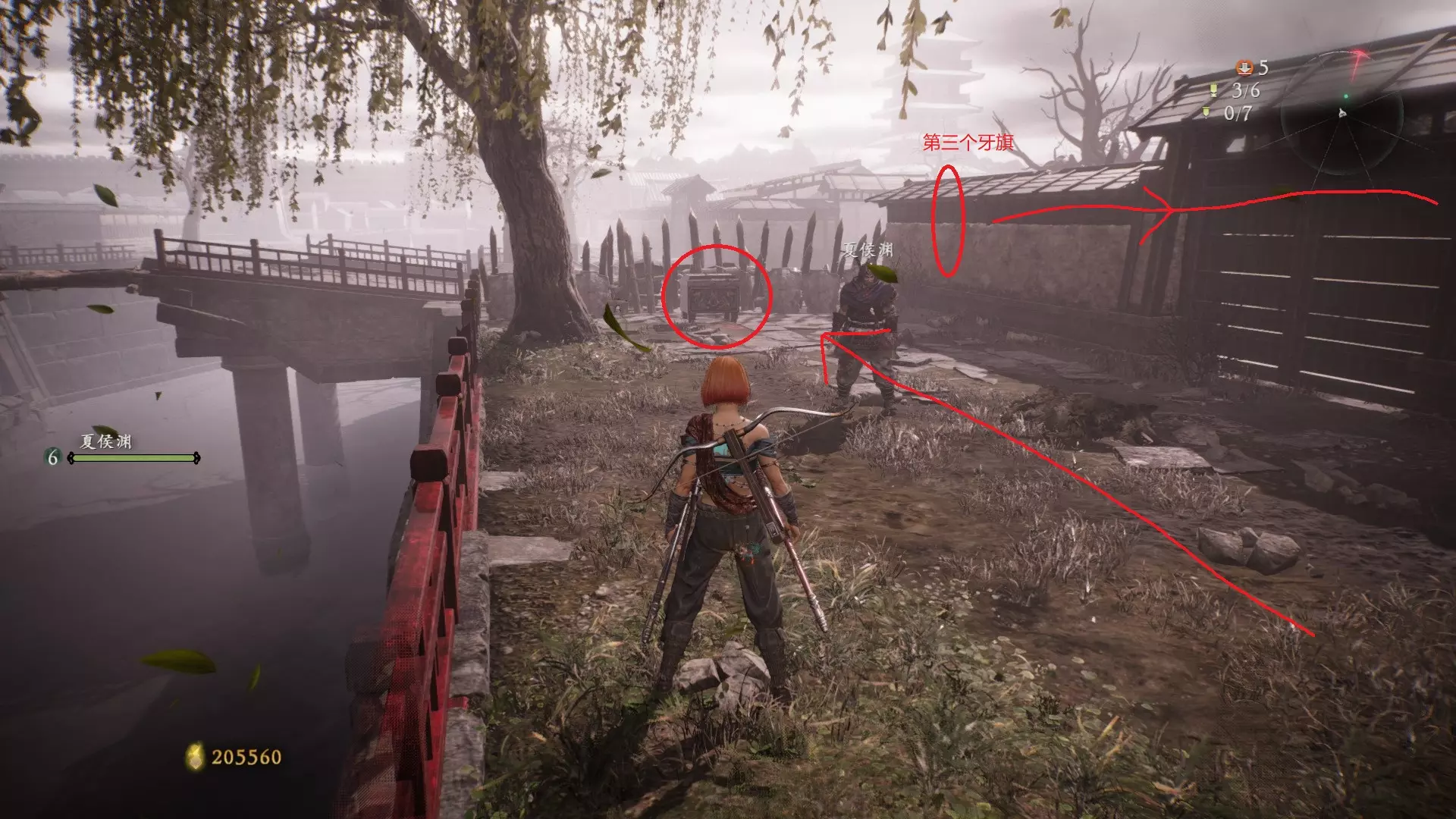 9 第五章 濮水烽烟起 不算开始桥对岸的旗子,第三个牙旗之后进入排水渠(有很多石头人),出口梯子的位置有两个石头人挡着的方向,但现在有水过不去,顺着梯子出去之后放水再掉头回来