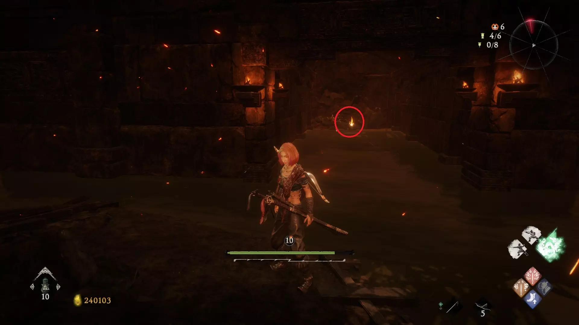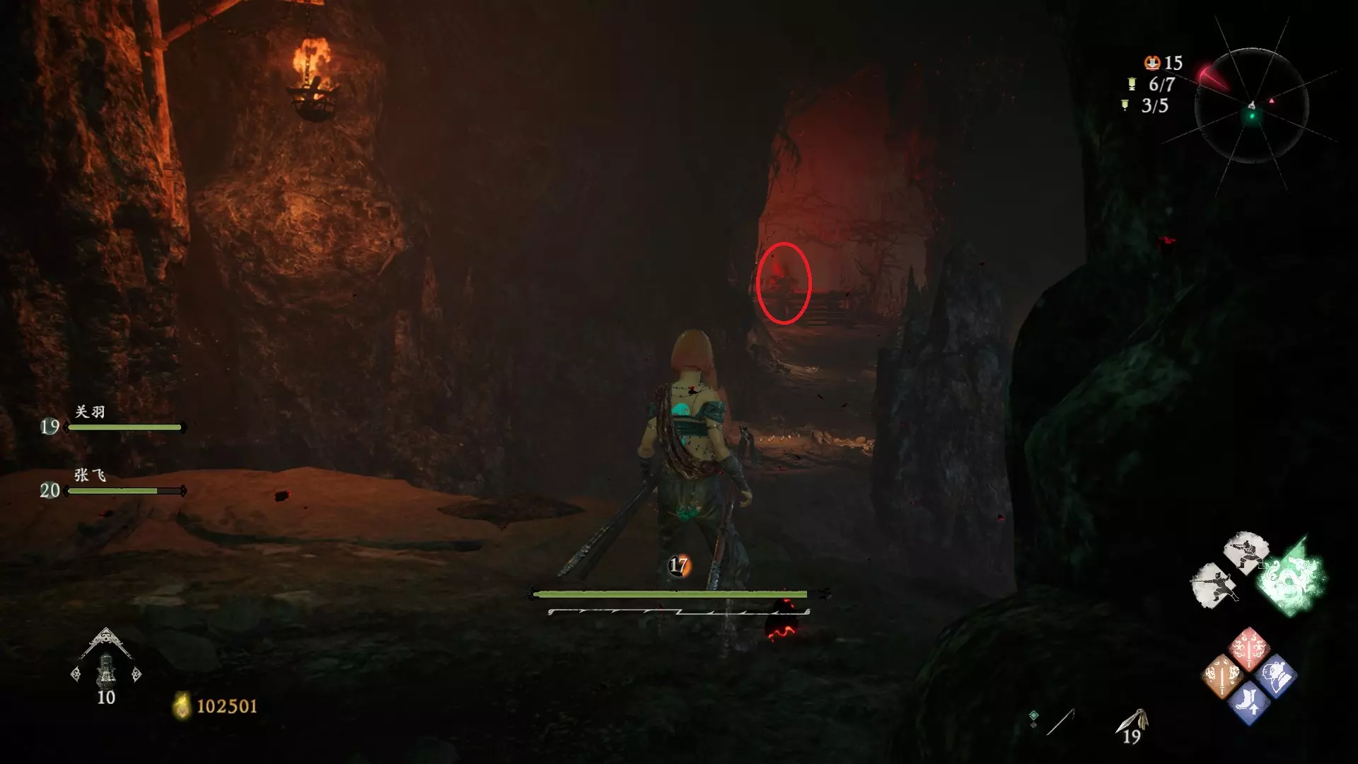 11 第四章 贼臣夜笙歌 过了第二个城寨区域,进入洞穴后,一直往前走到有精英怪鳄鱼的房间,就在中间的地板上