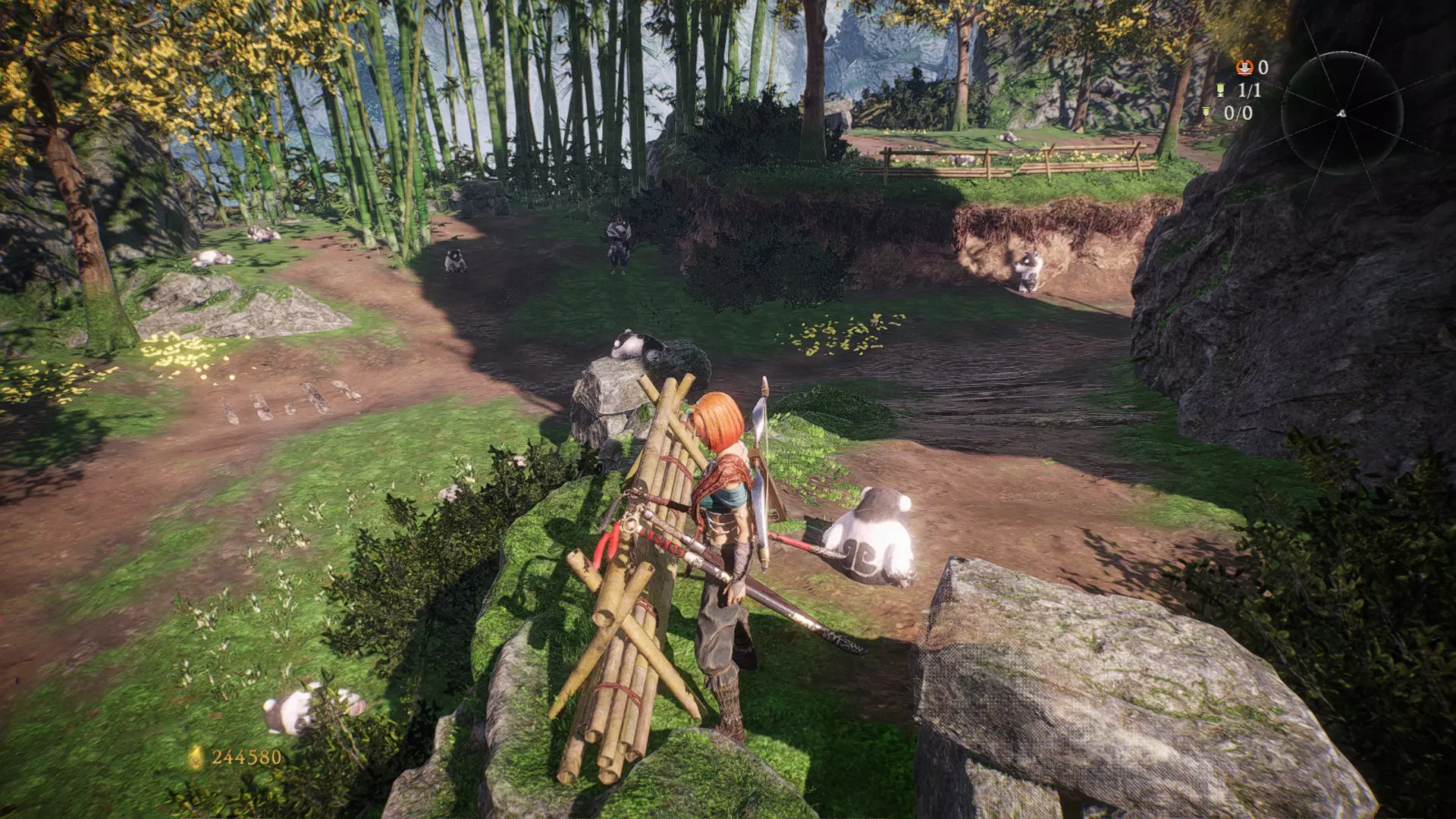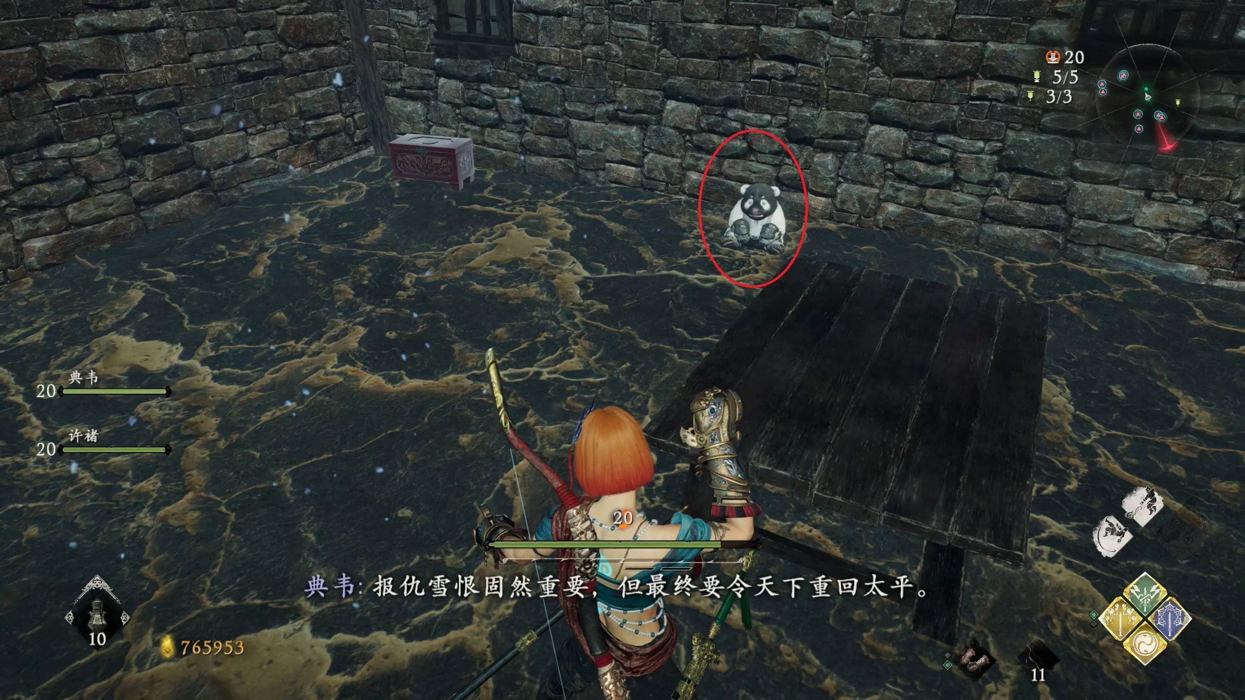 14 第五章 濮水烽烟起 解锁第三个驻守的牙旗后,前方右转,再往左转,能看到有一个士兵和熊猫面对面
