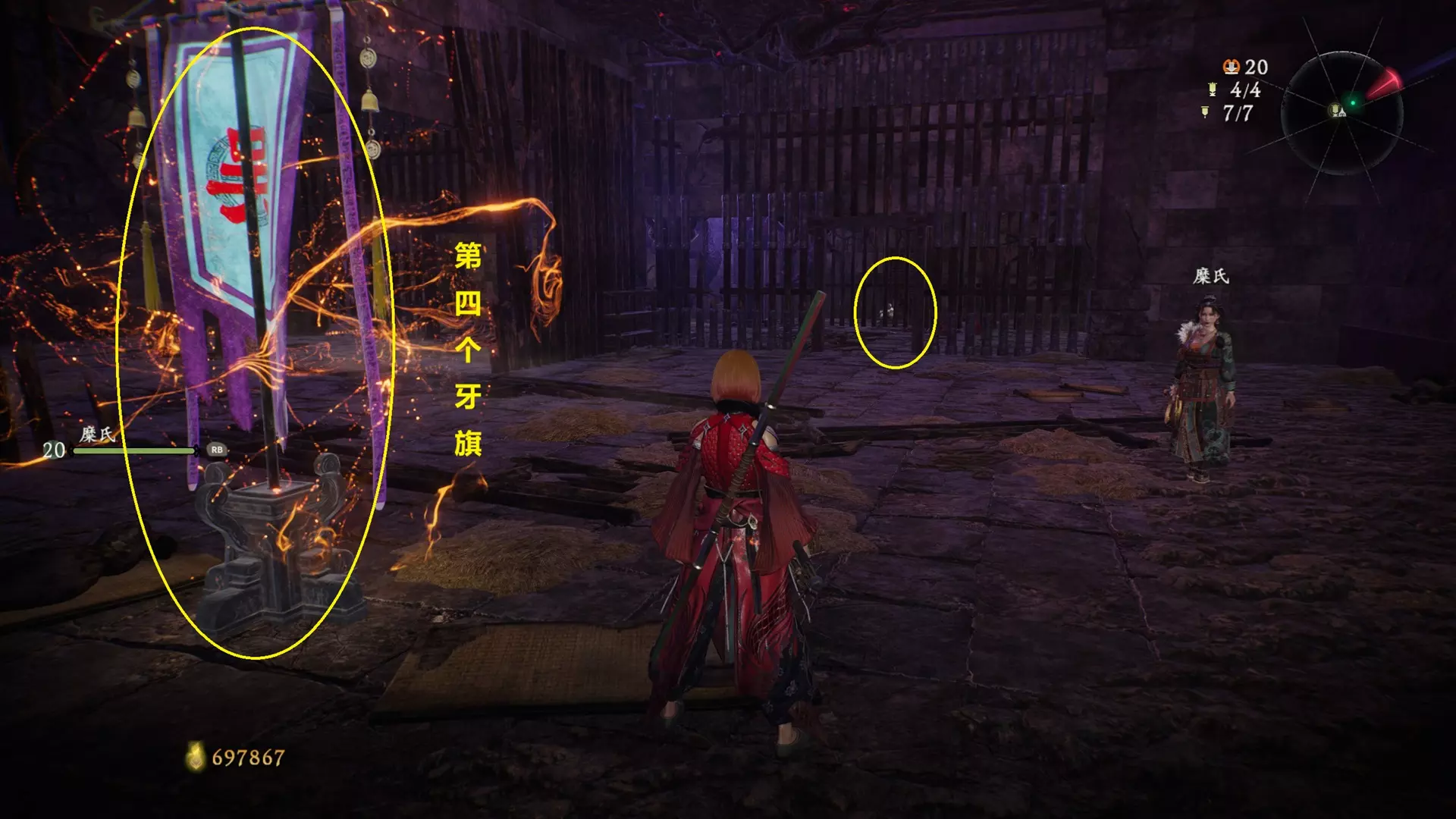 4 第三章 恶宦终伏诛 先去第二个牙旗旁边拿钥匙(参考【义无反顾】成就)后去右下角的牢房