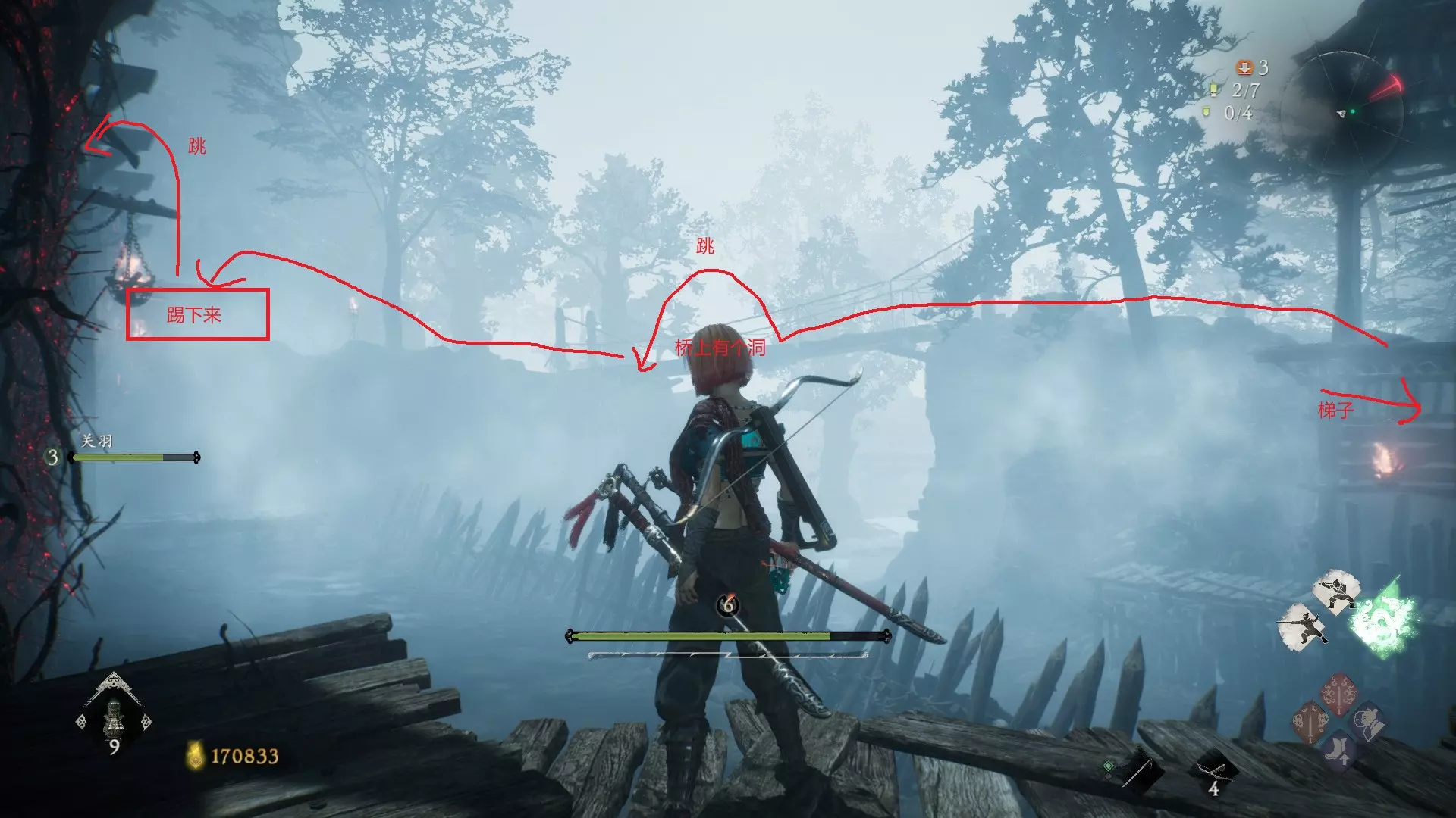 21 第二章 暗渡鬼哭谷 走到旌旗前有洞的桥这里,向下看 (感谢 @PPPerry 大佬补充)