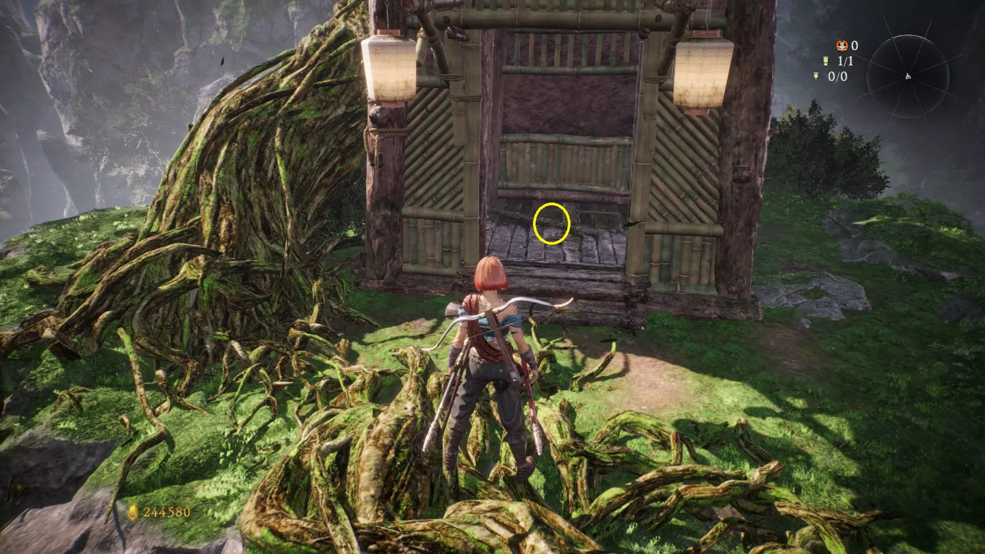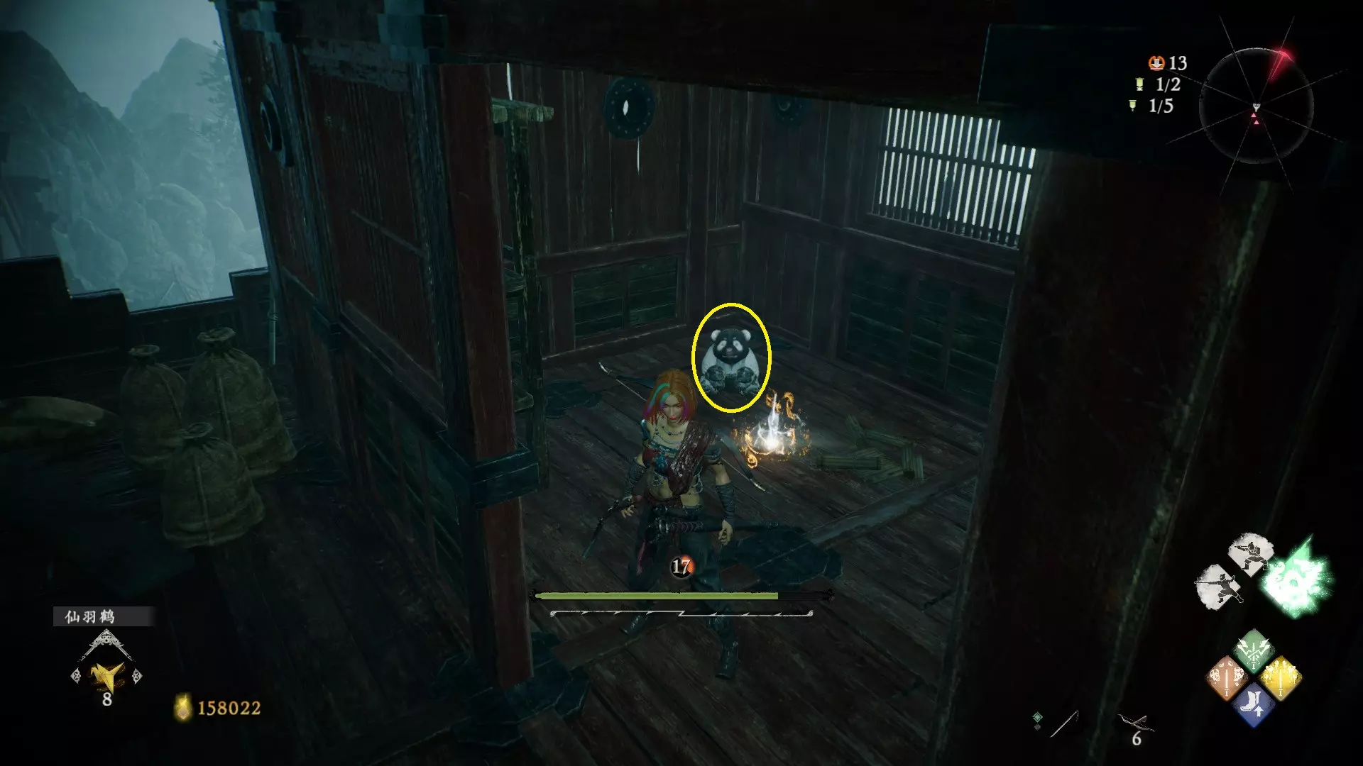 6 第三章 山魔影遮天 解锁亭子旁边有老虎的牙旗后,朝右侧走,不远处的木屋即可看到