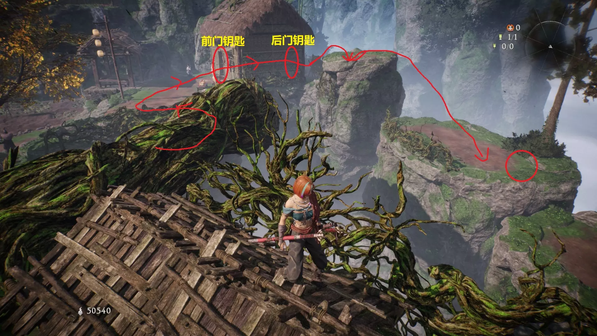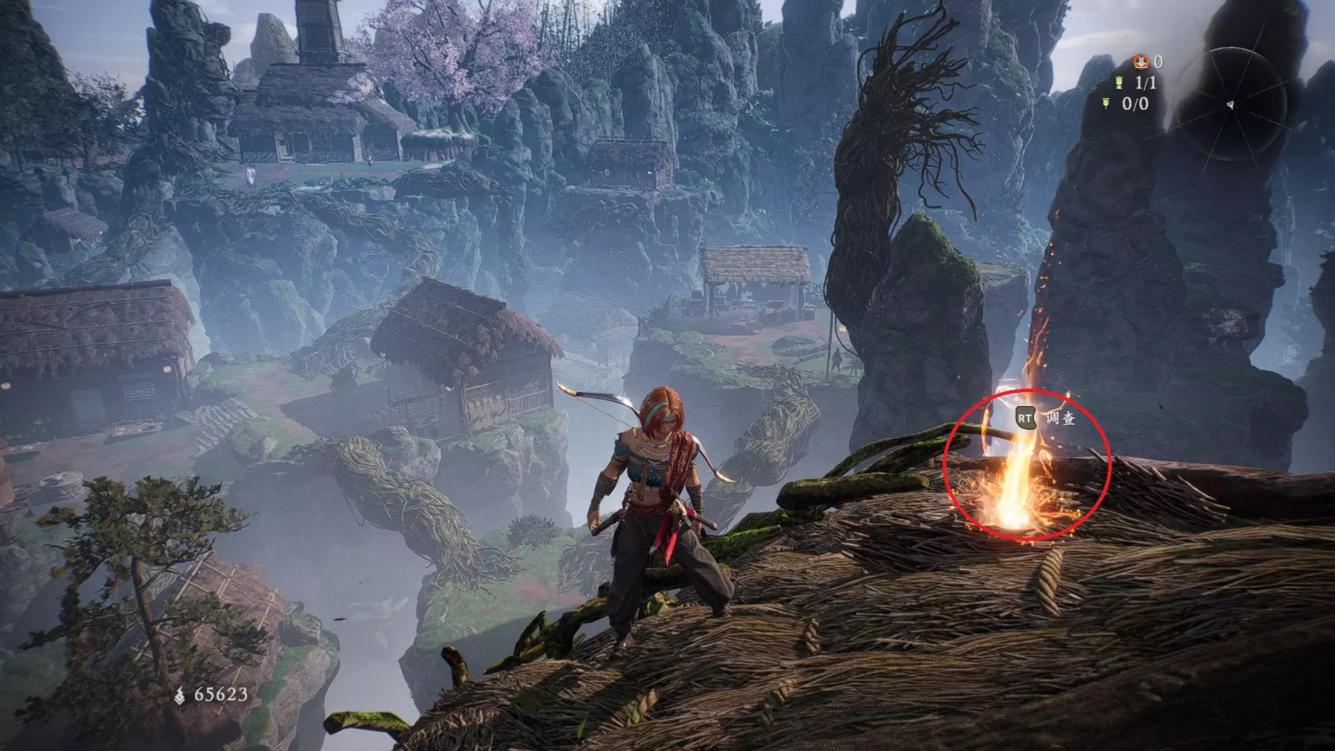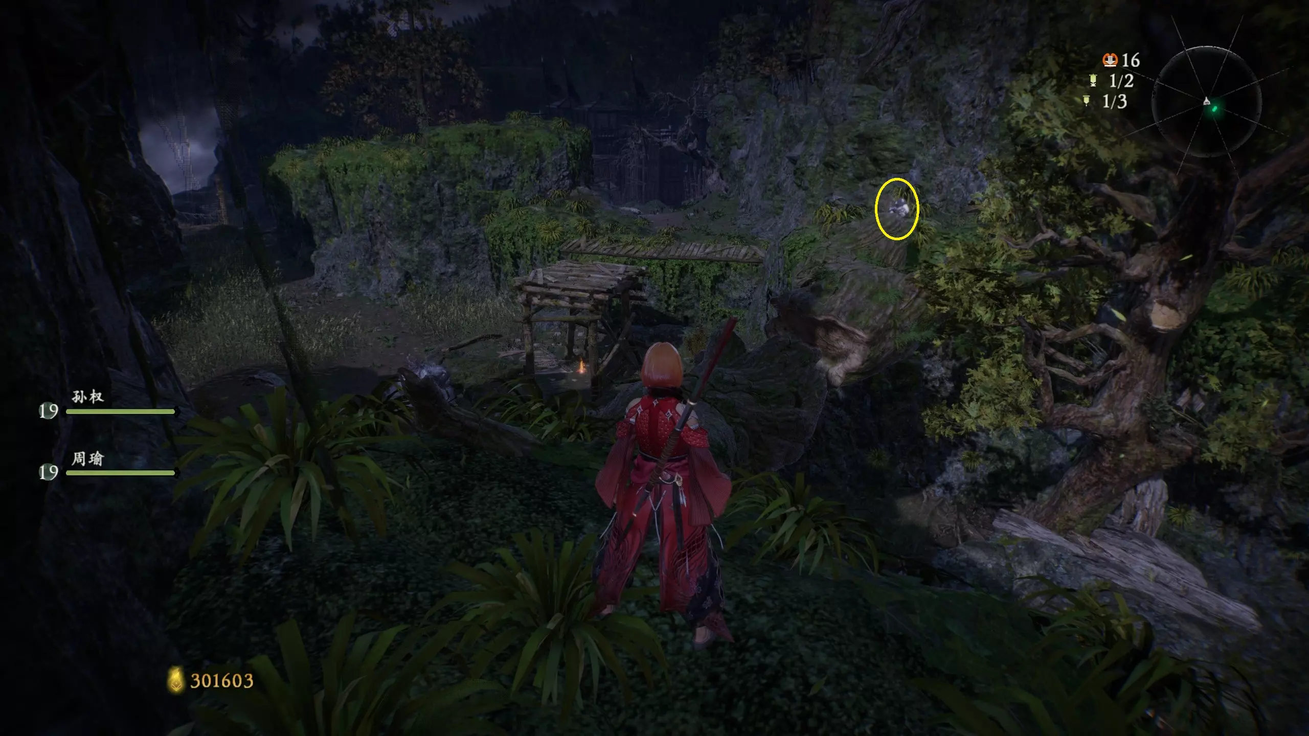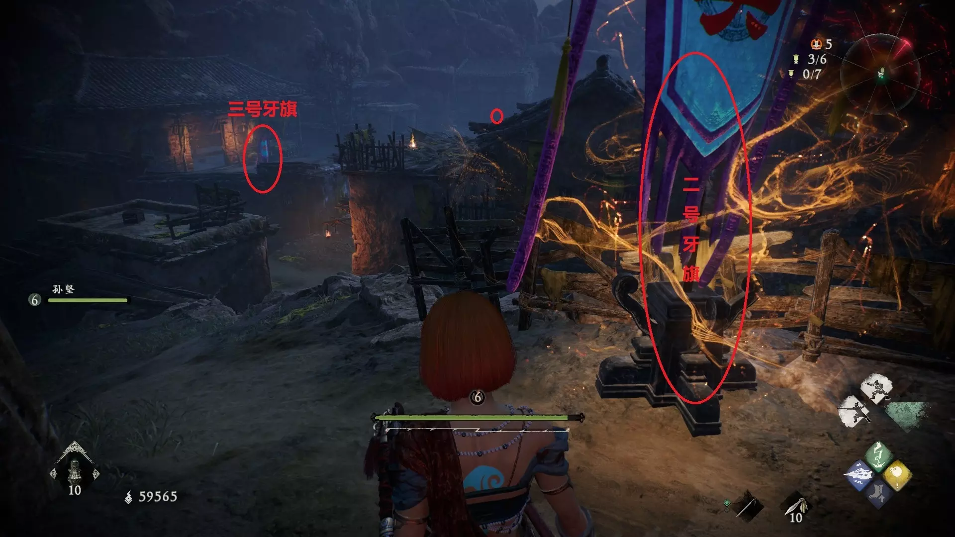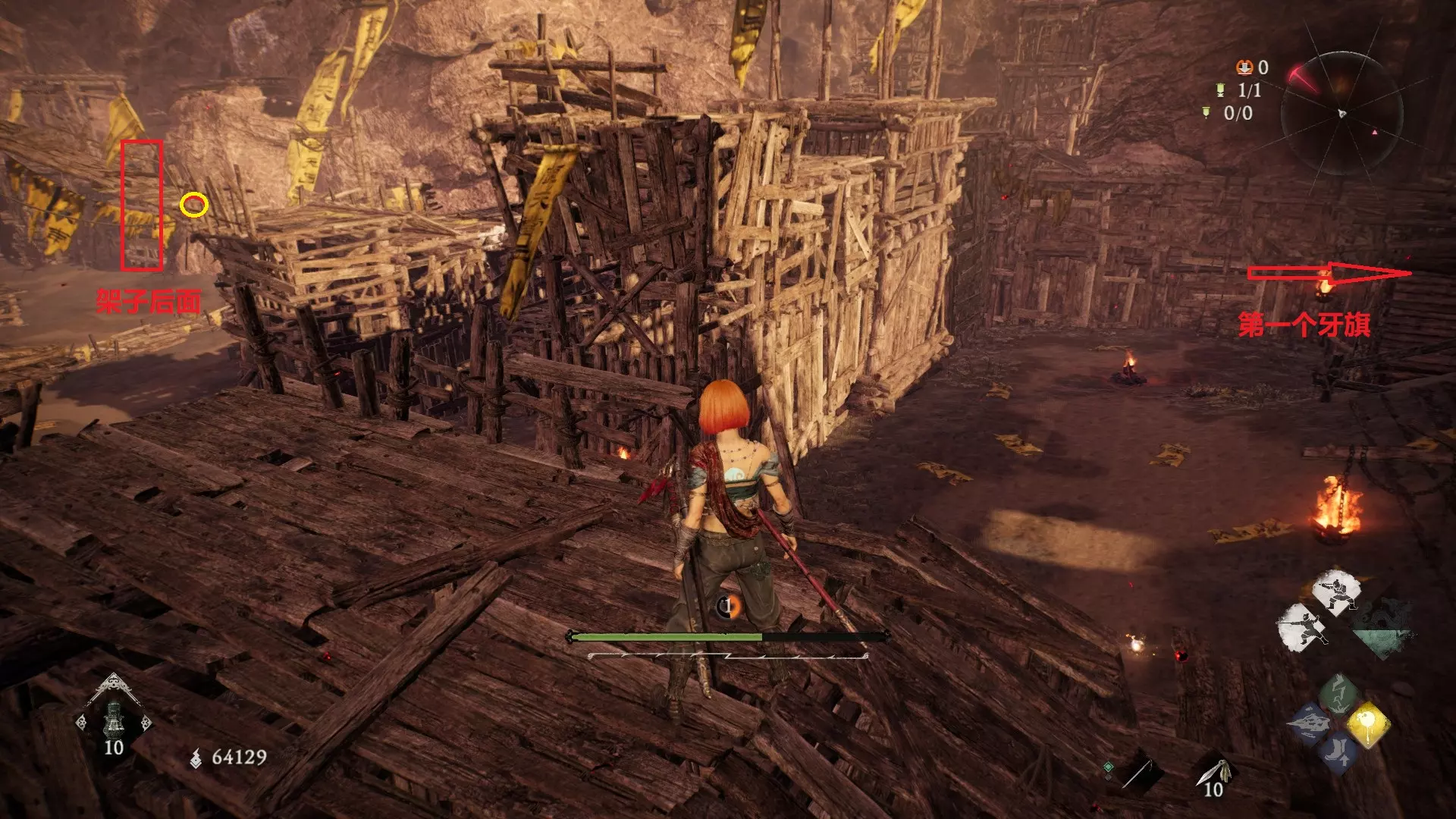 外章三水畔空然村(2/2):到达第二个牙旗处前方的高台上,同样需要绕一圈过去,旁边就是近路梯子。