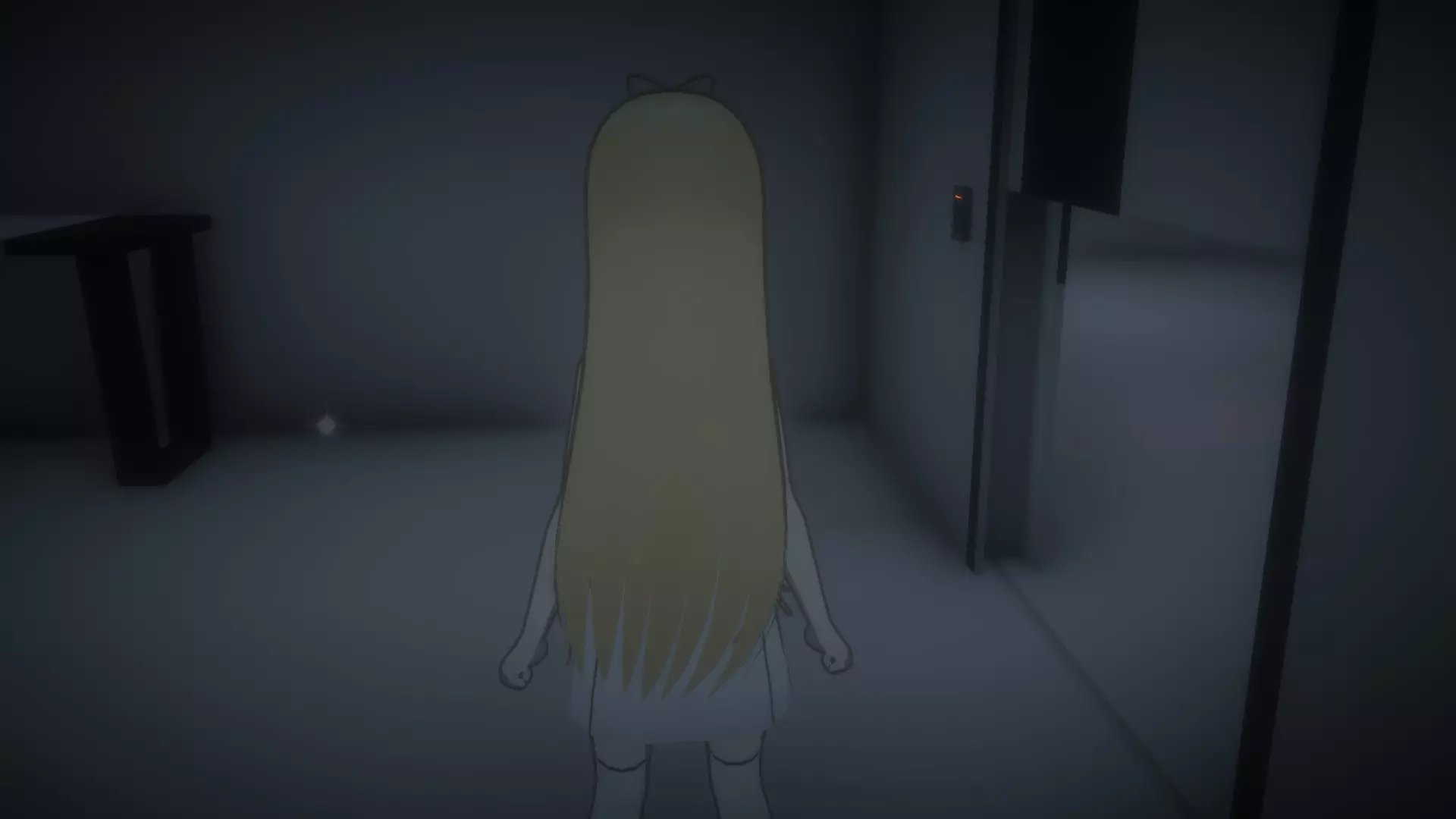 往后走,开门进入,继续上楼到达一片开阔区域,前方开阔区的左侧