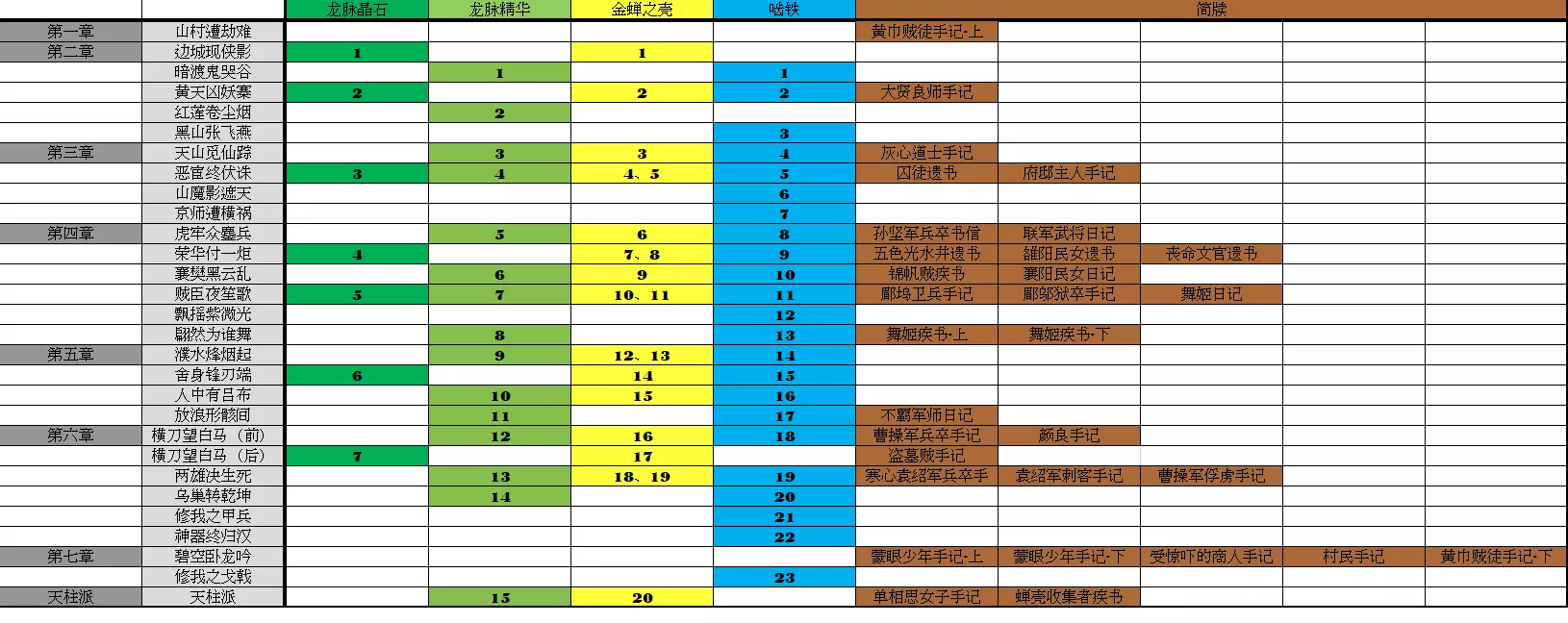 药到病除 已将龙愈之壶的次数和效果强化至上限。 单周目共计7个龙脉晶石,15个龙脉精华。上限为10瓶药,效果+15。 多以牙旗位置为参考,尽量多的信息描述。 龙脉晶石: 编号 副本 描述 图片 1 第二章 边城现侠影 打完第一个boss后,进入房间即可看到