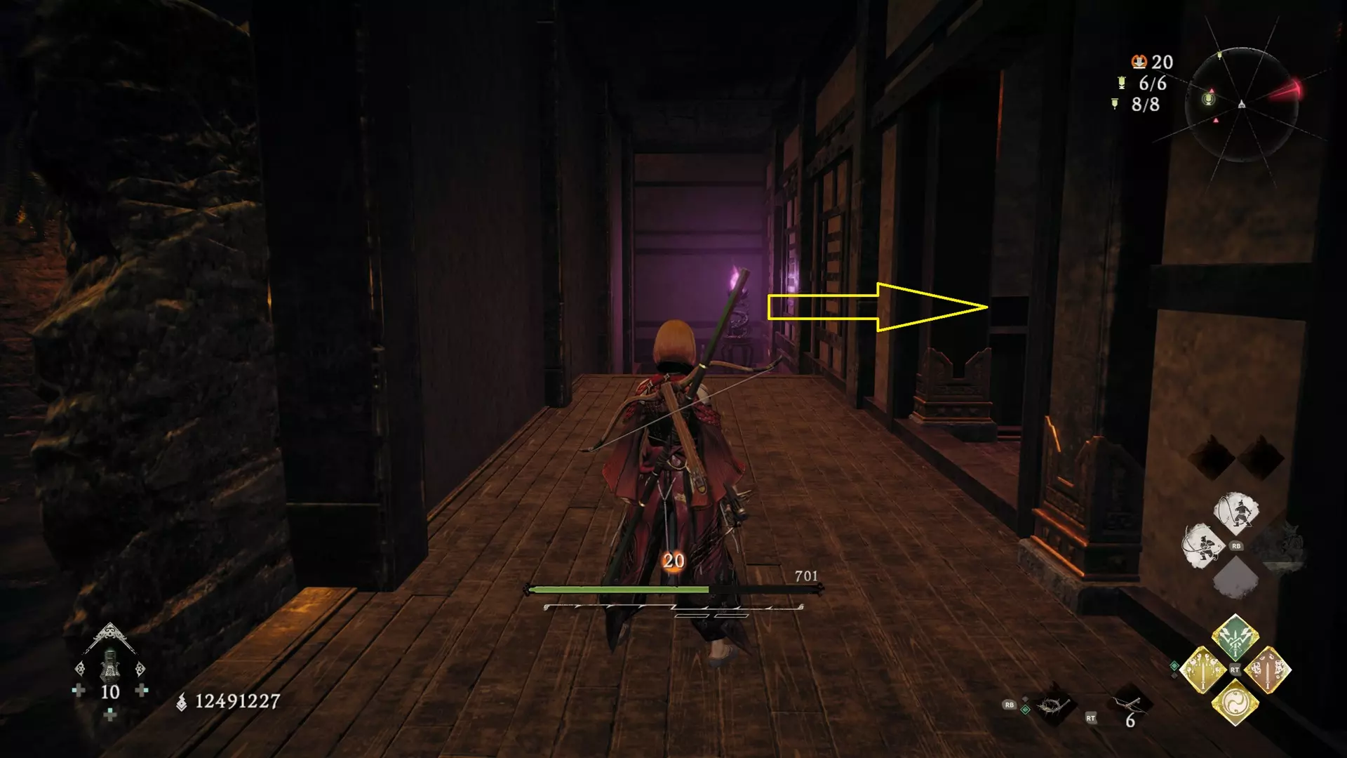 7 第四章 贼臣夜笙歌 顺着主线路径走到该房间,上面的吊篮,房间左侧就是第三个牙旗旁边的近路