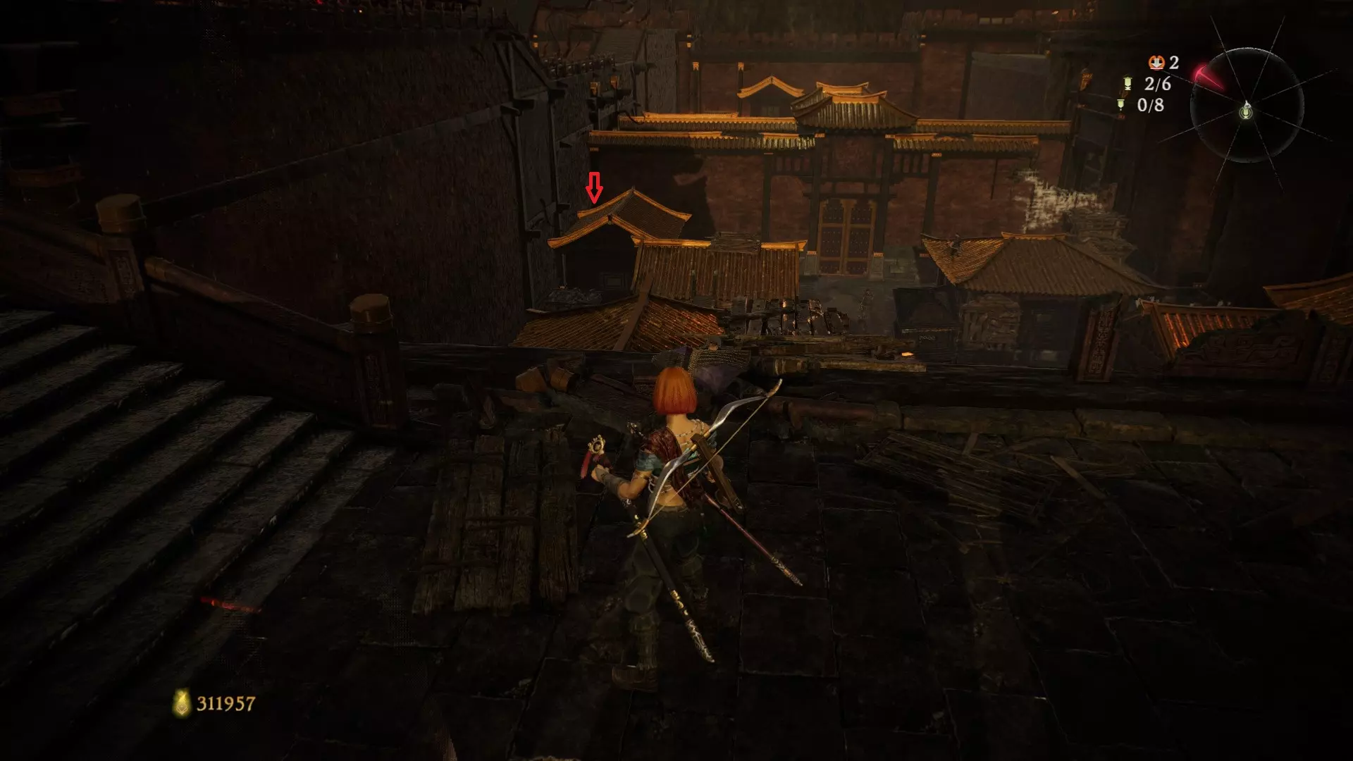 11 第四章 贼臣夜笙歌 打完BOSS门前的小BOSS野猪后,从右侧大门进入,右上方的屋顶