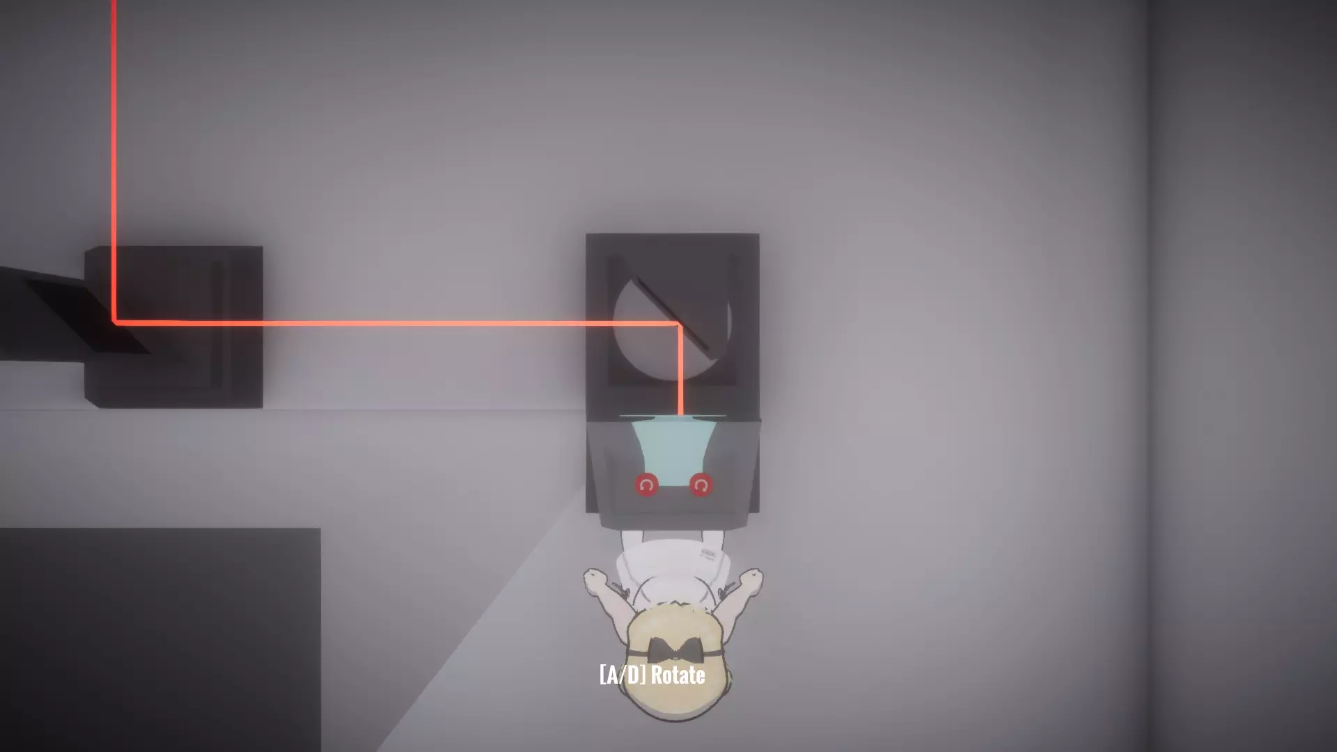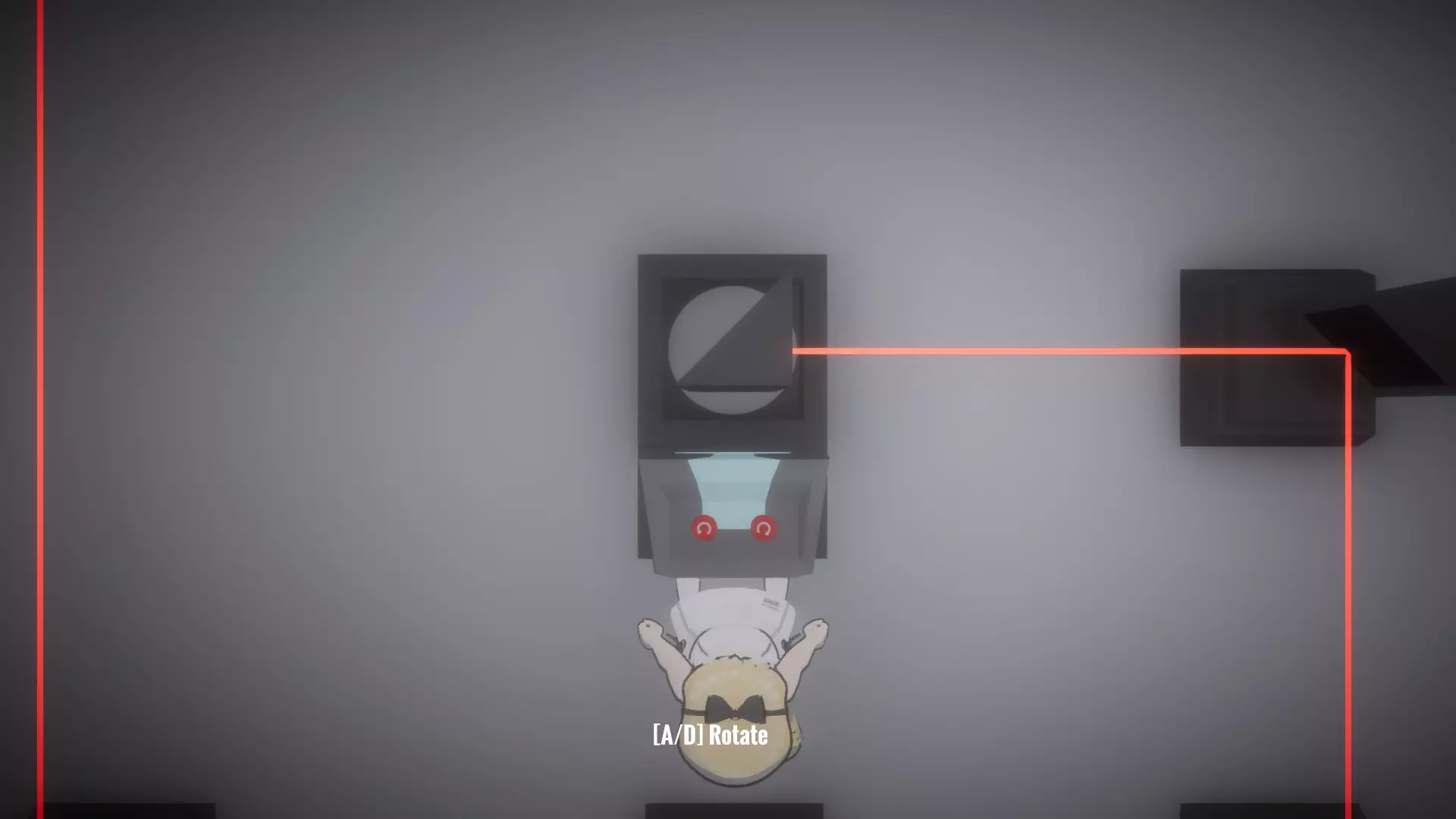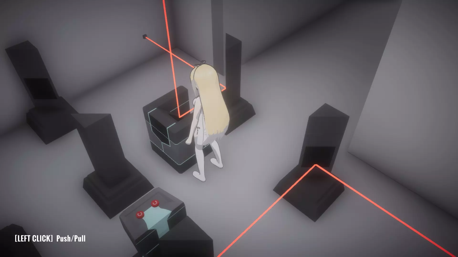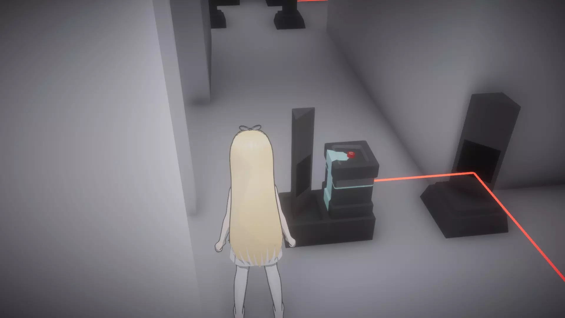在恢复所有物品前按住按钮房间,让你的另一个姐妹进入下一个谜题,就像最后一张截图那样。这里需要同时解开蓝色和绿色激光才能打开出口。 大厅房间4谜题的解法: