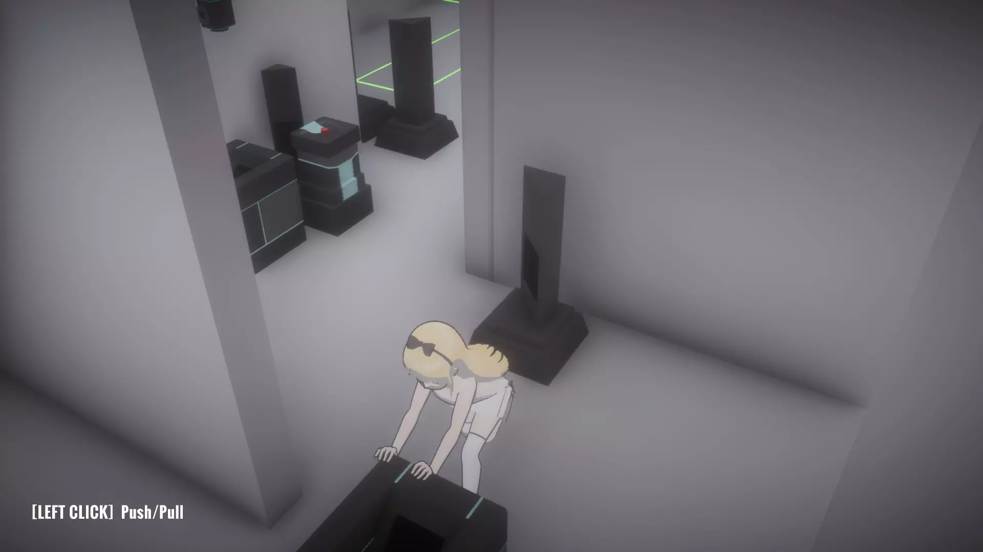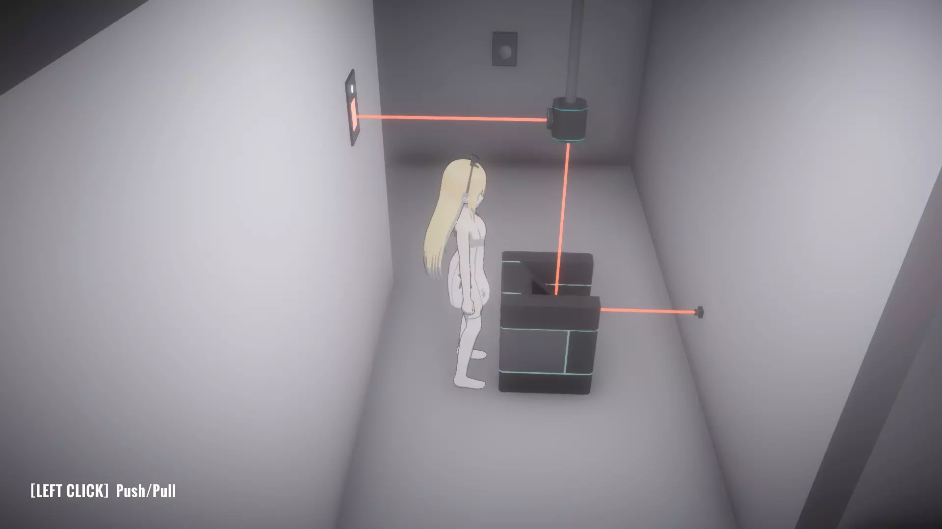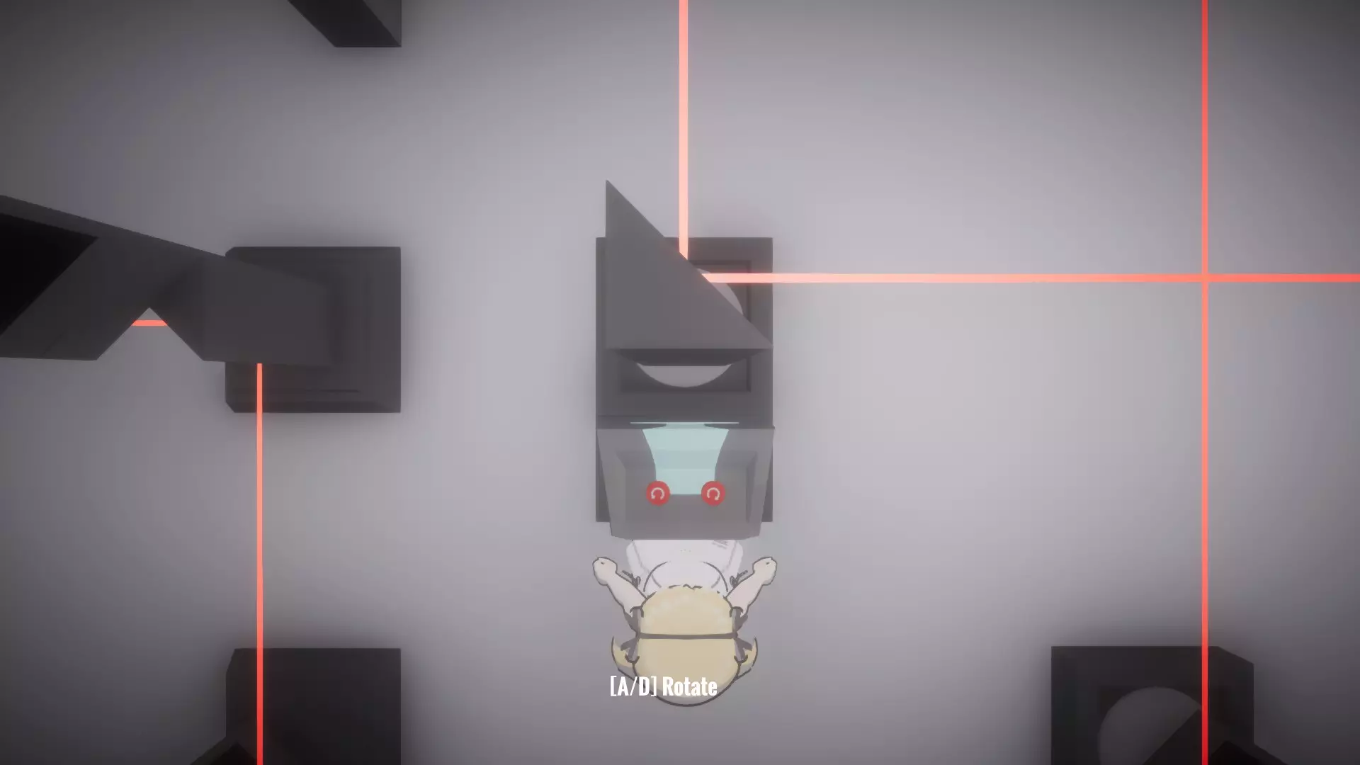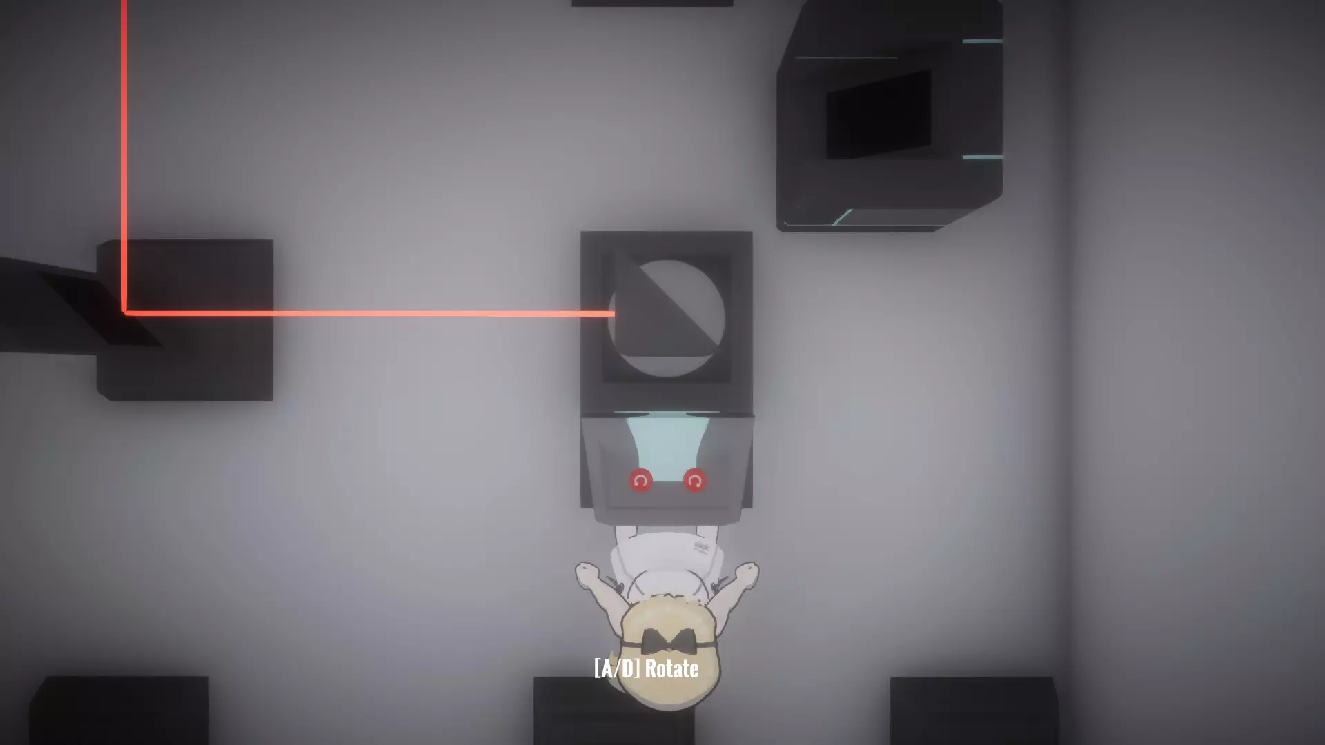 在恢复所有物品前按住按钮房间,让你的另一个姐妹进入下一个谜题,就像最后一张截图那样。这里需要同时解开蓝色和绿色激光才能打开出口。 大厅房间4谜题的解法: