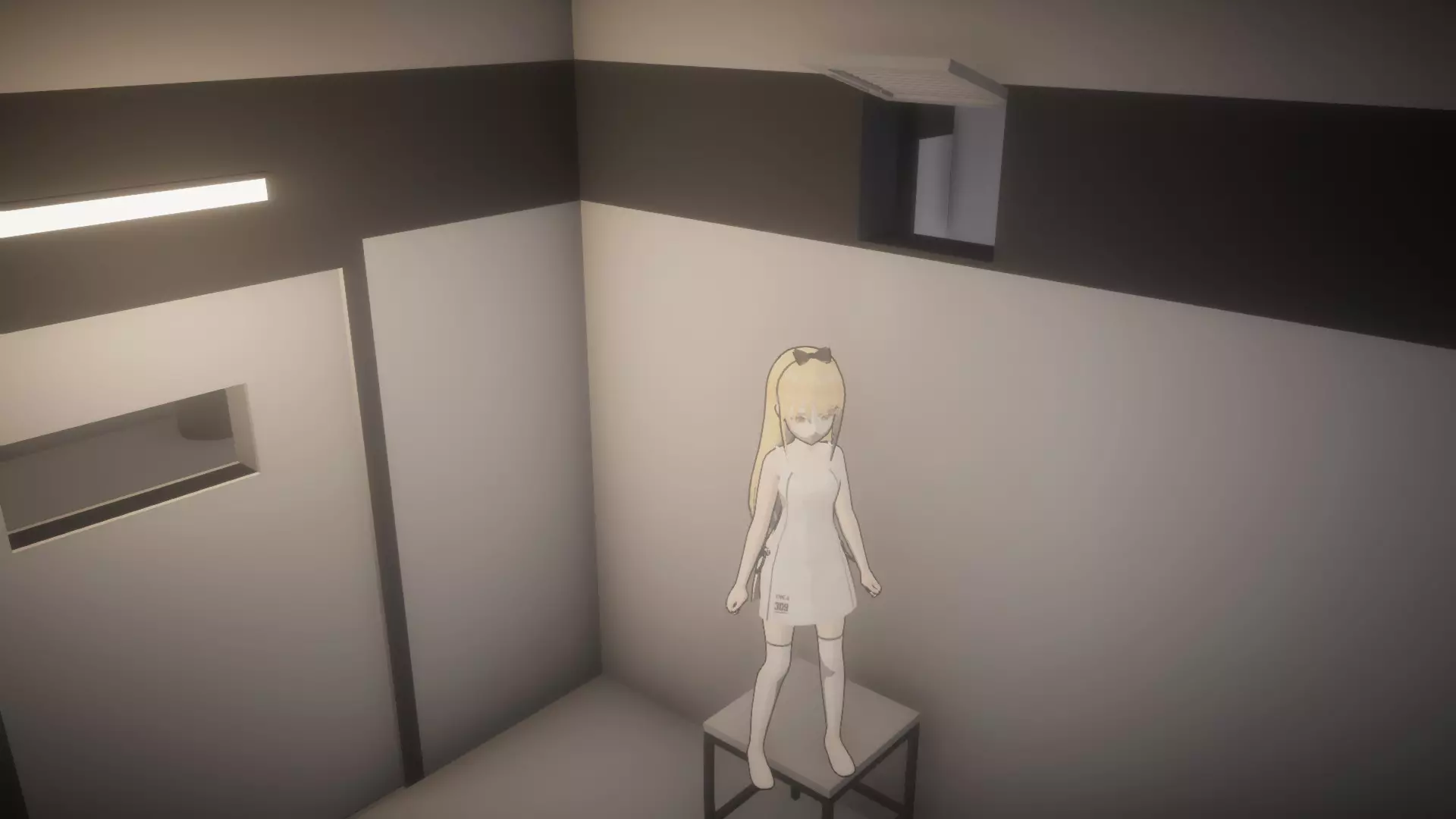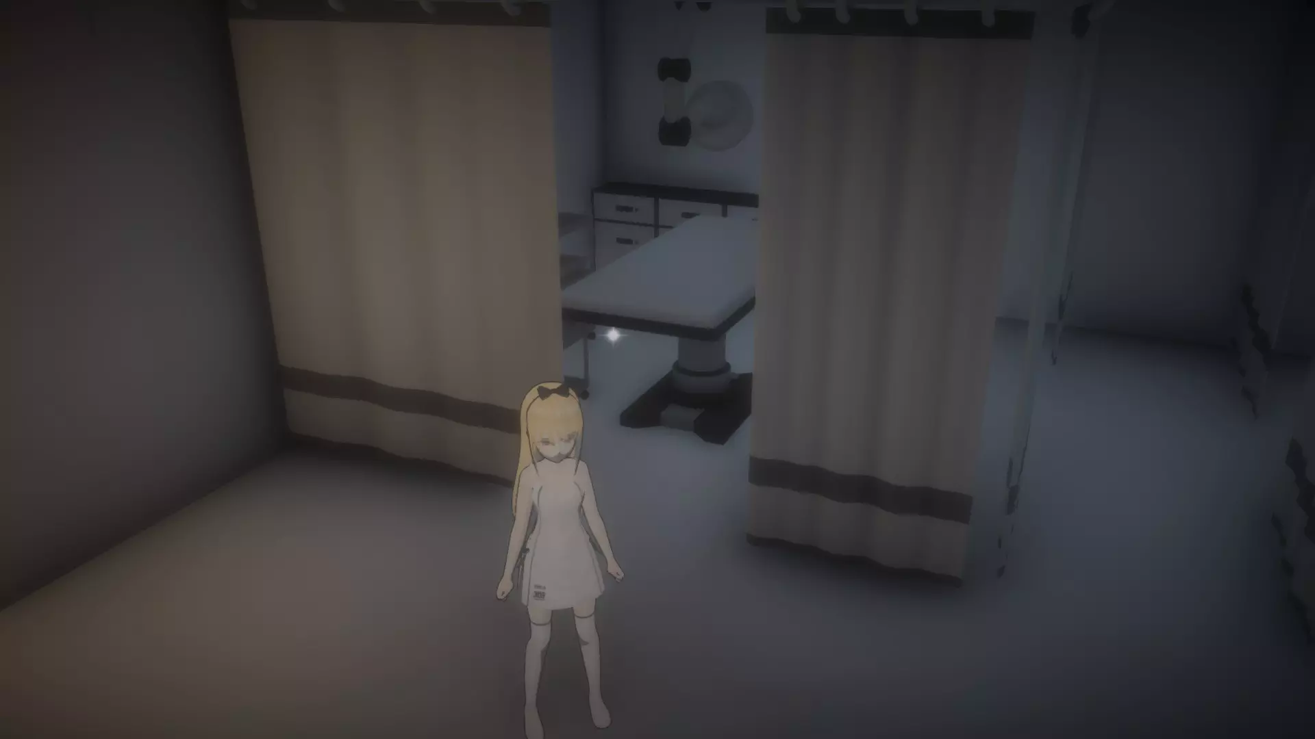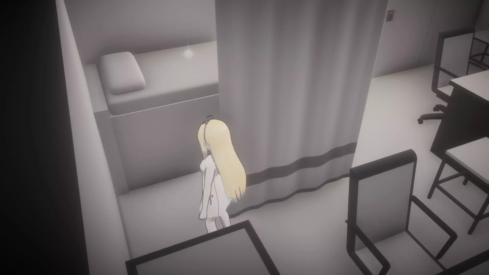使用椅子爬过通风口进入下一个房间(椅子在截图中窗帘后面的左侧)