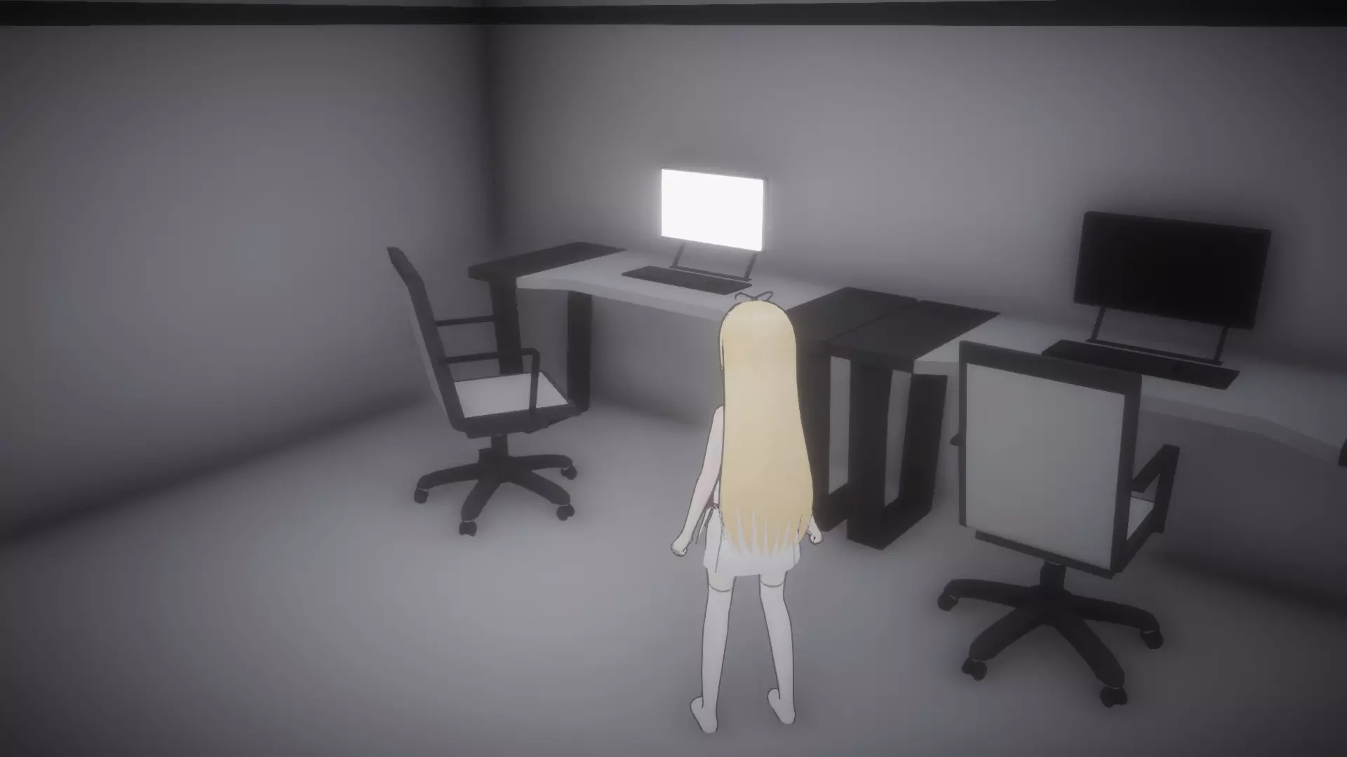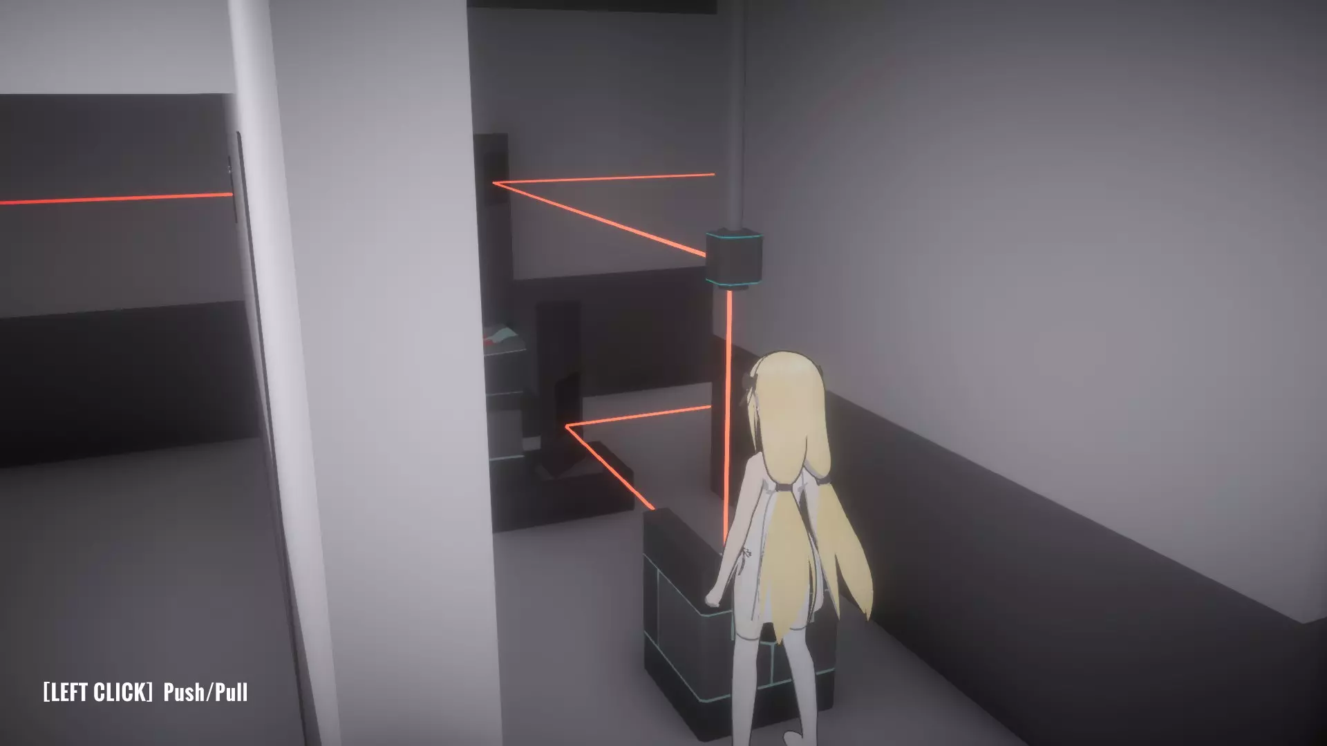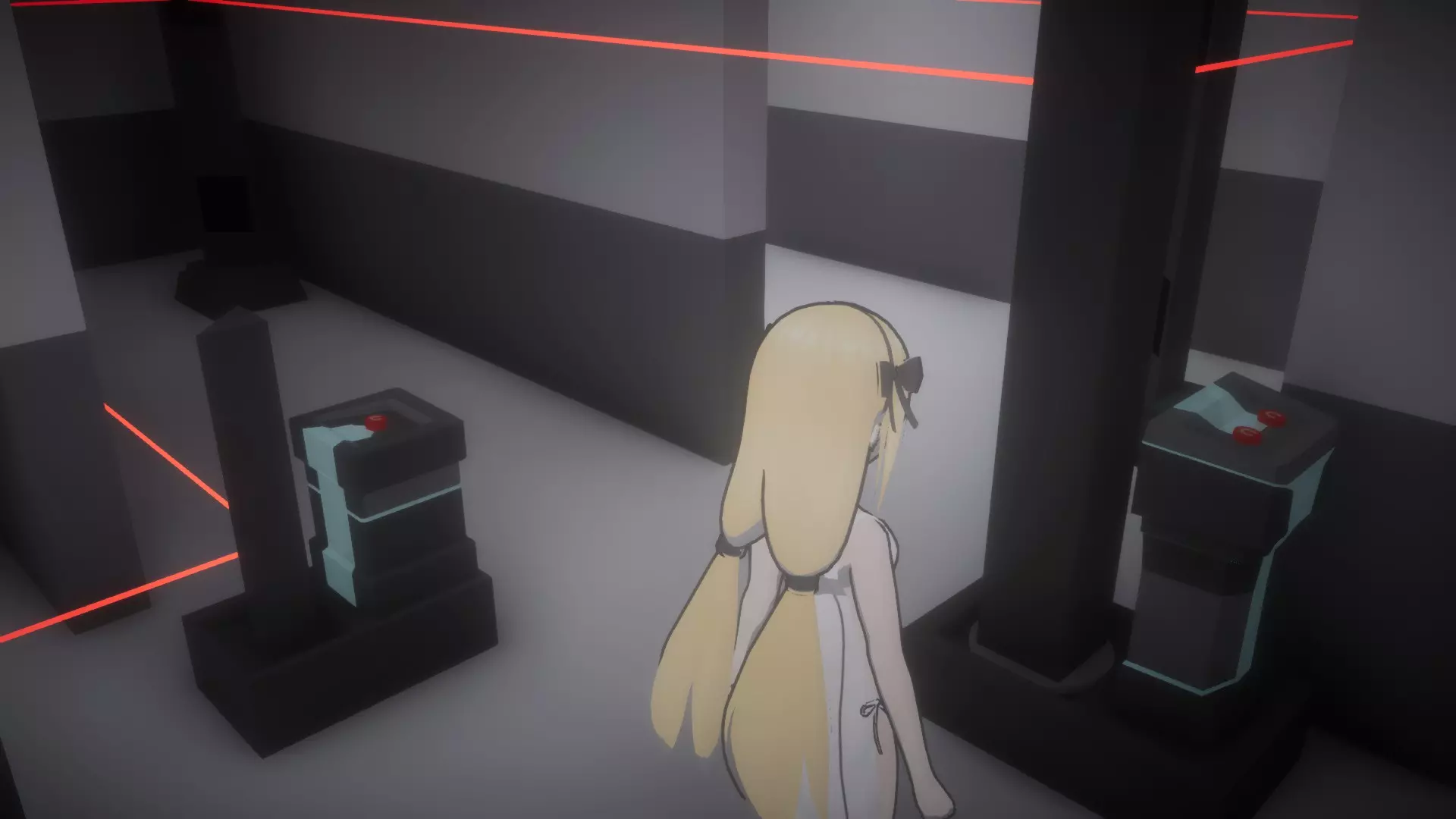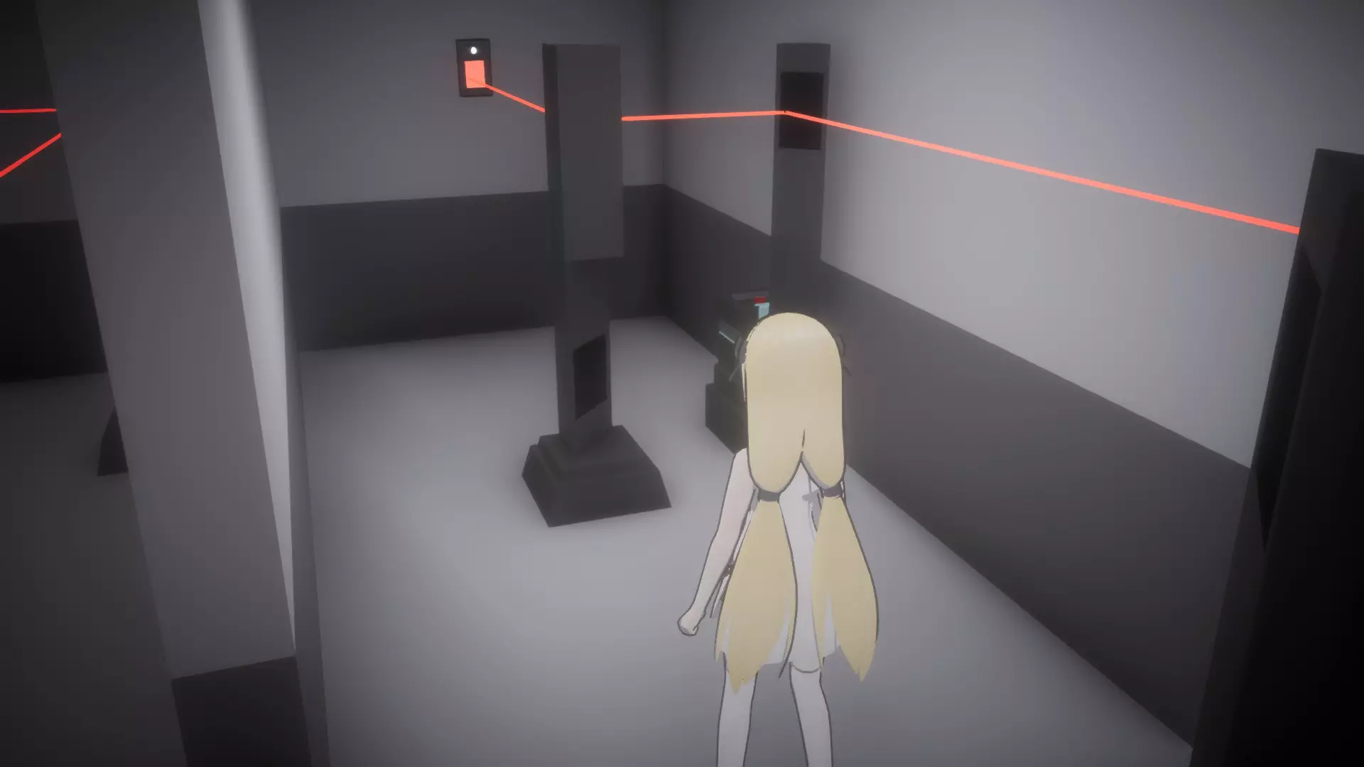 与密室中的电脑互动,输入密码:39785(可通过与同一房间内的书架互动获得)。 从刚刚移动过的其中一个书架旁的角落拿起【受限区域门禁卡2】。离开房间回到走廊(别忘了带上按住按钮的妹妹,因为她可能没有离开简报室的门禁卡),然后向前跑过3号安保摄像头,直到抵达监控室门口。