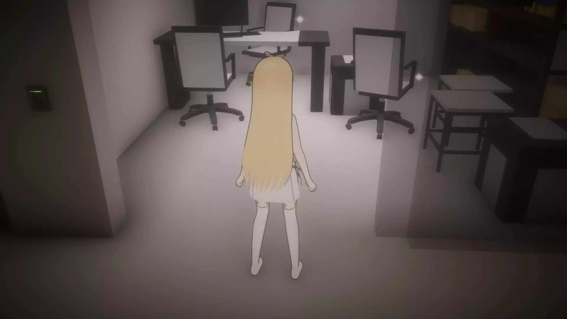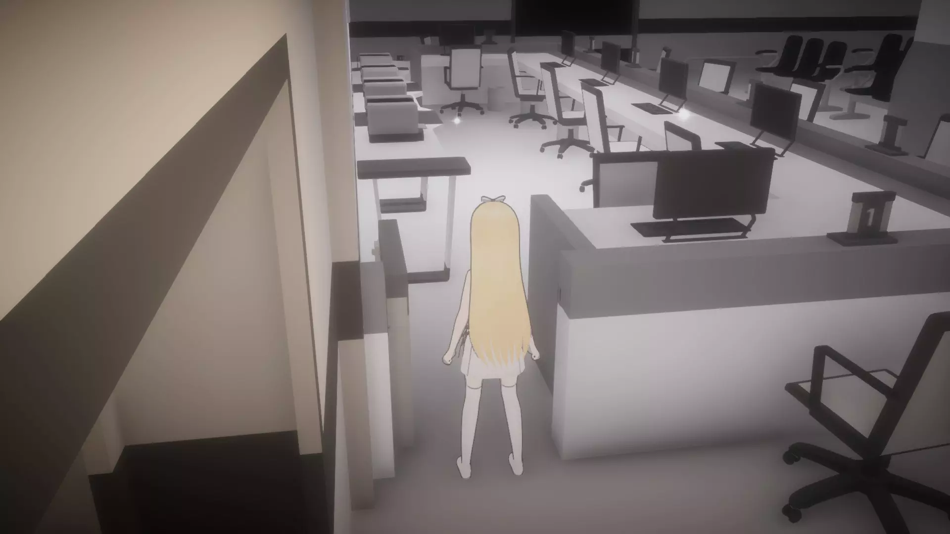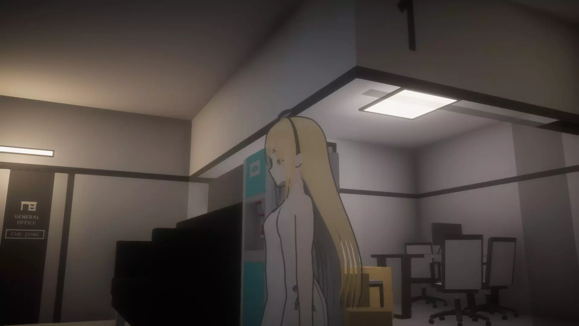 拿起日记后,前往书柜和储物柜(小型C型储物柜)之间的走廊,然后进入唯一亮着灯的办公室(5号办公室)。