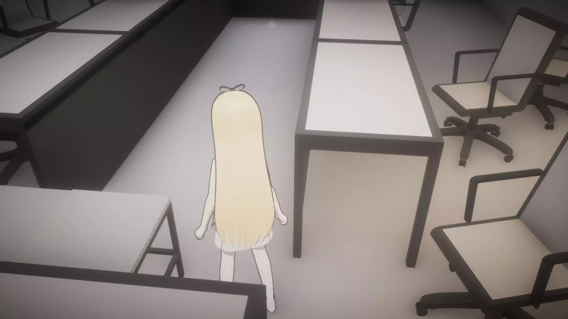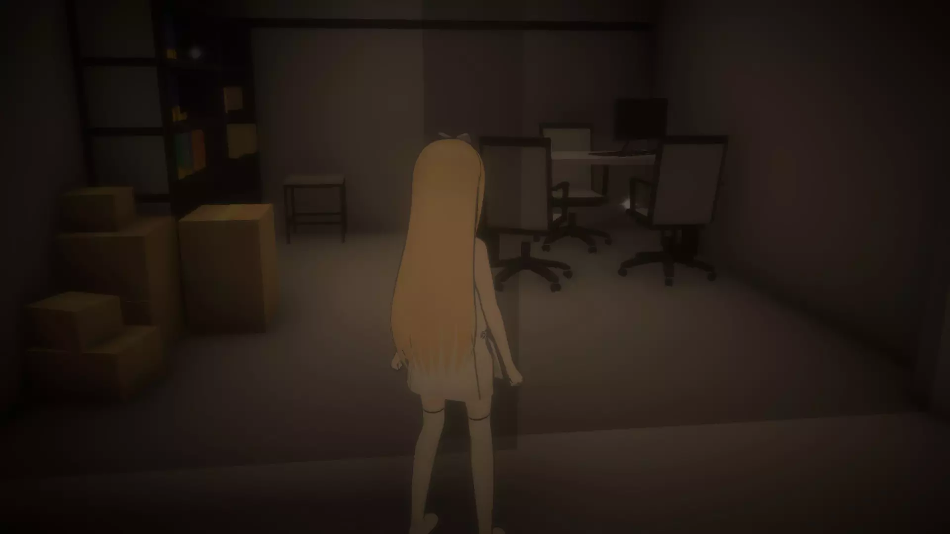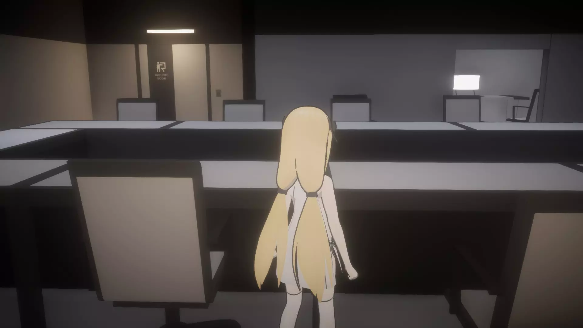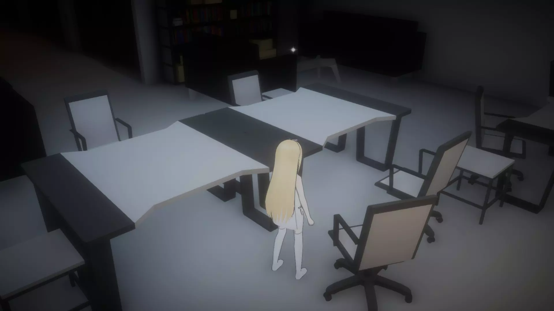 拿起日记后,前往书柜和储物柜(小型C型储物柜)之间的走廊,然后进入唯一亮着灯的办公室(5号办公室)。