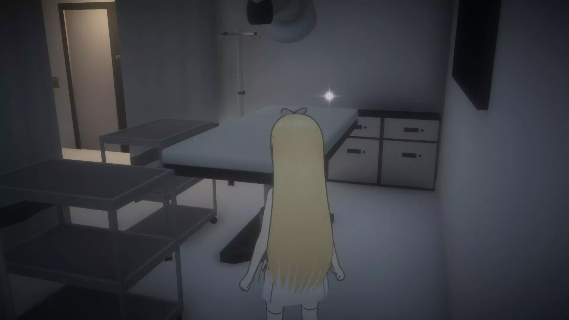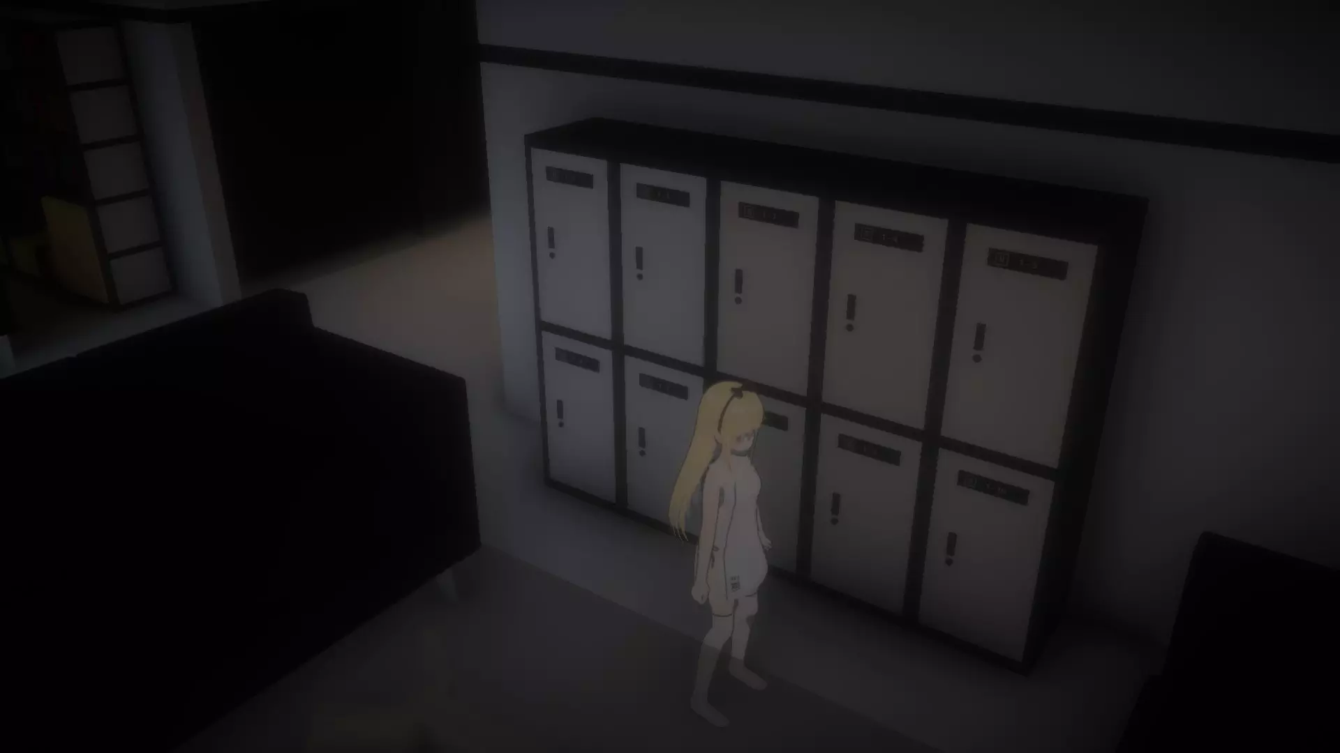 前往你所在房间的左侧,在床旁边的地板上会放着【储物柜钥匙1】,捡起它。
