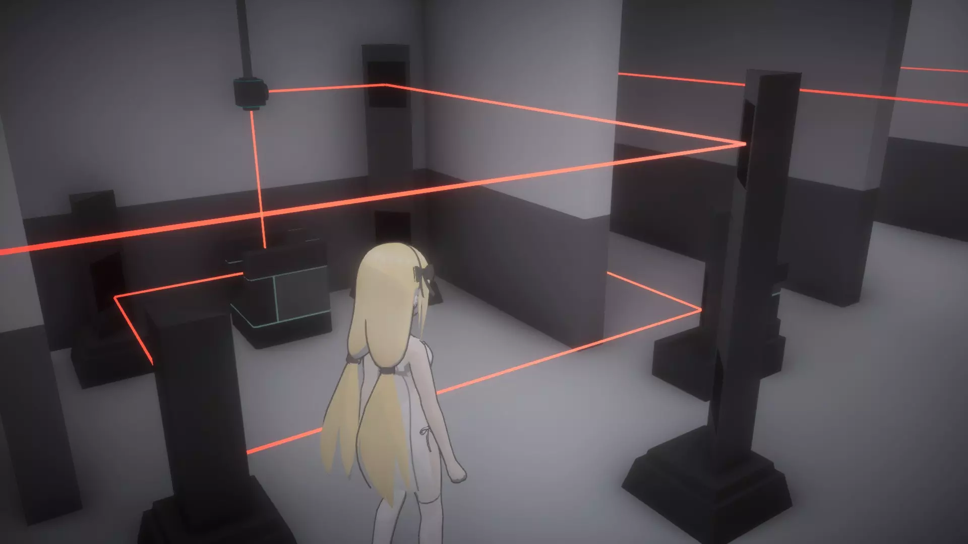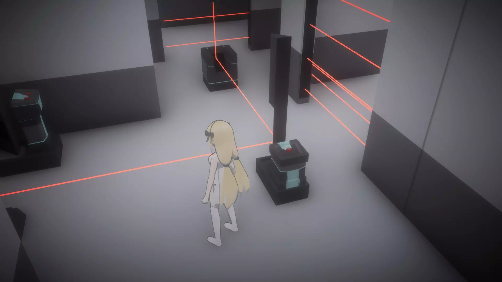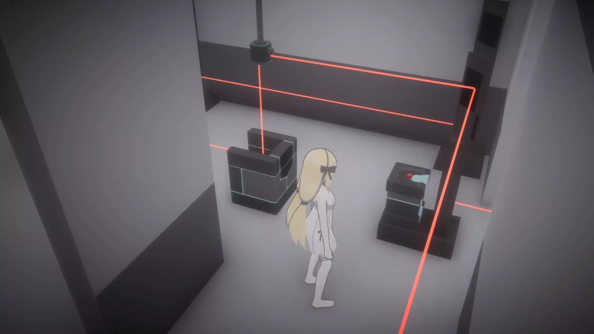 离开房间,前往2号监控摄像头。在经过摄像头之前,你需要进入数据室。注意,数据室的入口处于摄像头的光照范围内。