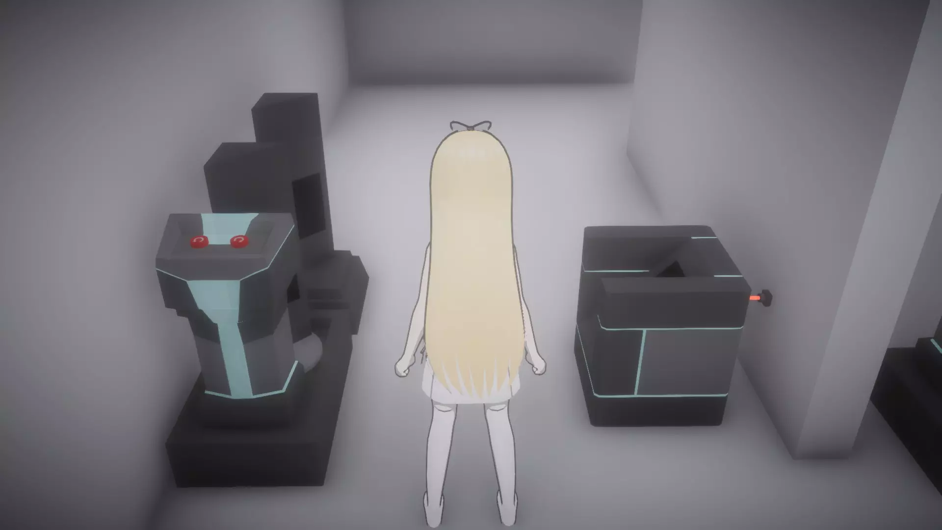 从2号实验室一路回到厕所区域,你需要避开2号巡逻机器人。但在完全通过2号巡逻机器人之前,要进入右侧第一个房间【员工休息室】,并在房间内拾取【日记20(某科学家日记7)】。 机器人需要转身时会向左转,你可以按Q键切换姐妹,通过这种方式避开它。