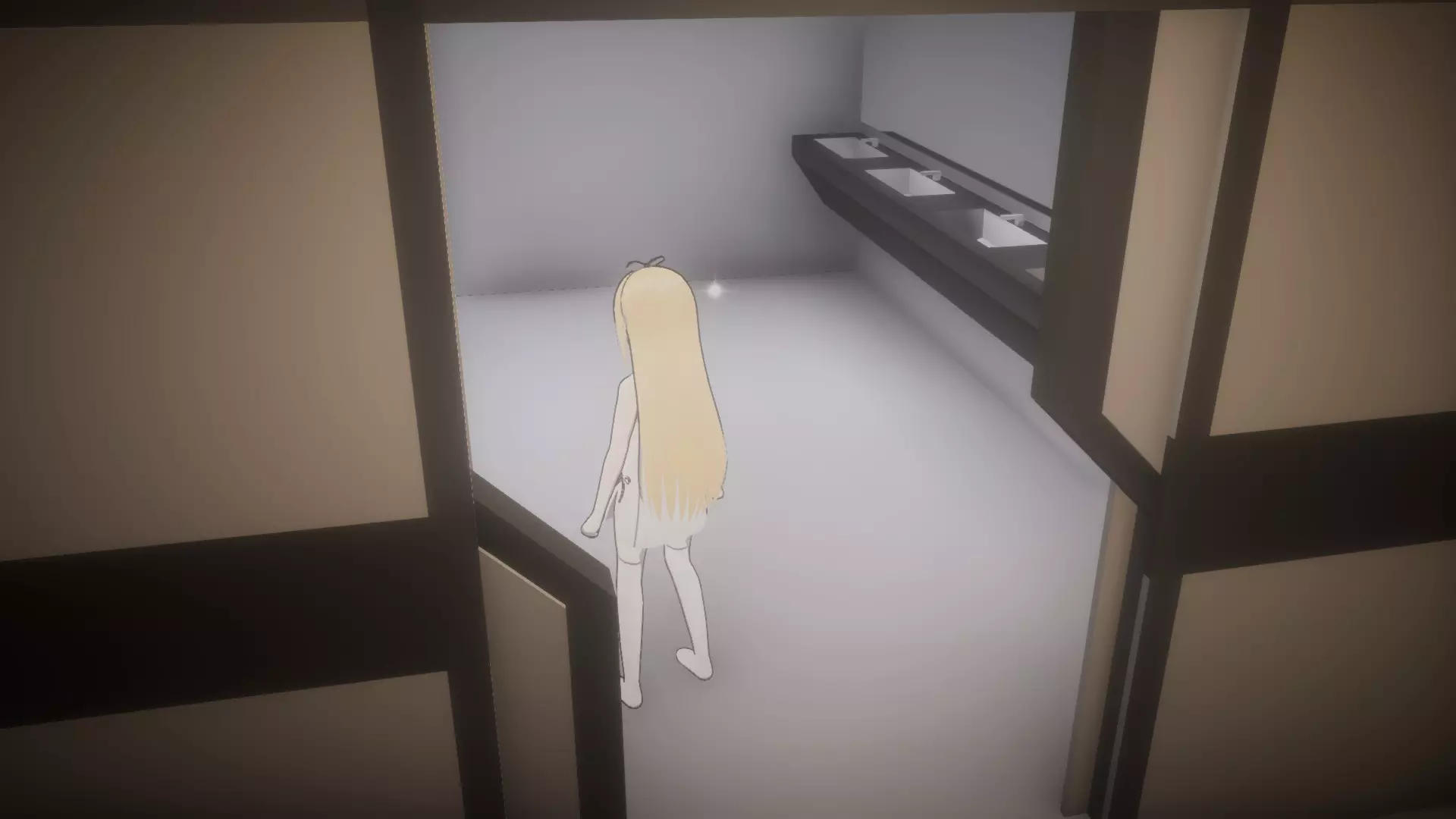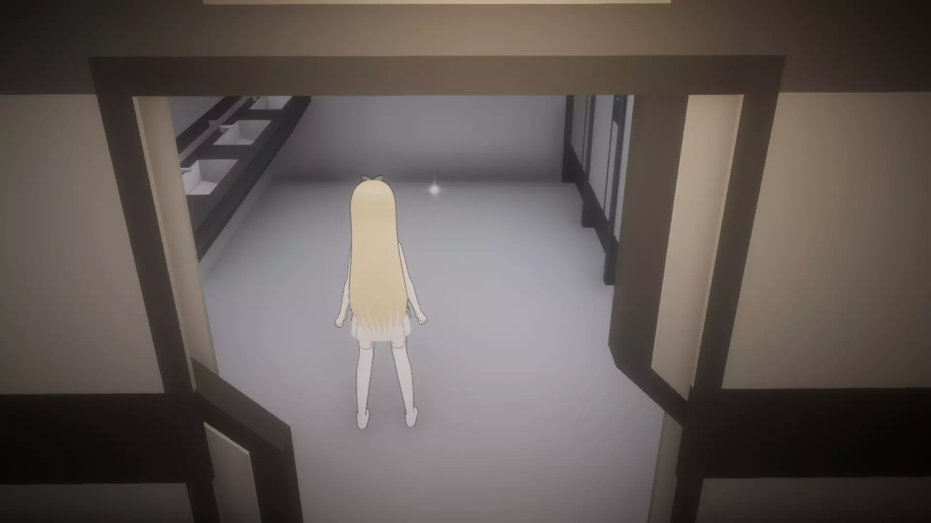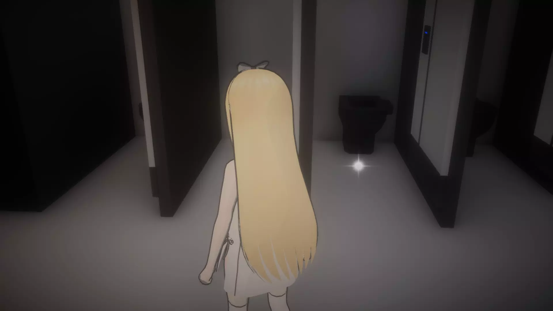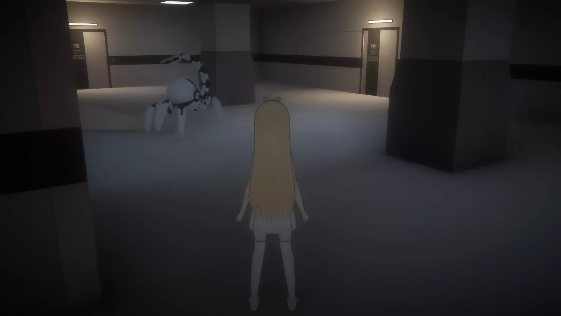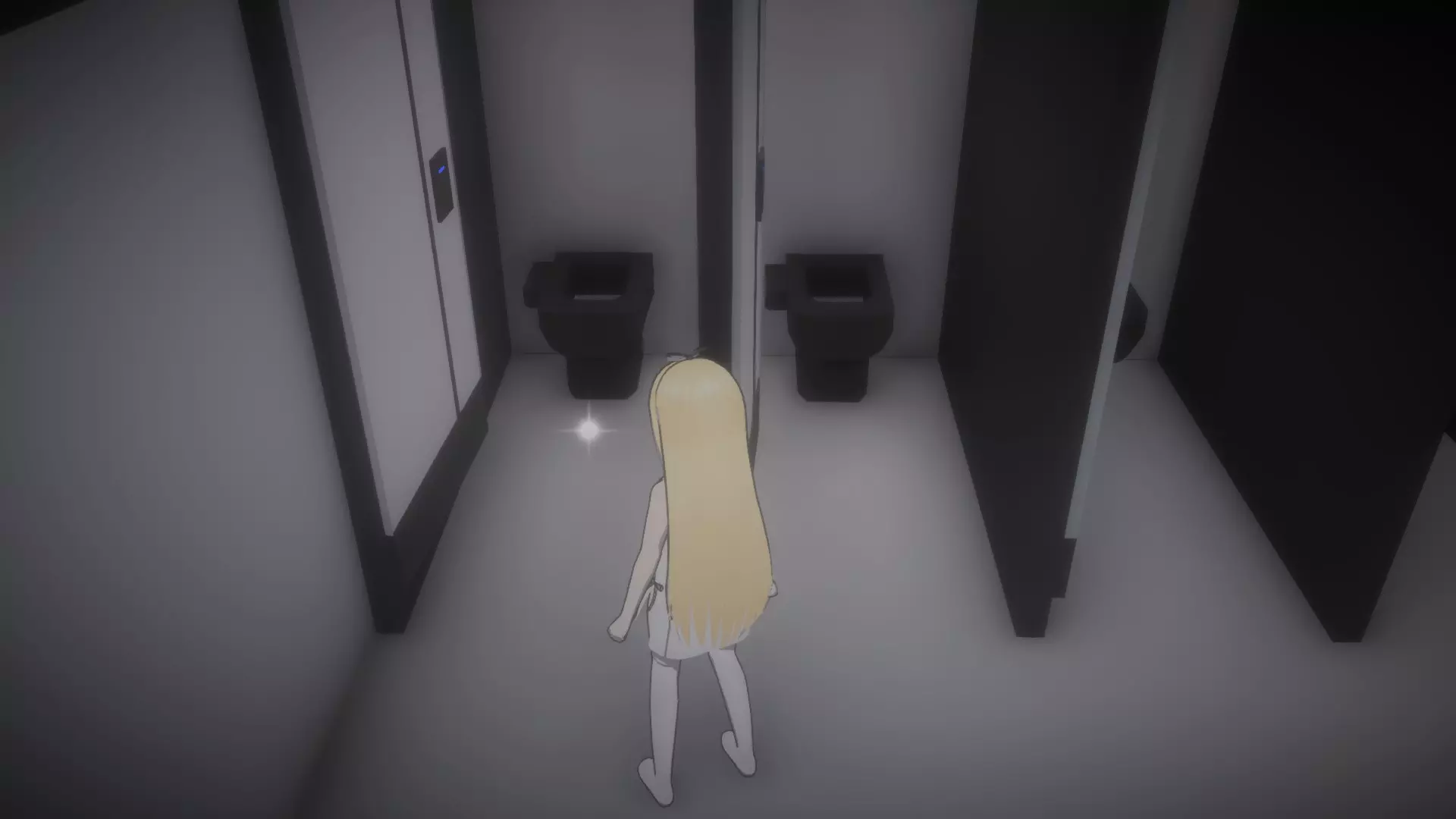 右转通往电梯(关卡出口),左转通往其他区域。目前我们需要前往那里拯救妹妹,所以当巡逻机器人2号走向右侧时,你应向左转并一直前进,直到看到第一道门,那是另一个卫生间。