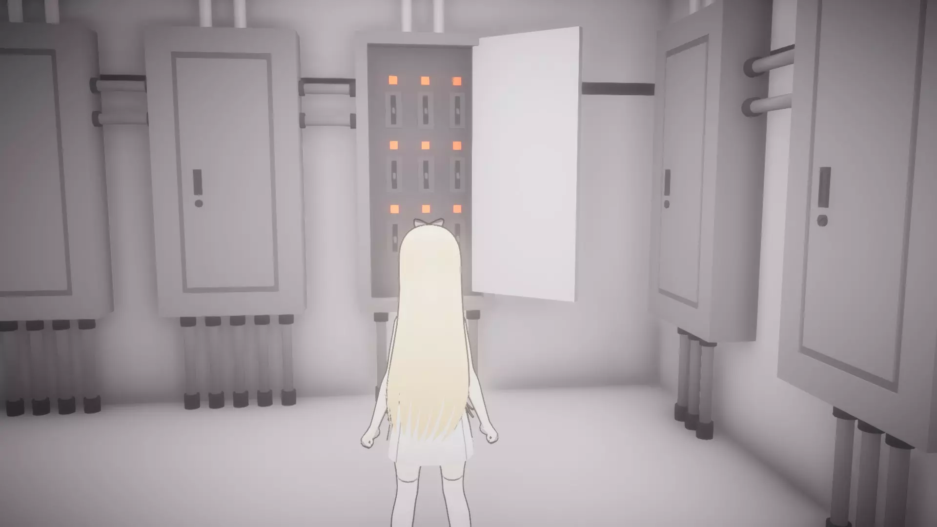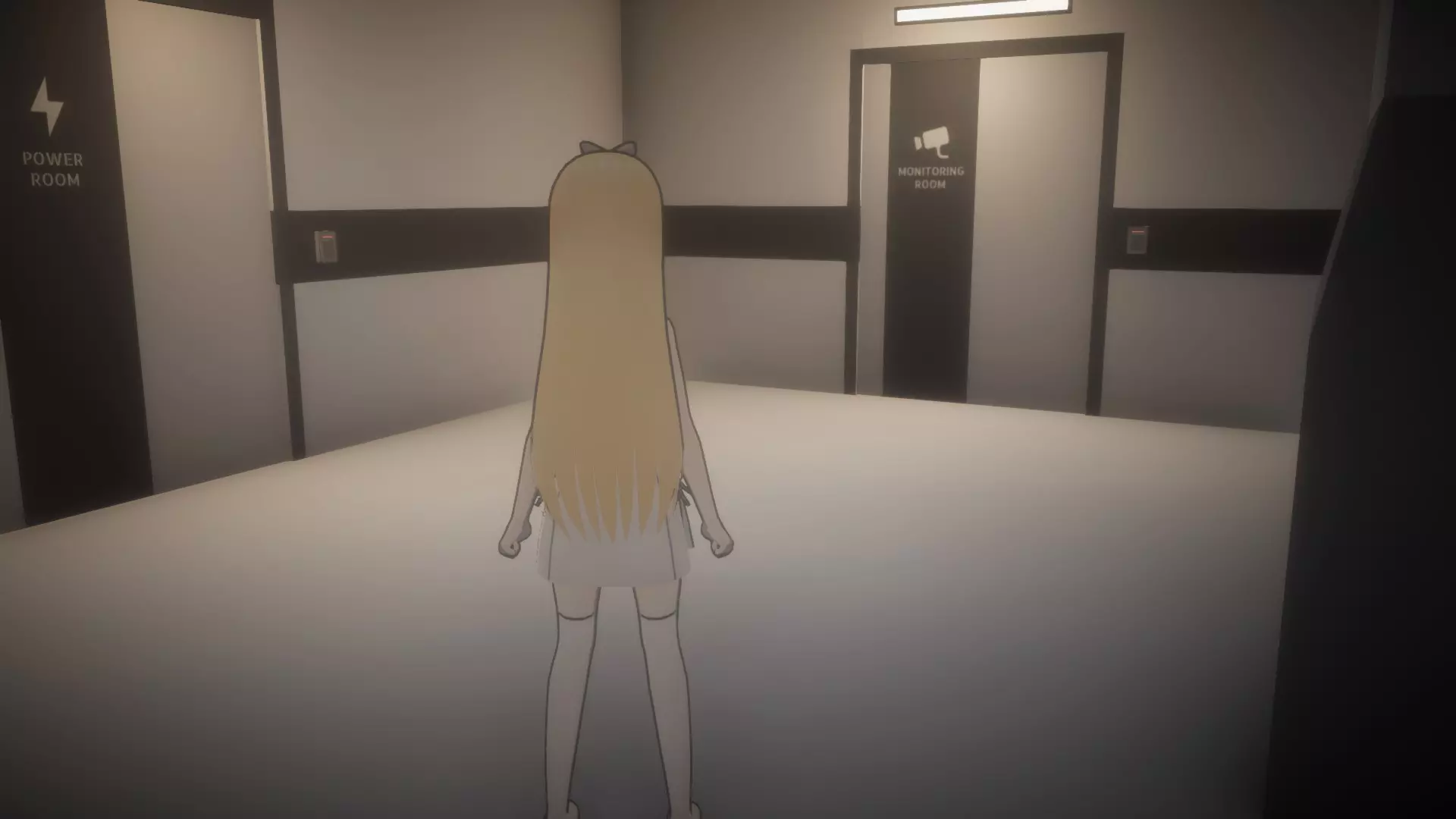 进入房间,与桌上的纸张互动,然后拿起屏幕旁的【未知钥匙】。 前往动力室(位于监控室旁边),打开两个电源防护罩,并将开关设置为与截图中相同的状态。与电源防护罩旁的按钮互动。