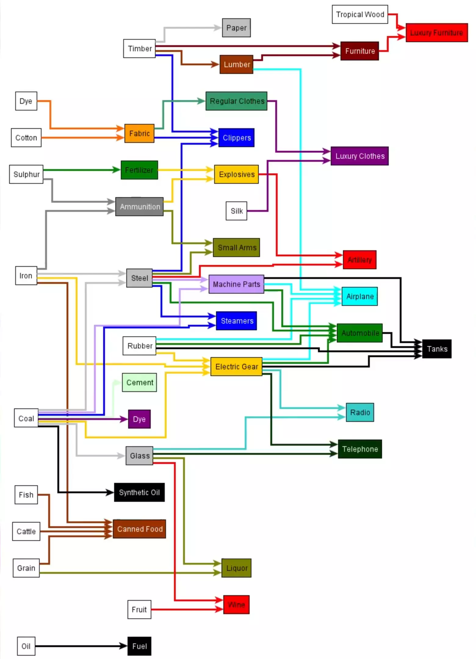 这是一组《维多利亚2》的实用游戏图表,包含工业生产链、科技优先级、人口职业转化、资源分布地图,能帮助玩家理清游戏内工业生产、科技选择、人口发展与资源获取的核心逻辑。