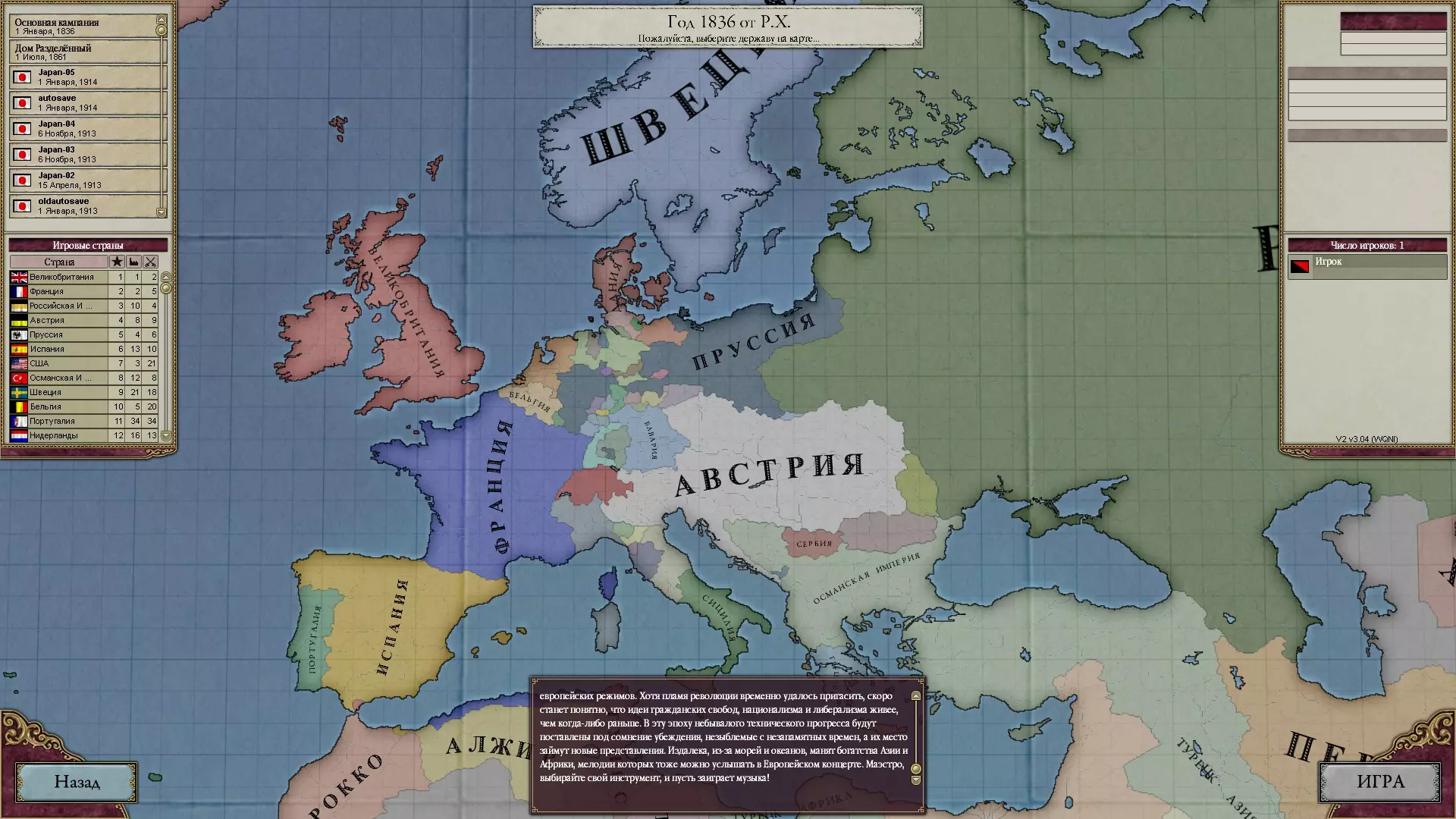 《维多利亚2》俄语本地化补丁+适用于3.02、3.03、3.04版本的全部DLC 注意! 为确保正常运行,需要安装全部DLC,若缺少DLC,启动器和游戏很可能无法运行。 安装步骤: 1. 复制链接到浏览器地址栏,去除链接中的空格,下载并解压文件。 2. 将压缩包中的所有文件夹复制到游戏根目录并替换现有文件。 3. 像往常一样通过Steam启动游戏,加载启动器后,启动游戏即可开始游玩。对于那些因“不明原因”导致《维多利亚2》汉化补丁无法正常运行的玩家,请前往该汉化补丁创作者的官方社区论坛进行咨询。