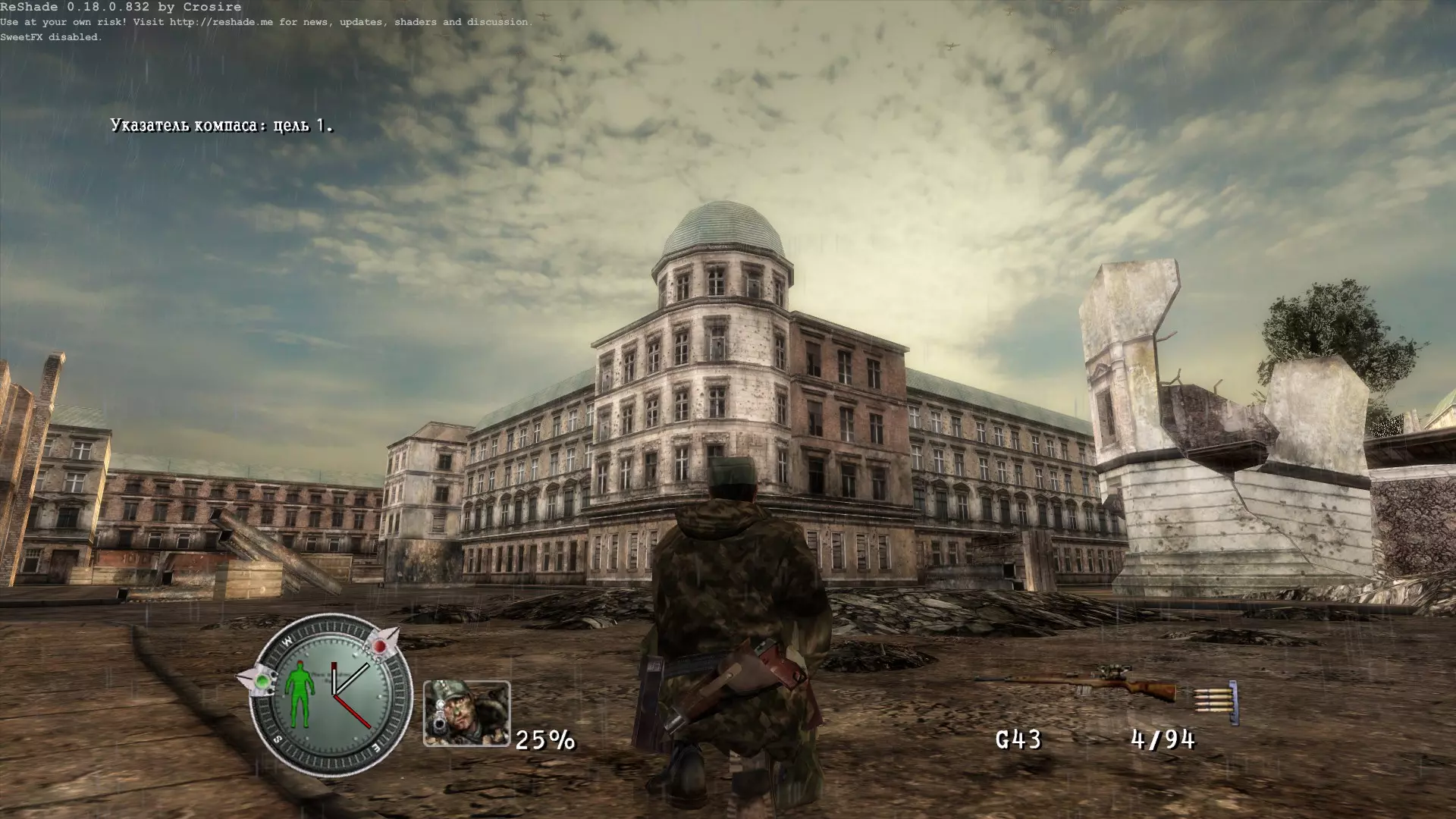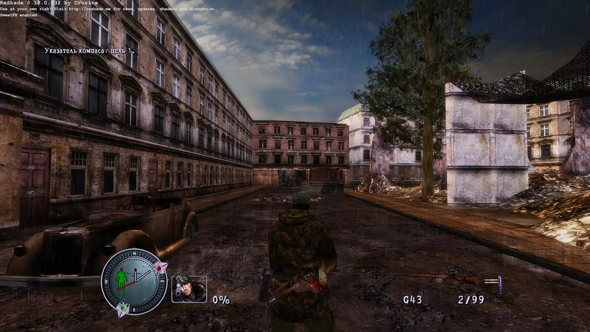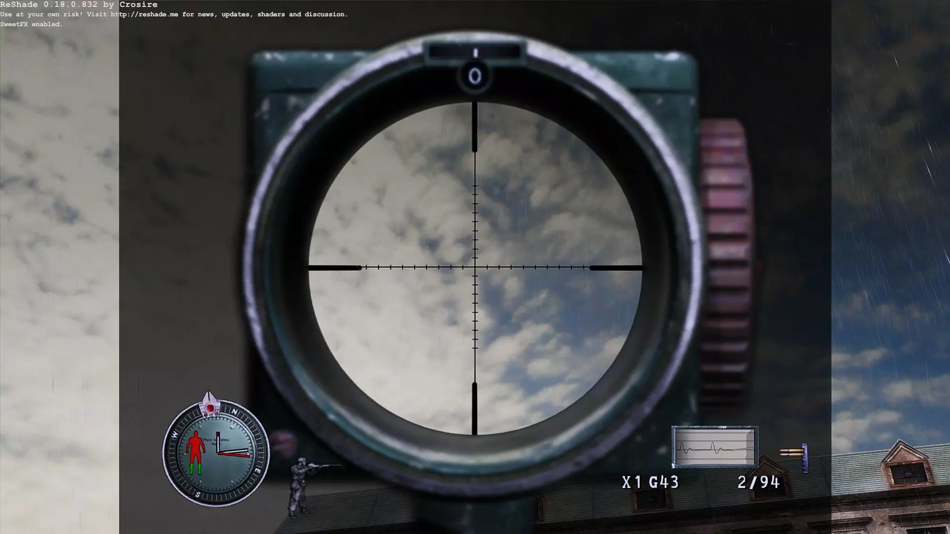 安装: 解压Sniper Elite-SweetFX、宽屏修复、HUD修复压缩包,将SweetFX、宽屏修复、HUD修复文件夹中的内容放入Steam游戏根目录steamapps common Sniper Elite,并同意替换文件。 截图: