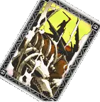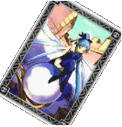 “手持神圣战争权杖的贤者……愿汝之光守护弱者。” 移动力:6 王牌适用范围:全体 类型:主动 条件:无 该卡牌拥有不错的移动力,能抵御所有攻击伤害,包括致命伤害,但不包括某些特定 Boss 的特殊攻击。不确定是否能抵御状态异常。全体王牌卡牌,意味着任何角色都能领导联合。较高的技量值也使携带此卡时战斗开始时的能量条最高可达 90%。当装备有技能时间 2 倍效果道具的角色使用此卡时,会变得异常强大。你也可以在敌人发动卡牌前激活护盾屏障,以节省指令槽;只要护盾处于激活状态,就能阻挡攻击。 女妖之嚎