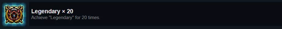 还记得我给过你的获取传说级英雄的提示吗?现在把它再读19遍。这个成就从各方面来说都极其繁琐。首先,同一局比赛中获得两个传说级英雄的可能性不大;其次,你不能随意游玩——需要确保你的某个英雄比平时获得更多击杀。幸运的是,【费林】搭配【格挡者】的组合是达成这一目标的最简单方法。当我决定冲击这个成就时,我正处于第四年中期,已有5个传说级英雄。我连续用【费林】搭配【格挡者】打了15场比赛,并且连续获得了15个传说级英雄。我发誓,我再也不想听到【费林】的枪声了。