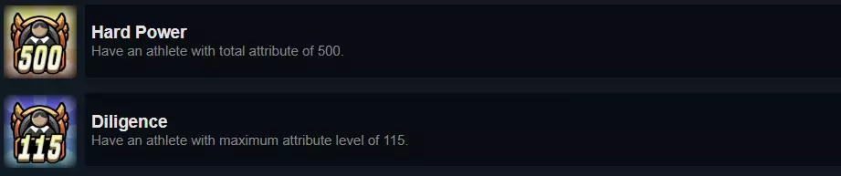 最糟糕的成就。正如我之前提到的,不必急于进入英超联赛或完成其他成就,这是因为有两个成就。这两个成就完全侧重于重复刷取,且耗时不必要,【勤勉】成就需要7至9个赛季,更不用说其中的阻碍了。 让我们先了解问题所在:我们有5项属性,每项属性的上限为115,这意味着理论上的总上限为575。然而,尽管游戏中没有说明,但【Hard Power】成就实际上是总评的上限:500。换句话说,每项属性平均需要达到100。作为参考,如果你想让一项属性达到115,那么其他4项属性的平均值需要达到96。现在换个角度思考:你希望某个属性比其他4个属性的平均值高出约20点。看看你的运动员,这是否可能?答案是肯定的!但接下来的问题是:属性越高,升级所需的经验值就越多。想象一下,要把一个属性从114级升到115级——简直像永恒一样漫长,而其他属性却一点都升不了!这还是假设你通过赢得奖牌来提升运动员等级、进行训练赛的情况…… 如果你从一开始就着重培养某个属性,在达到500总评上限之前升到115级就不会有问题。但如果你意识到这一点时为时已晚,你的所有运动员可能都已经无法达到目标了,而且祝你能找到一个能达到目标的市场运动员,更别提培养他们所需要的时间了!另一个小贴士是在区块训练部分:一旦你的运动员等级达到105级以上,升级速度开始变慢时,让所有运动员帮助正在刻苦训练的那一位。这会让事情变得更容易,但仍然需要很长时间。 总结 我们到此结束!希望本指南在你解锁这些成就的旅程中已经或将要发挥作用!