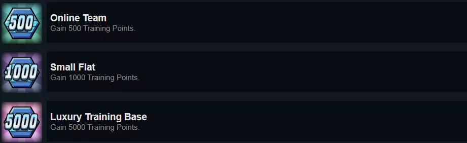 与粉丝数类似,你可以通过多种方式获得训练点,但训练点的用途更广。顾名思义,这些点数用于训练你的选手: 提升属性 学习新英雄 精通英雄 进行训练赛 不过我们更关心如何获取训练点。完成采访和月度目标可以获得一些训练点,但最高效且实用的方法是通过直播进行集中训练。选手的粉丝数越多,获得的训练点就越多。我建议只在训练点不足时进行直播,这样可以最大限度地利用训练点,更快地强化你的选手。运动员专属 以下是所有与运动员相关的成就,其中不包括两个较为复杂的成就,我将在最后介绍它们。 对于这些成就,你无需执行过于具体的操作,大多数成就的含义不言自明。不过,和往常一样,我会多介绍一些关于这些成就的内容,以及如何加快解锁它们的进度。