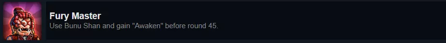 布努·珊拥有与觉醒相关的被动技能。她初始拥有70层【宁静】,每经过一个回合或场上友方进行攻击时,层数就会减少。尽管成就要求觉醒必须在第45回合前触发,但如果你在第45回合期间触发,仍会被算作完成(此规则同样适用于其他类似成就)。 不出所料,【费琳】+【格挡者】将再次成为你完成此成就的首选搭档。毕竟,费琳的战术本质上就是通过范围攻击消灭敌人。考虑到在第45回合时,你应该还剩45层【宁静】,届时只需让费琳攻击25次即可。任何使用过【费琳】+【格挡者】组合的玩家都知道这有多么容易。如果你想创造纪录,布努·山的精通能让【宁静训练(1)】卡牌每次使用最多移除4层叠加效果,从而加快进程。