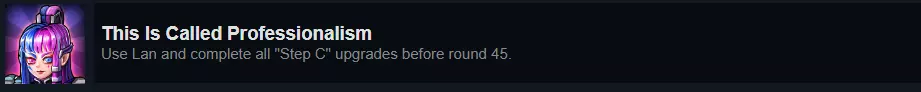 这个成就,当你明白要做什么时,你会想:“哇,这根本不可能!”但当你尝试后,会发现其实没那么难。 简单来说,兰的技能围绕着她的阶段卡牌展开,顺序为A、B、C。你需要在第45回合结束前完成这个循环3次,就能解锁该成就。最大的挑战在于完成阶段B,不过我们可以逐步分析: 阶段A(2)要求你选择一个目标。我的建议是挑选下路的一个弱势敌人,并让你的下路搭配两个更具进攻性的英雄。 阶段B(5)是在阶段A后的下一回合开始时出现在你手牌中的一个“发起”卡牌。你需要使用这个“发起”卡牌击杀之前选择的目标。如果成功,你将获得下一阶段的卡牌。如果没有,步骤A将可用,但会在弃牌堆中。注意,目标必须被【新手】击杀,但岚不一定是亲自击杀者。 步骤C(0费)允许你从3个奖励中选择一个来强化岚。它还会在弃牌堆中生成一张步骤A。 此外还有【重启】(0费)卡牌,其作用基本上是将当前的步骤卡牌拉入手牌。 因此,在几个回合内,你需要击杀3个敌人并获取3个奖励。但关键在于卡牌文本:下一张步骤卡牌会自动出现在下一个回合开始时。换句话说,不要在回合之间浪费所有的法力值,尤其是从步骤A到步骤B的过程中,因为你希望尽可能快速地推进流程。言简意赅,我发现的稳定战术是在下路使用费林加阻挡者组合,中路使用兰,瞄准对方较弱的下路对手。你大概能想象到结果如何。再次强调,探测攻击加肾上腺素会帮你省去很多麻烦。