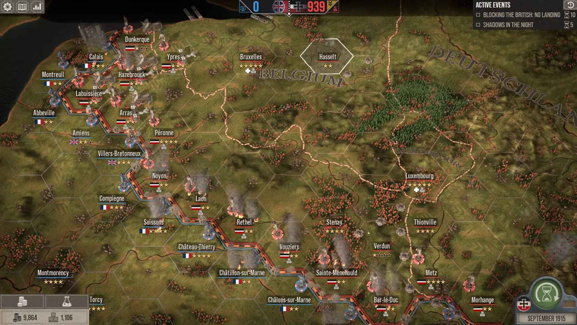 几乎所有单位都有用。飞机可以执行侦察、空战和轰炸任务。坦克能为你的进攻增添威力。攻城炮则能摧毁敌方战壕等目标。 既然没有真正“无用”的单位,比起告诉你该买什么,我更想建议你**何时购买**。 核心要点是**尽量减少购买**,不要不必要地过度购买单位。大部分战斗将由免费的步兵和常规炮兵完成。 你不需要在前线的每个区域都部署飞机和坦克。只在真正需要的时候购买你认为必需的单位,同时保持充足的现金储备,用于补充伤亡和购买补给。 例如,一个看起来不太可能遭到攻击的区域(附近没有敌方集结),就不需要建造补给站。不计划发动进攻的区域无需配备攻城炮。 当你购买额外部队时,应主要将其部署在计划发起进攻的区域。发动进攻时,要考虑所需兵力。如果你计划在即将到来的战斗中只进行几次空中侦察,就不需要多支空中部队。 记住,如果你所有的步兵都已阵亡且没有资金补充,那么新的强力飞行单位也毫无用处。 最后提供一些具体数值作为大致参考(具体取决于你的战略情况):建议保持约2000金币和1000补给的储备。如果战斗失利、需要紧急购买部队,或是突然需要为一场异常艰难的战斗向某个区域输送补给,这些资源应该足以补充伤亡。不过,如果战役进展非常顺利且敌方国民意志低下,你完全可以将资源储备降至这些数字以下。 如何快速赢得战役 赢得战役的终极最快总体策略是什么? 1) 你永远不需要花费或购买补给。如果部署了足够的军团,它们会提供充足的免费补给点,无需动用全球储备池。此外,你在战斗中获得的勋章实际上会奖励你补给,某些次要目标也会提供补给。以我的经验,补给会不断自动增加,最终会有大量盈余。2) 对于全球资源池中的所有过剩补给,你可以用它们来自动解决战斗。 3) 务必完成额外目标以获取奖励物品。 4) 不要被自动解决战斗的预测结果吓倒。许多甚至被预测为“重大损失”的战斗,若手动操作都能轻松获胜。 5) 进攻,持续进攻。每个回合,在你的游戏难度和操作舒适度允许的情况下,进攻两到四个区域,每次都取得彻底胜利,然后占领它们。 6) 持续将过剩补给用于自动解决边境的小规模进攻。这些进攻的目的不是夺取土地,而是削弱国家意志。如果预测结果是小胜或更好,那么这些进攻总是值得进行的。在快速胜利模式中,即便预测结果为僵局,也应自动解决这些战斗。 7) 持续保持压力,让敌人每回合都承受数千金币的伤亡损失。尽可能包围敌人(例如,作为同盟国时,包围凡尔登就非常容易)。 8) 通过这种方式,你可以在1915年底前以900以上的国家意志获胜。