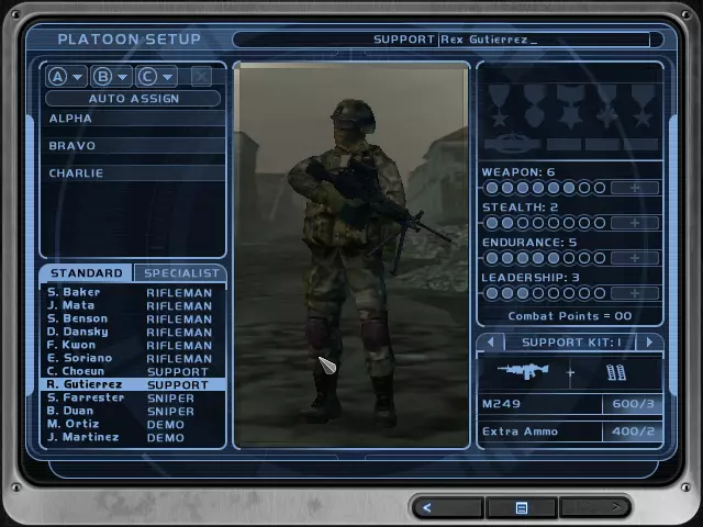 4. 这将在第一个任务中为你的每位幽灵小队成员增加10点战斗点数。 5. 保存文件并启动游戏。 6. 创建新战役。 结果: