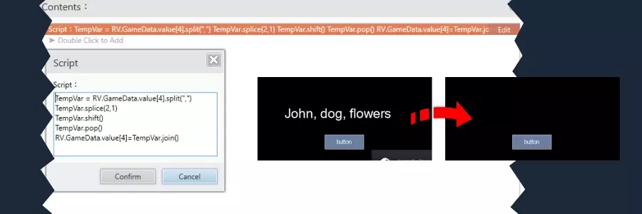 字符串变量中数组的这种处理方式,乍一看可能有些复杂,但对于更高级地使用引擎、在章节中或通过自定义用户界面实现更复杂的交互,以及减少常规变量数量而言,是一个非常实用的选项。不过,我们也可以利用内置商店提供的强大模组来完成一些任务,无需通过脚本把事情变得如此复杂。