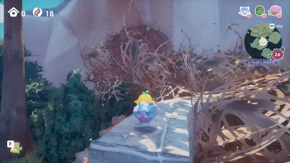 地图右侧被两层荆棘覆盖。移除第一层荆棘至少需要一位伙伴将金鱼草从鸢尾花中发射出去;而第二层荆棘则需要两位伙伴和鸢尾花,或者尝试借助百合花从地图顶部部分移除荆棘。