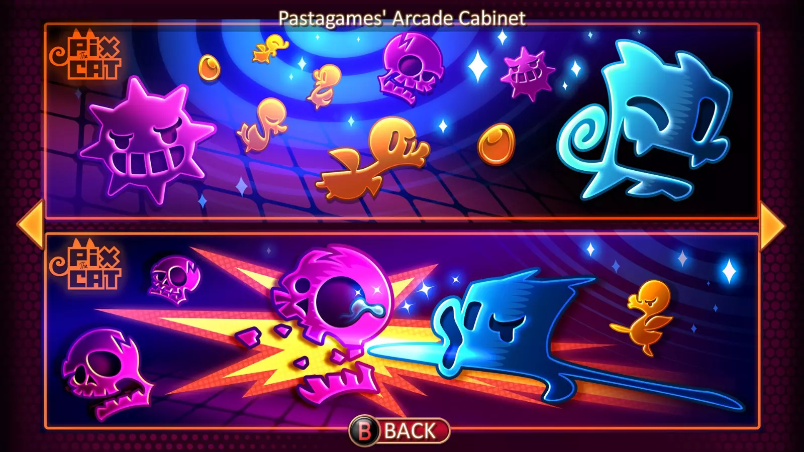 游戏视频 《Pix the Cat》PC版发售预告片 《Pix the Cat》PC版预告预告片 《Pix the Cat》PC版多人模式预告片 《Pix the Cat》PS4、PS Vita版 teaser 街机入门模式世界纪录=110万分(由FAST N BULBOUS创造) 街机主模式世界纪录=240万分(由FAST N BULBOUS创造) 街机每日模式良好通关记录(2015年2月11日至PS4平台,由FAST N BULBOUS创造) 制作人员 Pasta Games