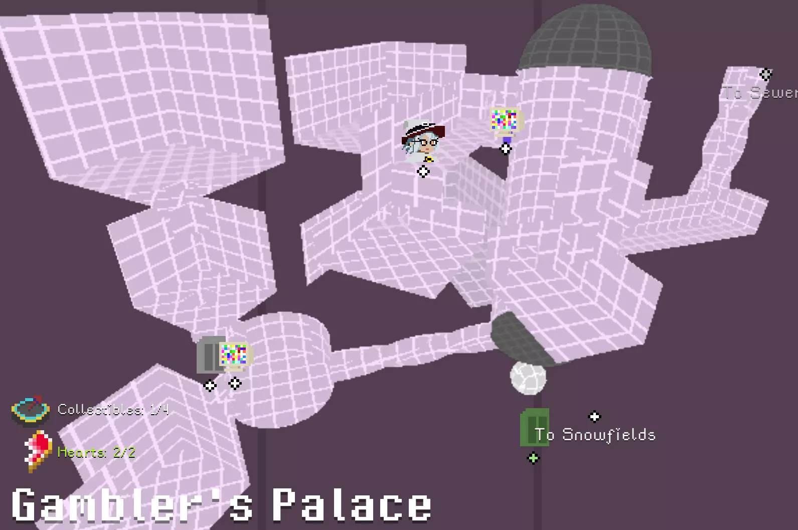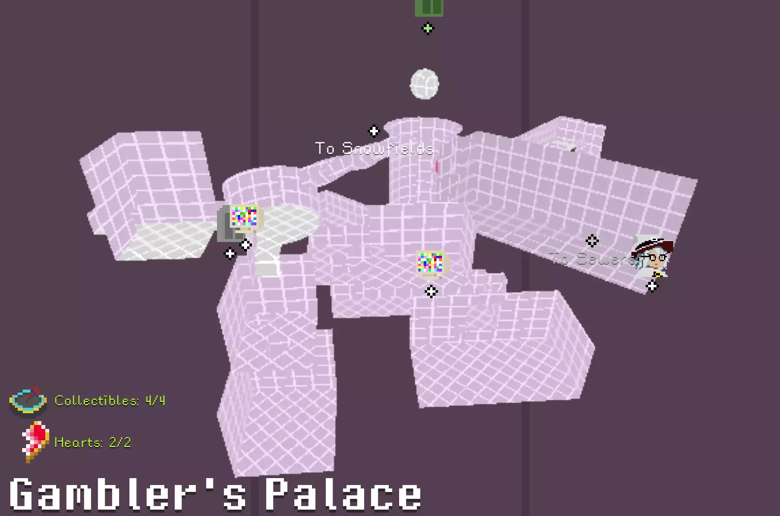 毛线球 在谜题房间中,解开后在白色栅栏内获得。 谜题提示:首先将球带到尽头天花板的球筐内;之后将所有可连接的点(足球、塔尖、铃铛、机关点)与电池连接成一个回路