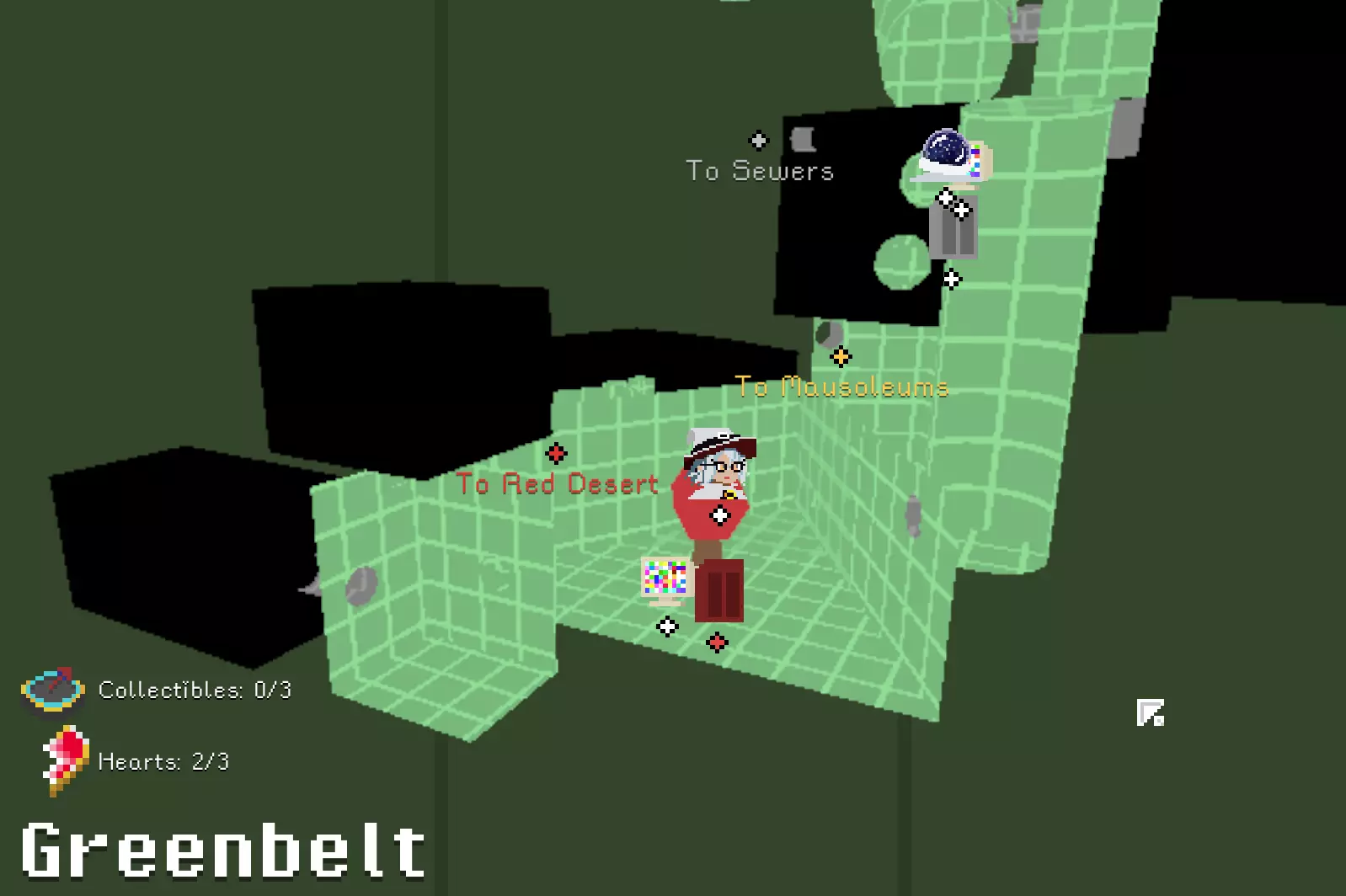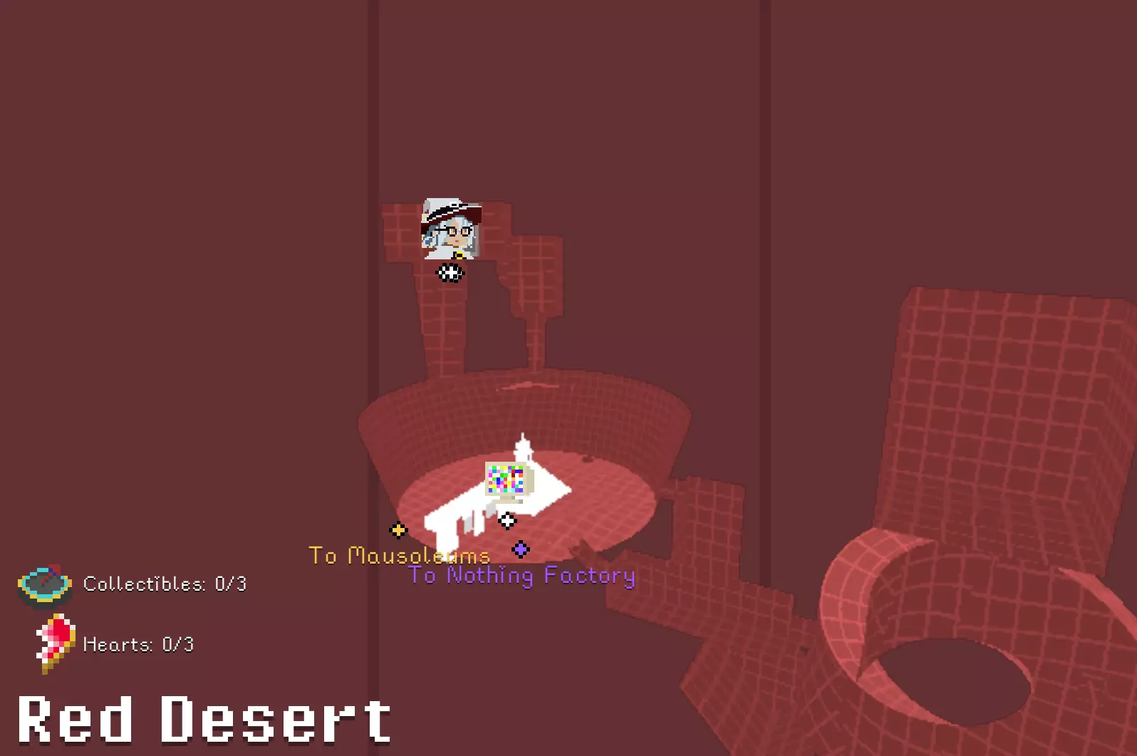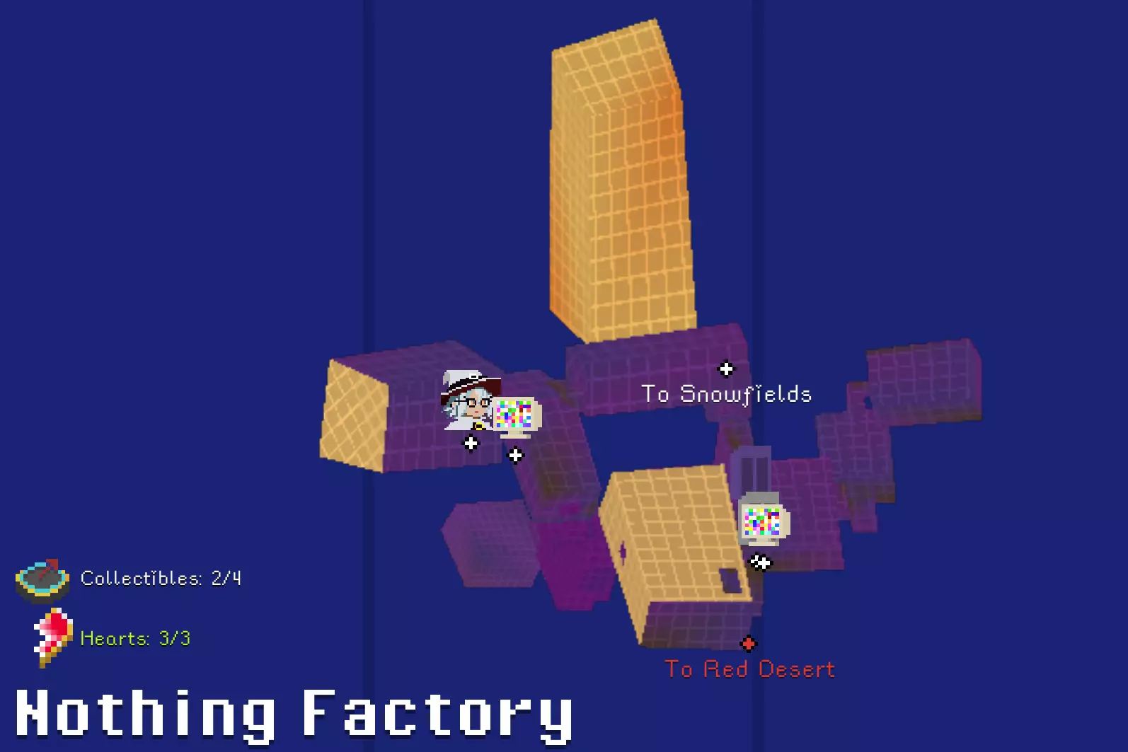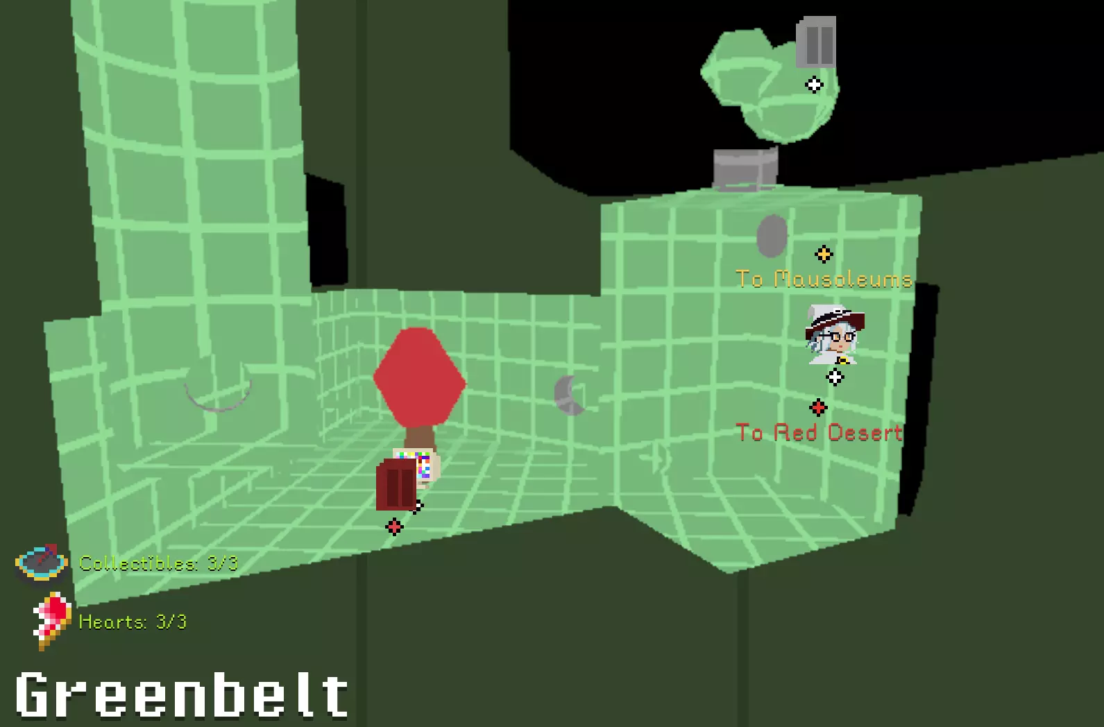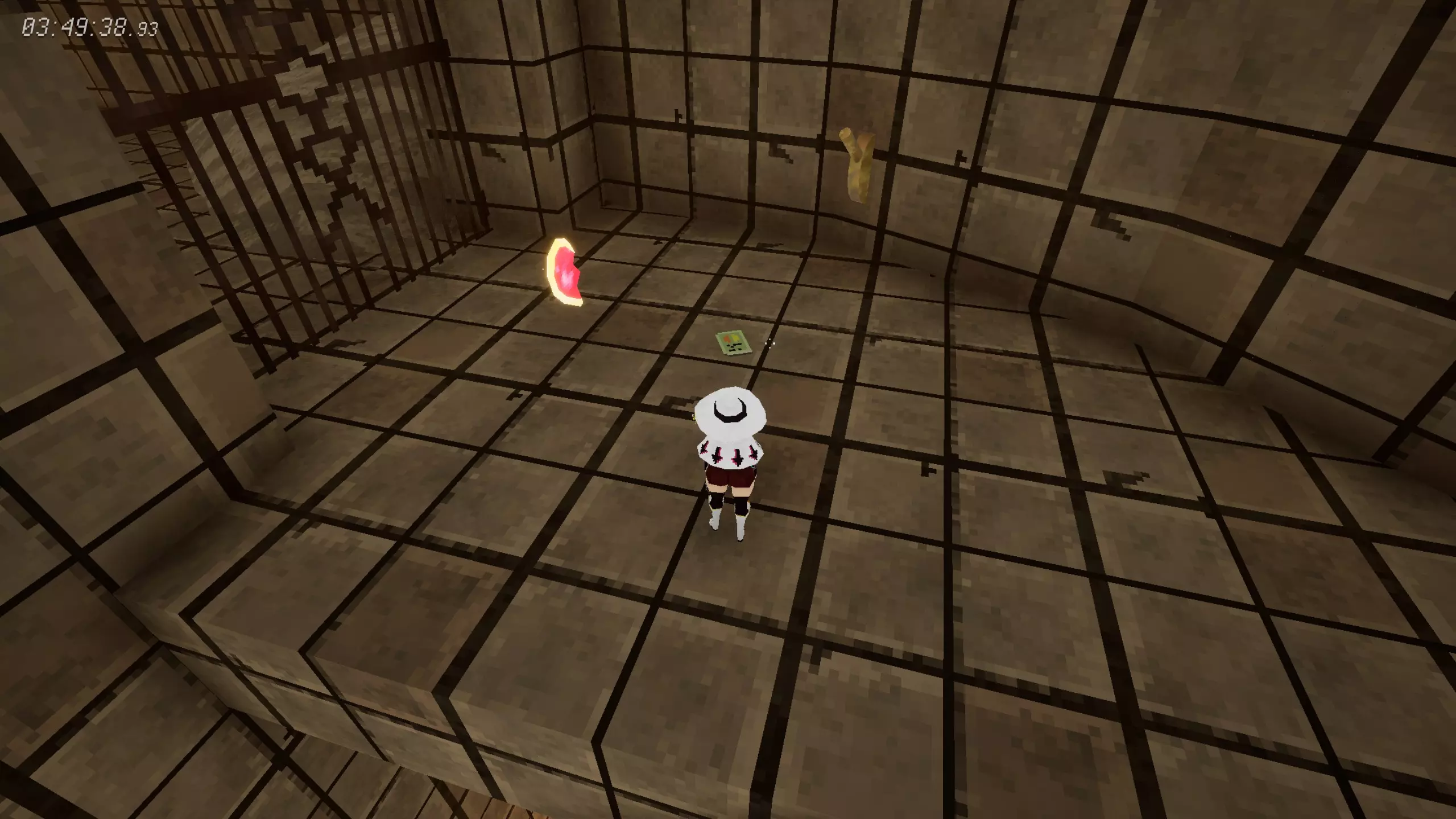 锤子和凿子 需要从红色沙漠一侧进入。 在谜题房间中,解开后在棕色栅栏内获得。 谜题提示:不摔落拉动三个拉杆。1.白色塔底;2.远处绿格子背后;3.蹦床起跳,切换方块时进入中央空心格子内