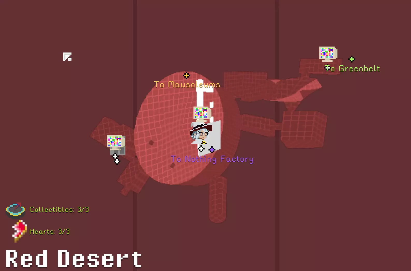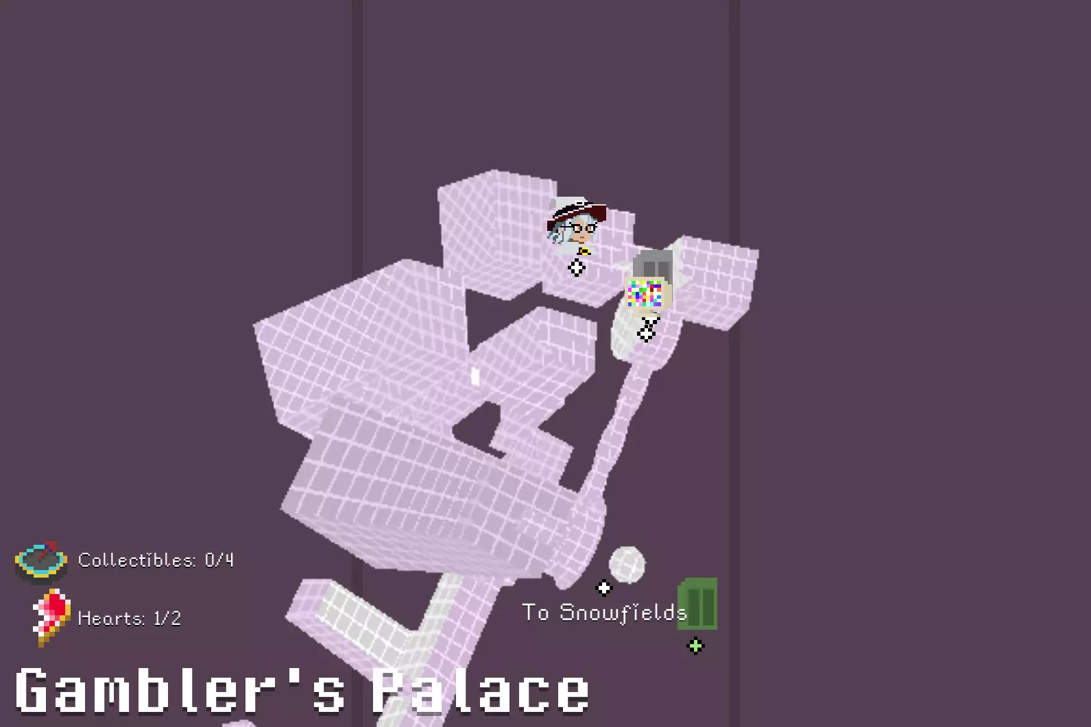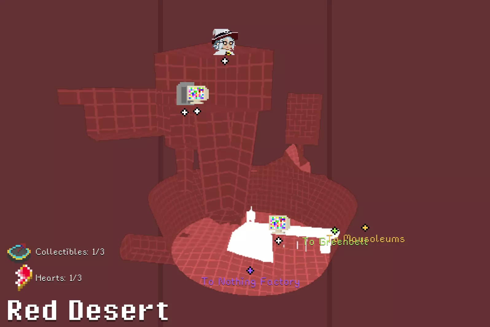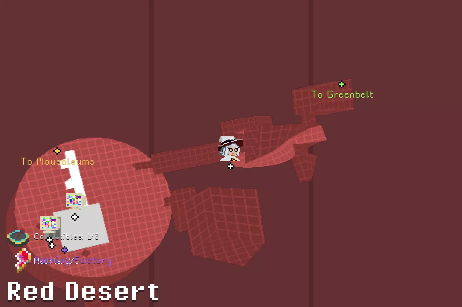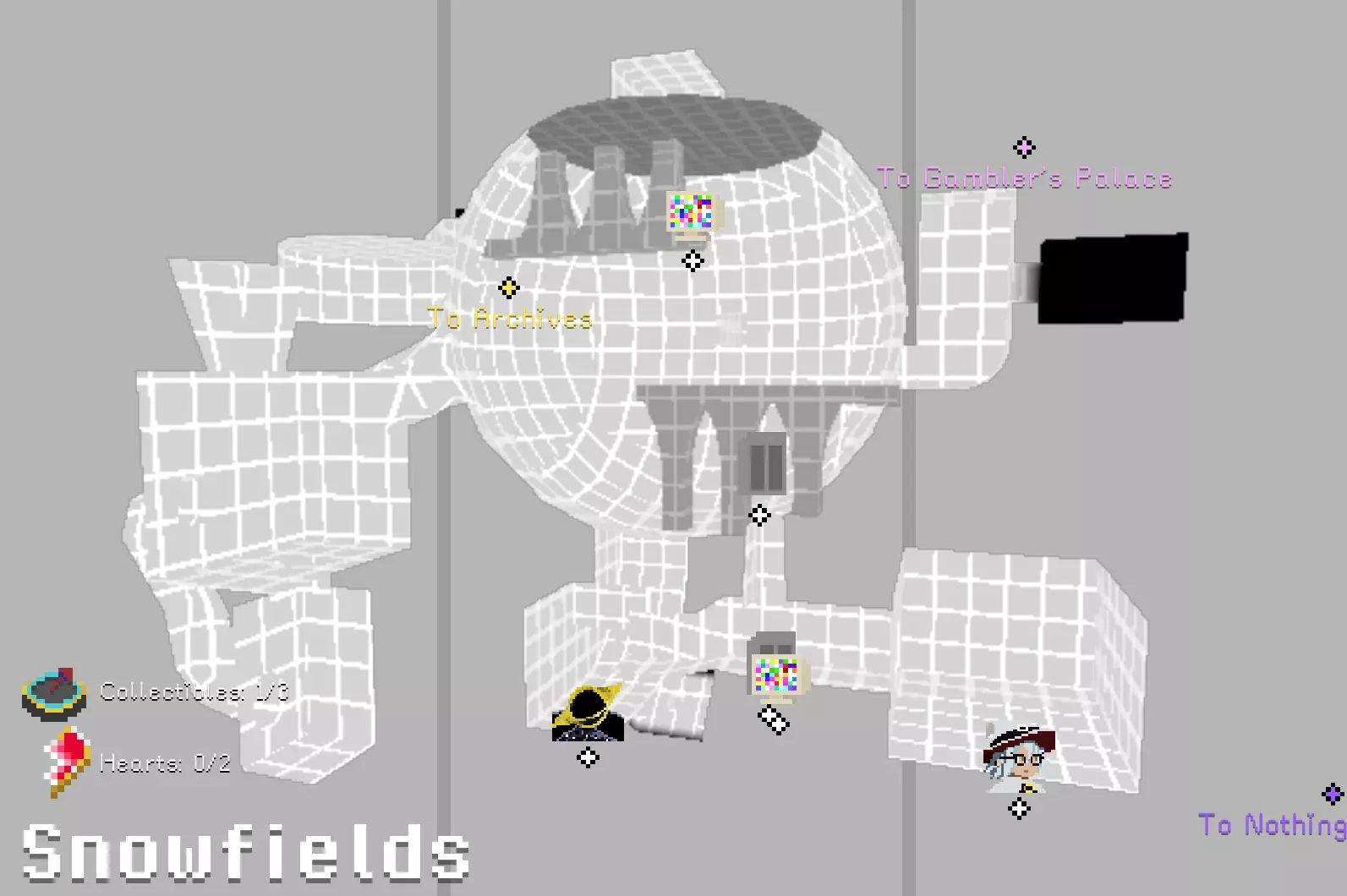 锤子和凿子 需要从红色沙漠一侧进入。 在谜题房间中,解开后在棕色栅栏内获得。 谜题提示:不摔落拉动三个拉杆。1.白色塔底;2.远处绿格子背后;3.蹦床起跳,切换方块时进入中央空心格子内