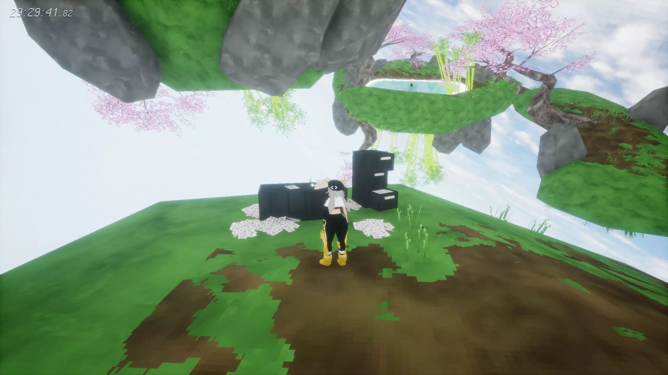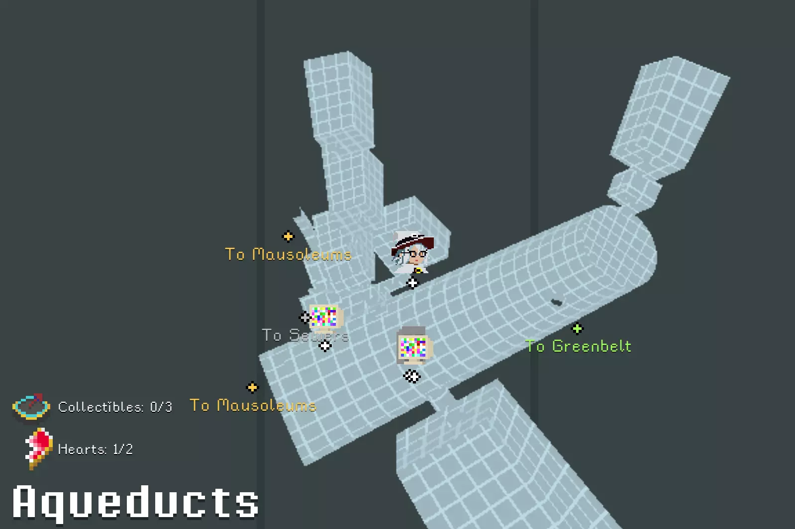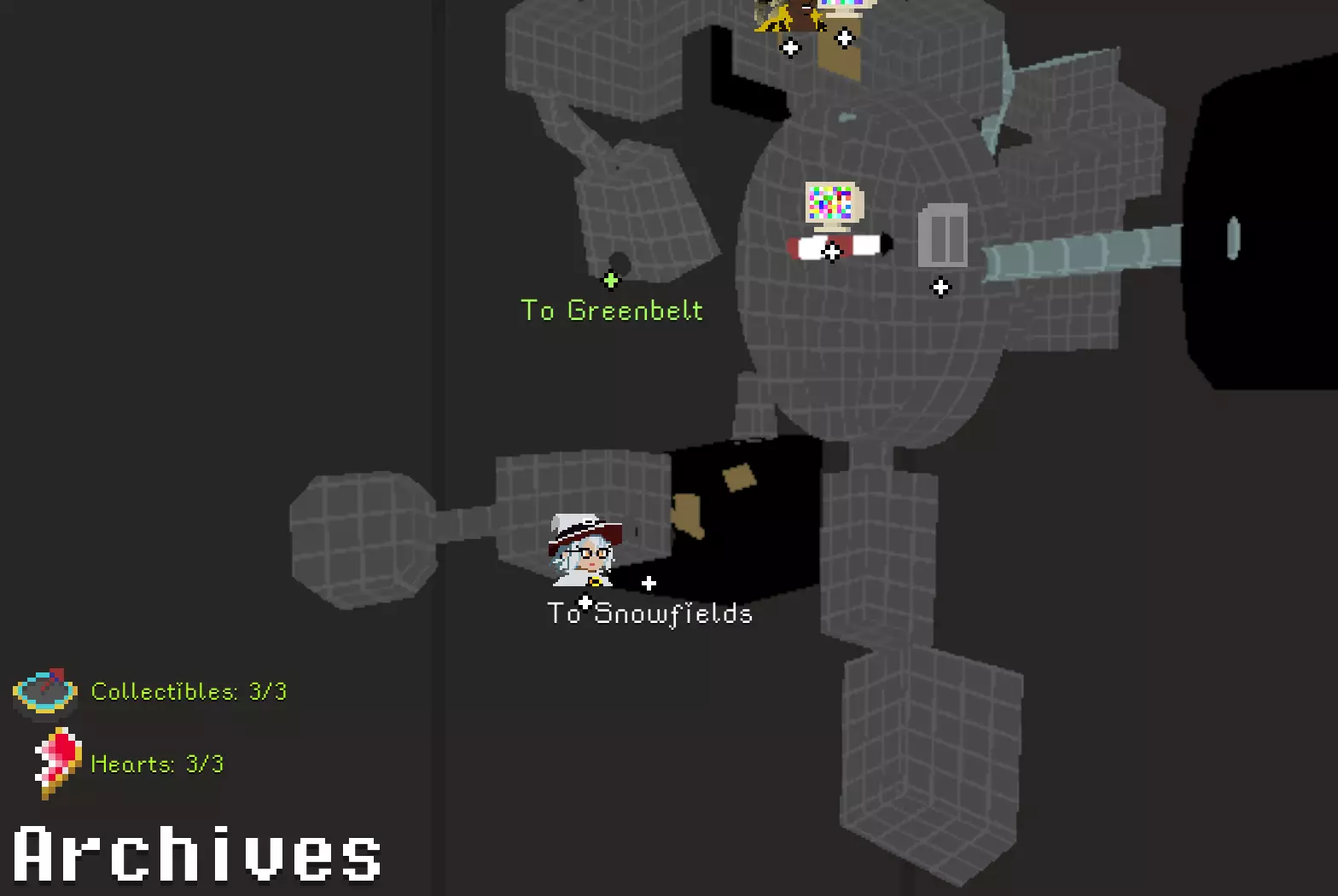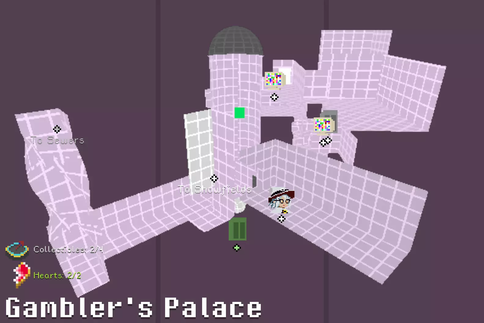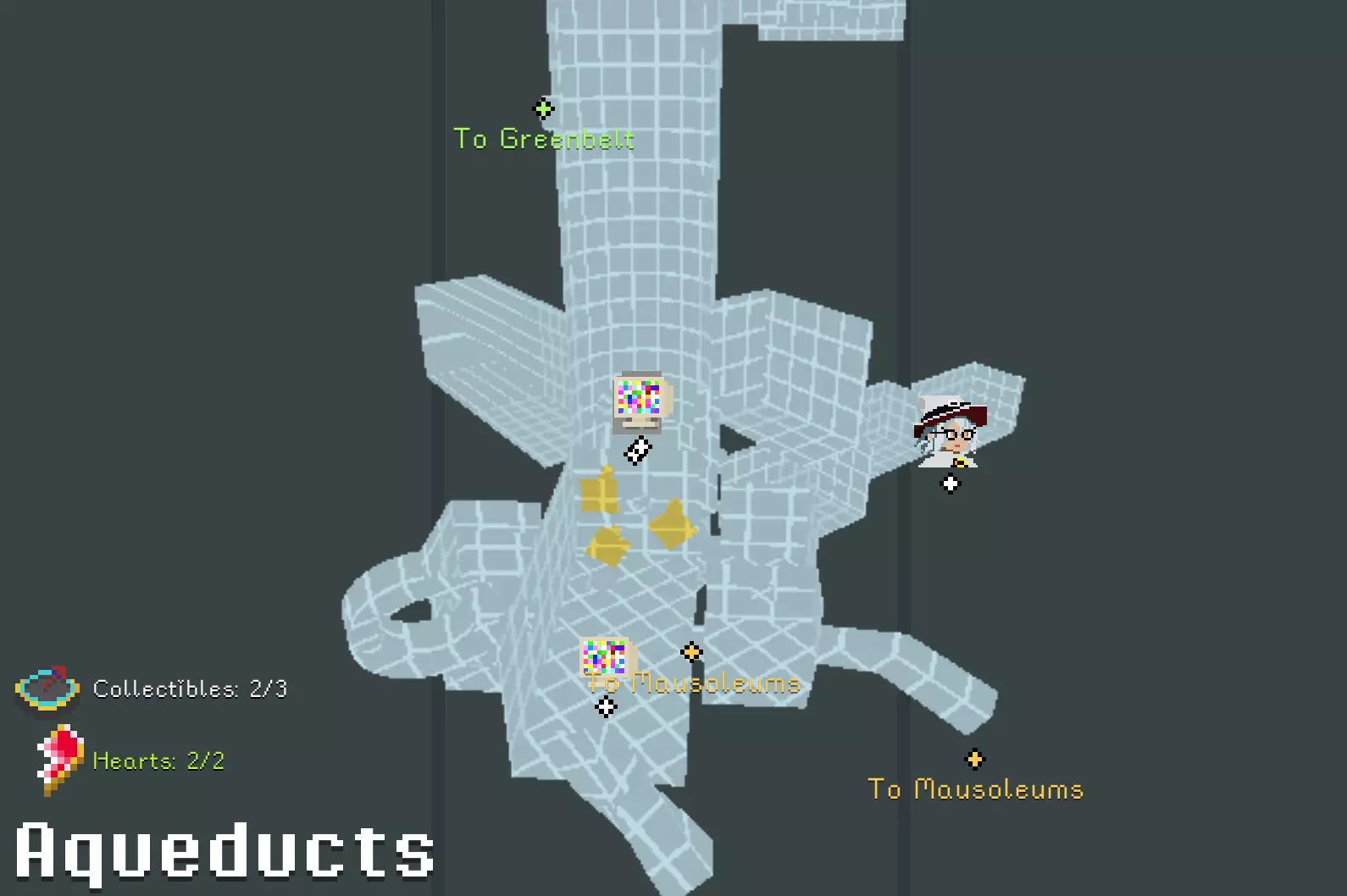 锤子和凿子 需要从红色沙漠一侧进入。 在谜题房间中,解开后在棕色栅栏内获得。 谜题提示:不摔落拉动三个拉杆。1.白色塔底;2.远处绿格子背后;3.蹦床起跳,切换方块时进入中央空心格子内