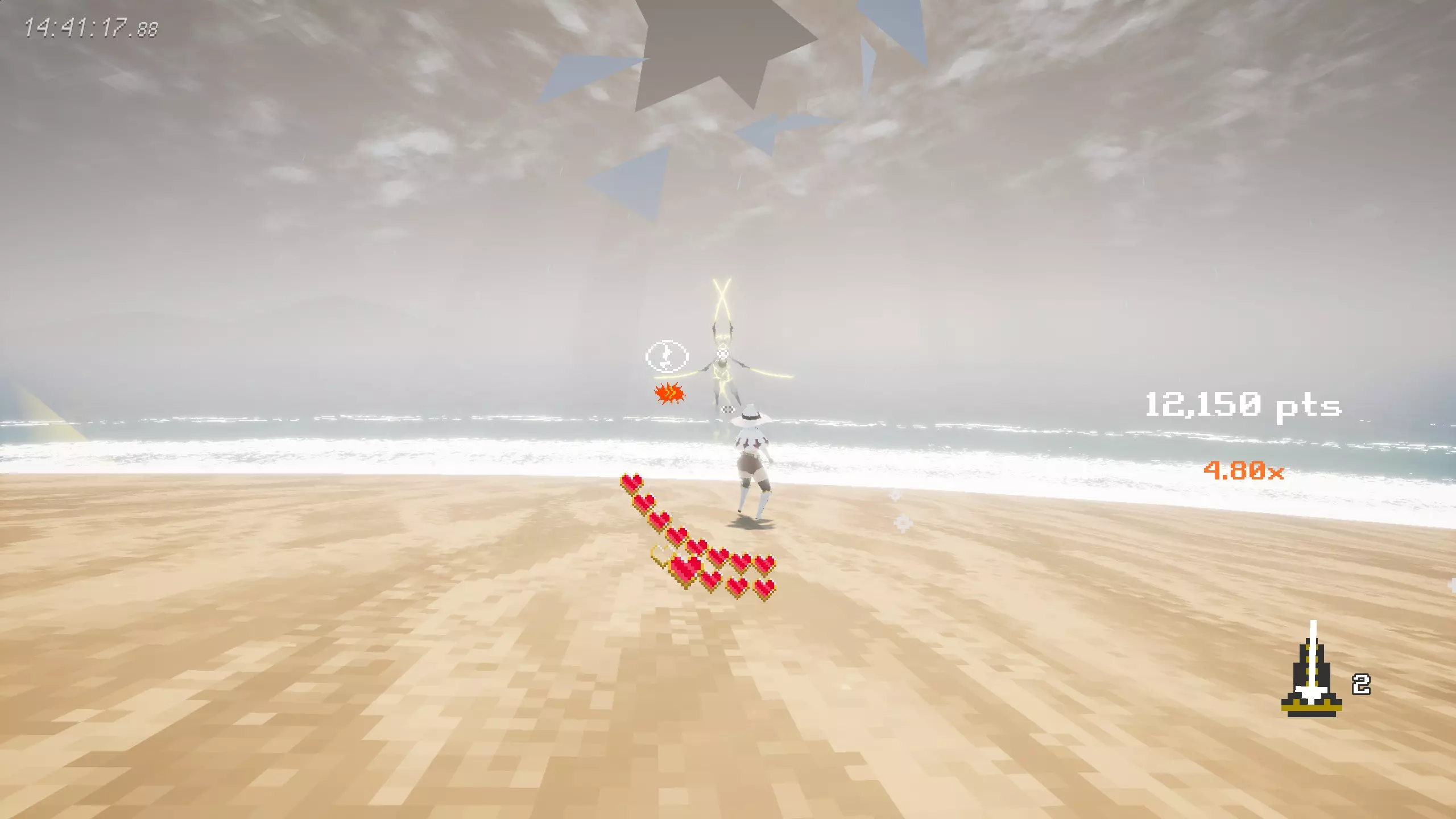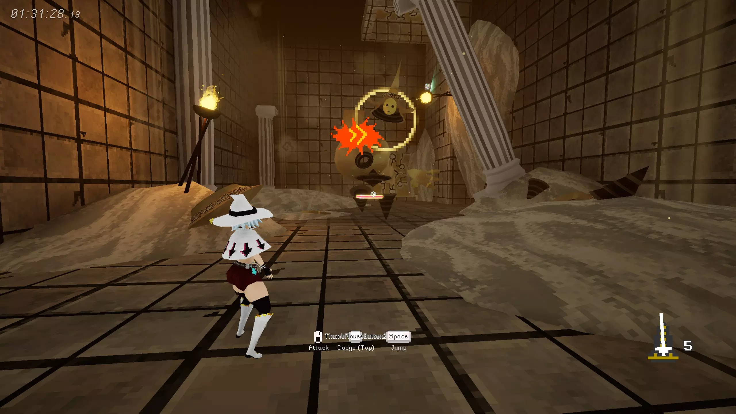 第二阶段: 开局Boss拉远距离单独释放一次落雷(注意落雷造成4心伤害),此时冲刺靠近并尽可能多进行攻击【圆圈键】 之后,-【圆圈键】--【圆圈键】-【圆圈键】 循环6次后进行连段,-【圆圈键】--【圆圈键】-(可加入攻击【圆圈键】) 之后,-【圆圈键】-- 循环3次后进行连段,-【圆圈键】--【圆圈键】- 之后,-【圆圈键】-- 循环3次后进行连段,-【圆圈键】--【圆圈键】- 转场